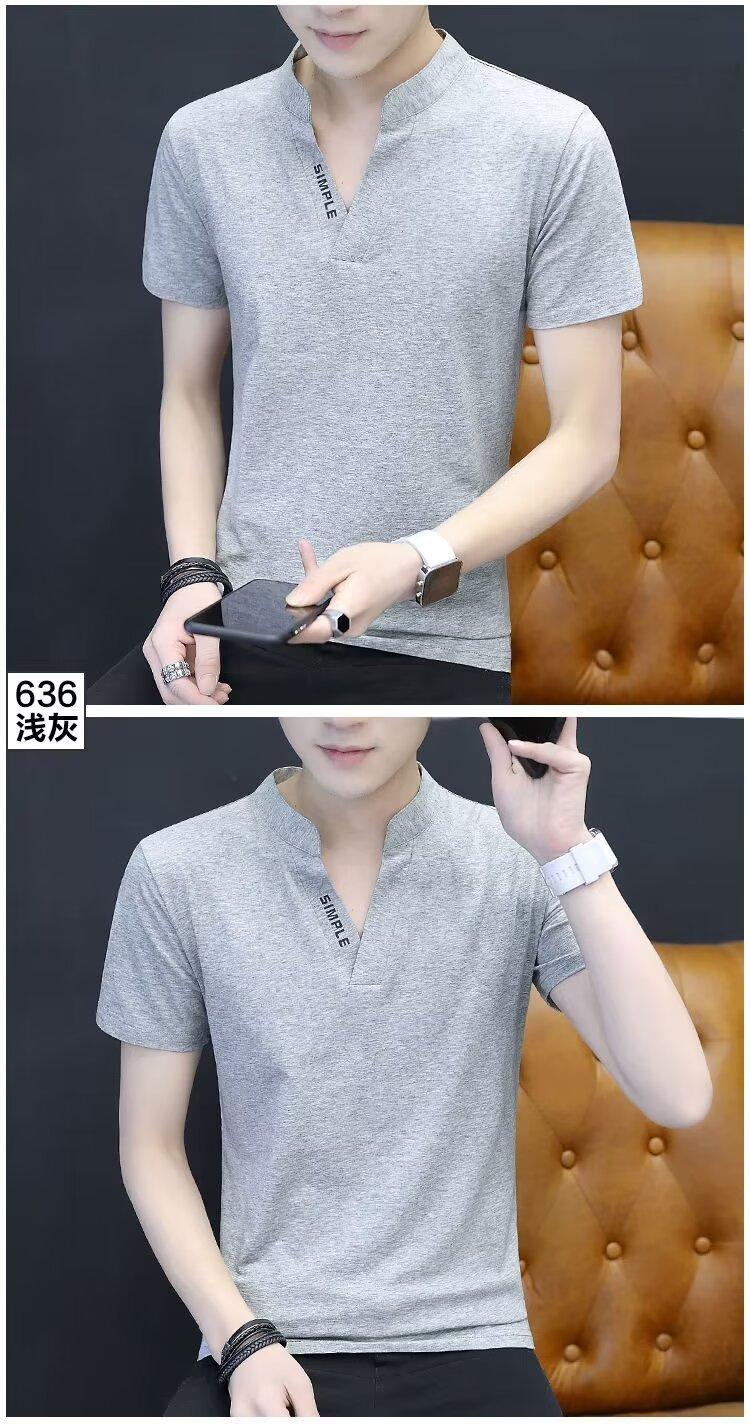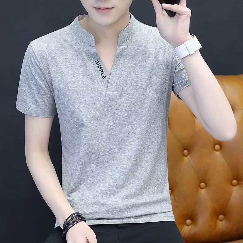 Camiseta de manga corta de verano para hombre, con cuello levantado, a la moda, nueva, elegante, estilo coreano, con cuello en V, media manga, polo fino de talla grande