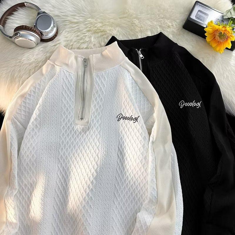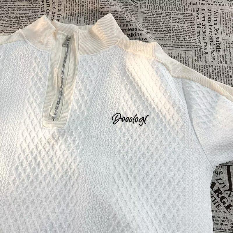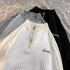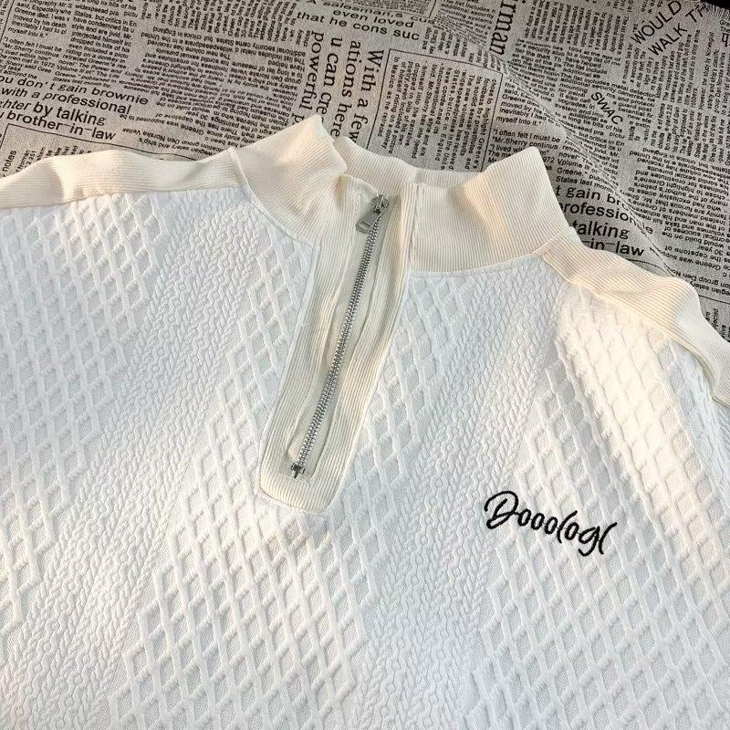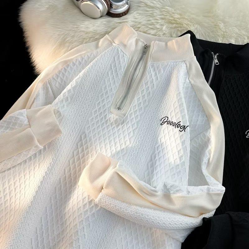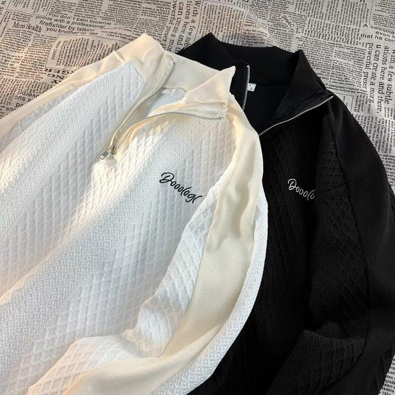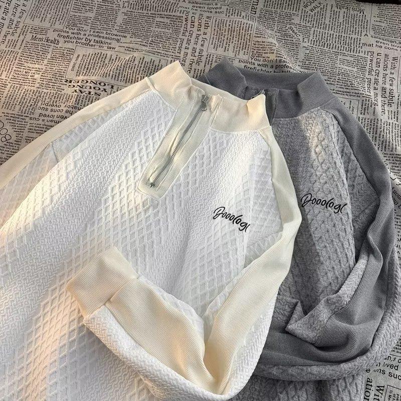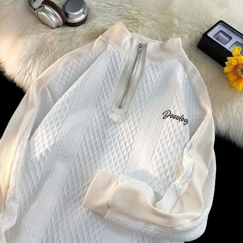 Suéter de cuello alto con media cremallera para hombre, blanco, holgado, estilo americano, con capucha, de calle alta, con cuello alto, abrigo deportivo de marca de moda