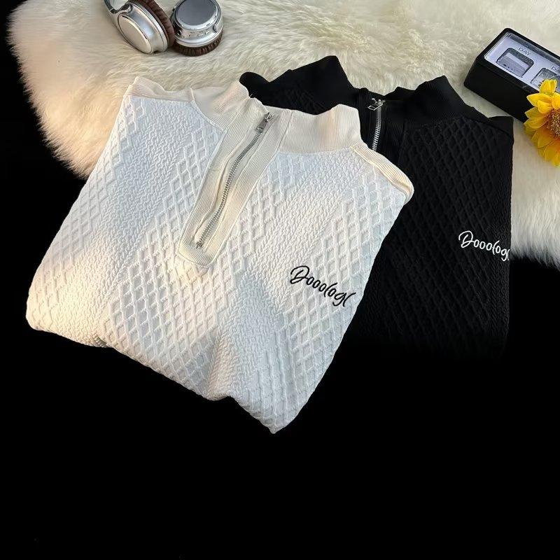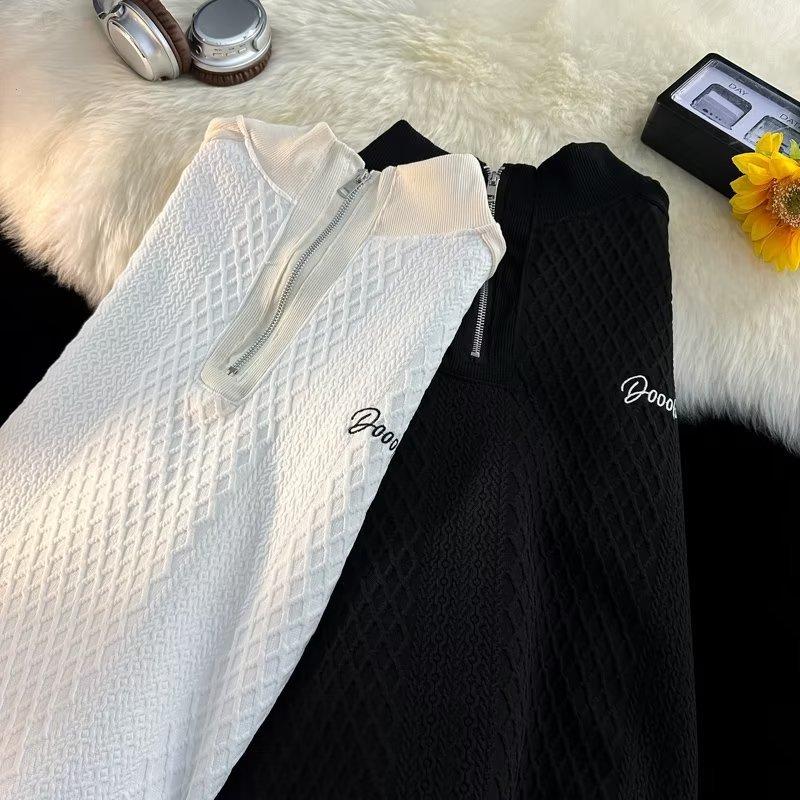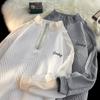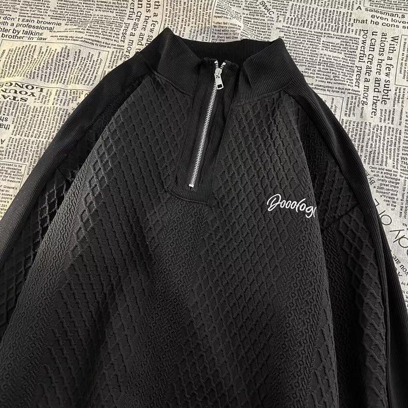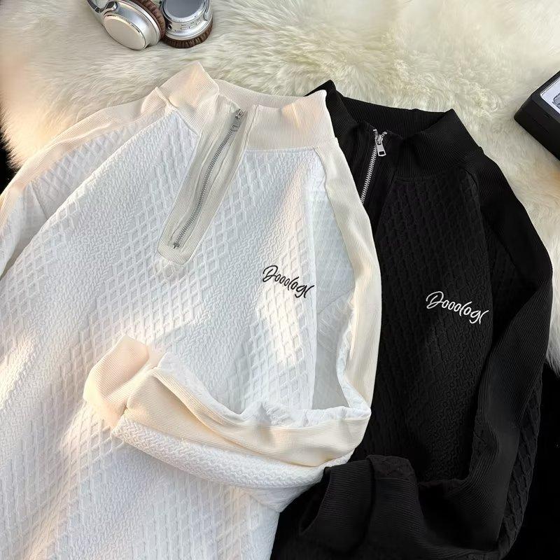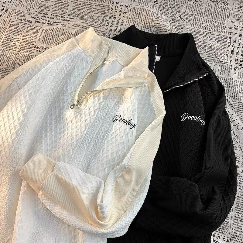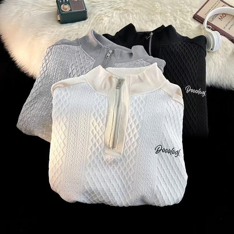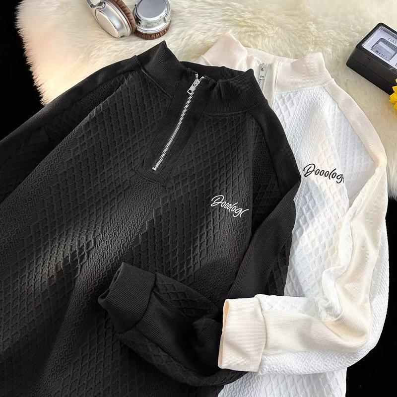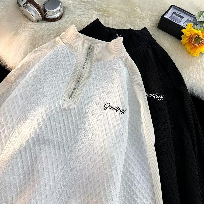 Suéter de cuello alto con media cremallera para hombre, blanco, holgado, estilo americano, con capucha, de calle alta, con cuello alto, abrigo deportivo de marca de moda