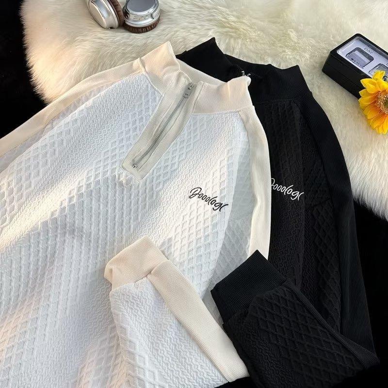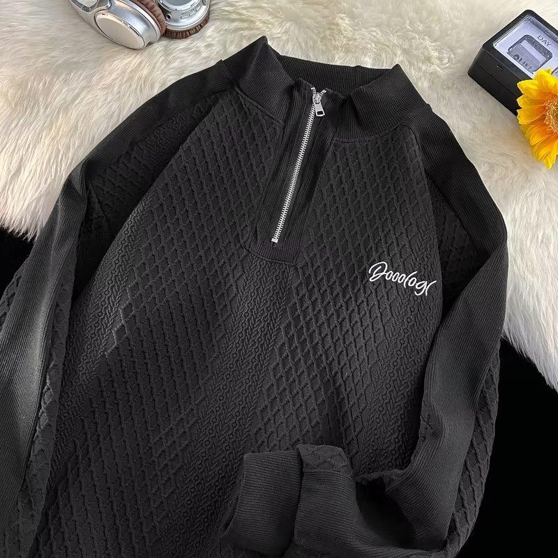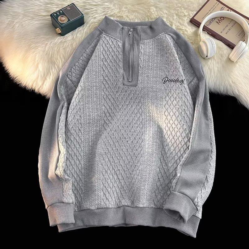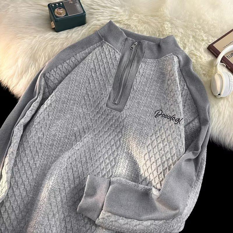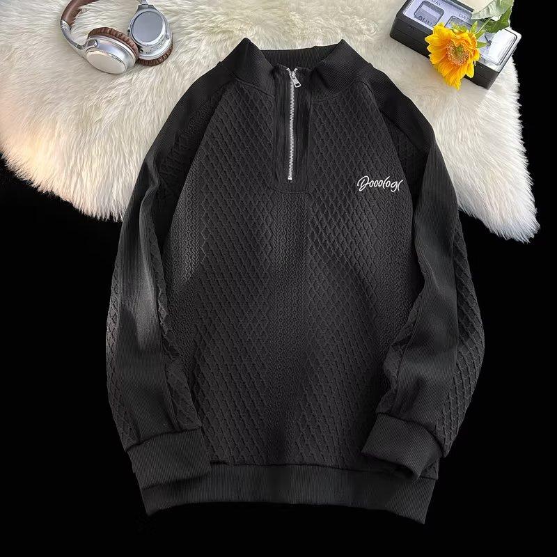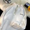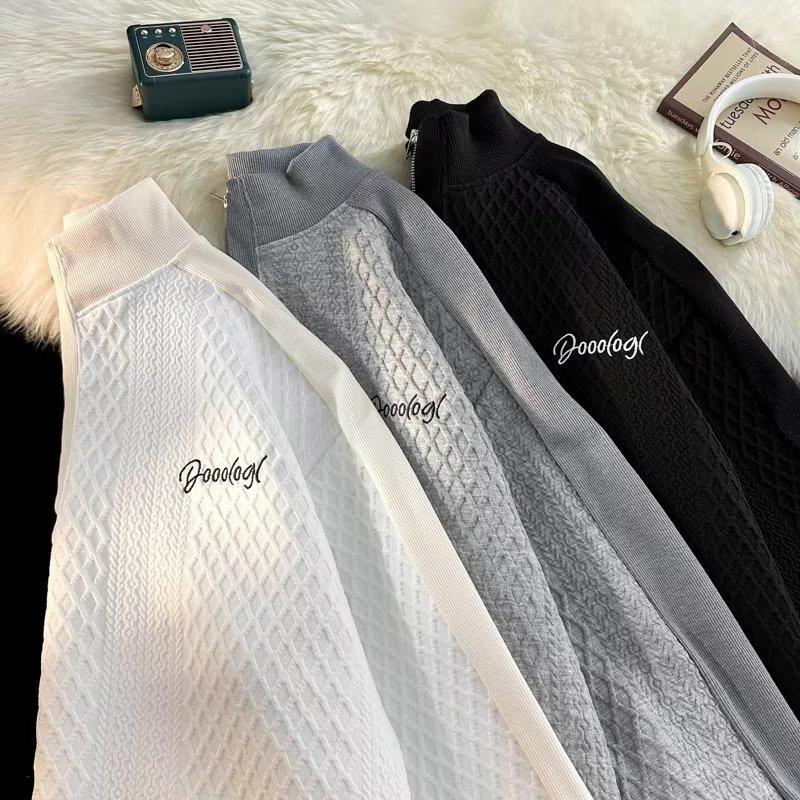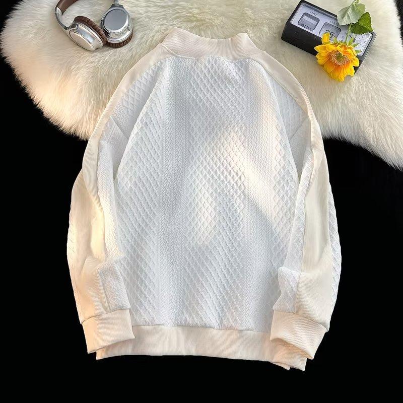 Suéter de cuello alto con media cremallera para hombre, blanco, holgado, estilo americano, con capucha, de calle alta, con cuello alto, abrigo deportivo de marca de moda