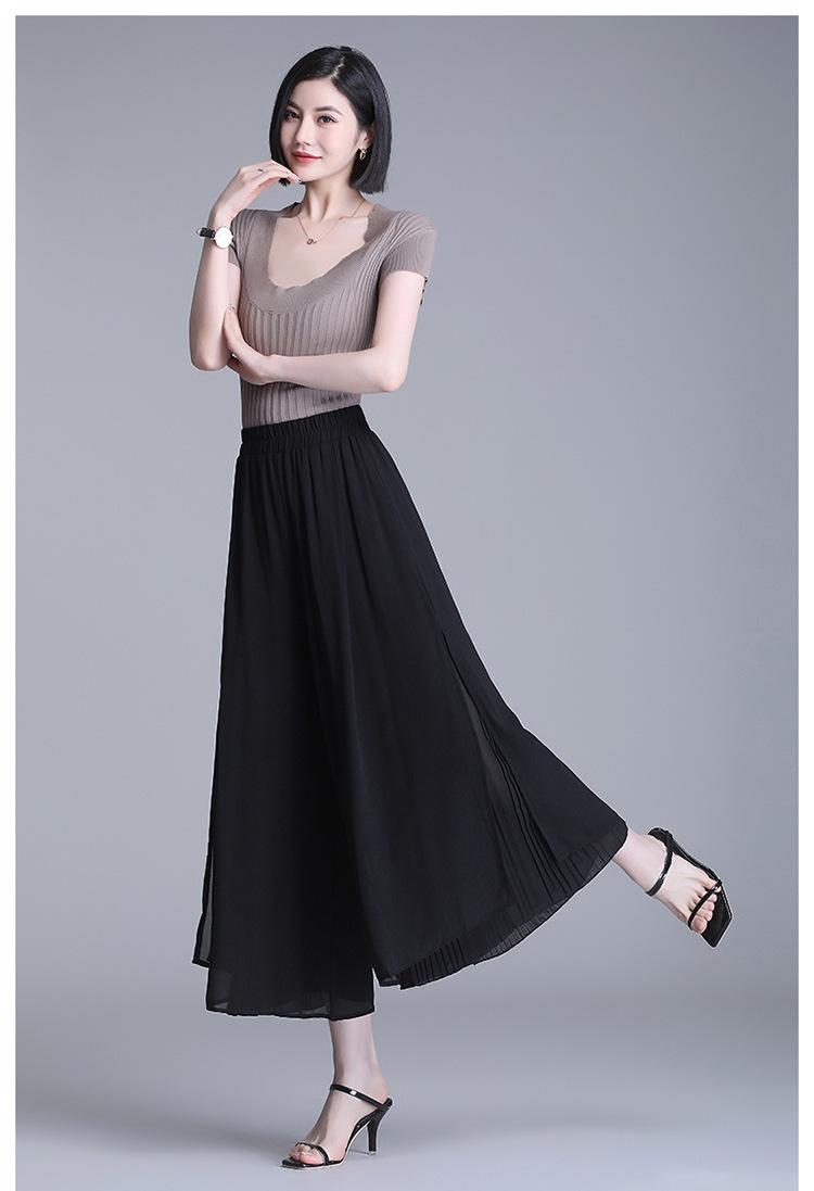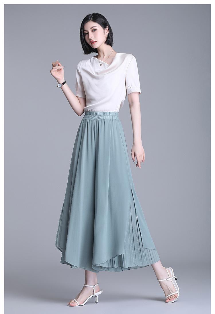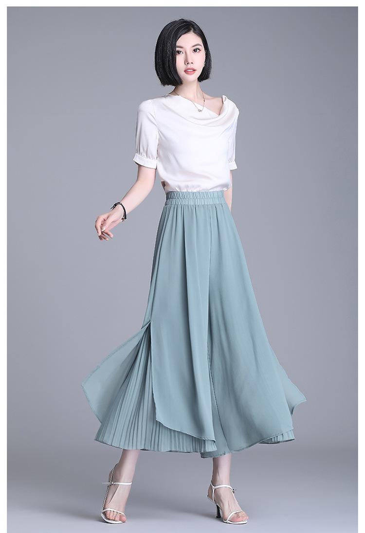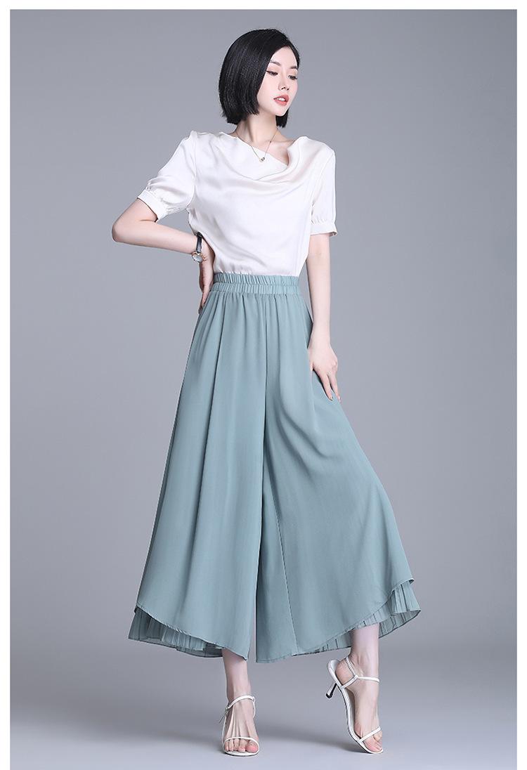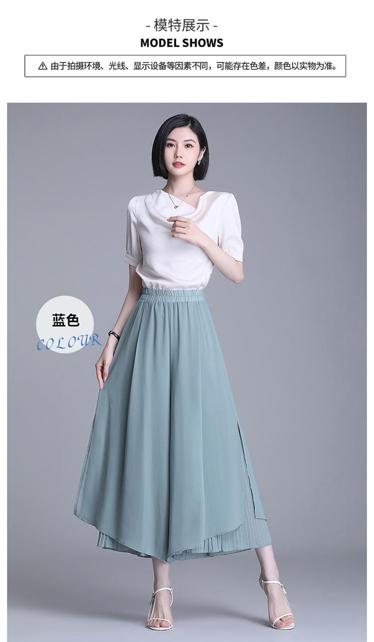 Pantalones de Falda de Chifón de Cintura Elástica y Pierna Ancha para Mujer 2025 Verano Nuevo Pantalones Cortos Casuales con Caída