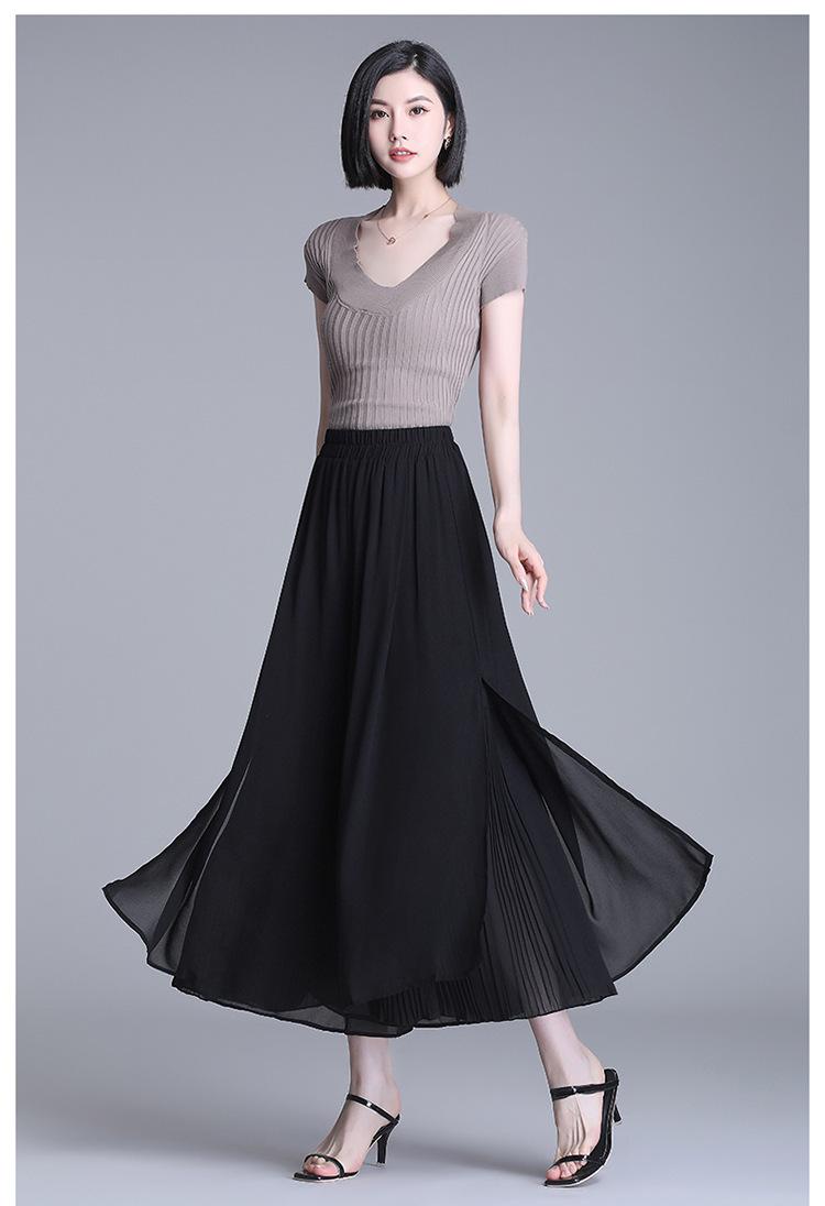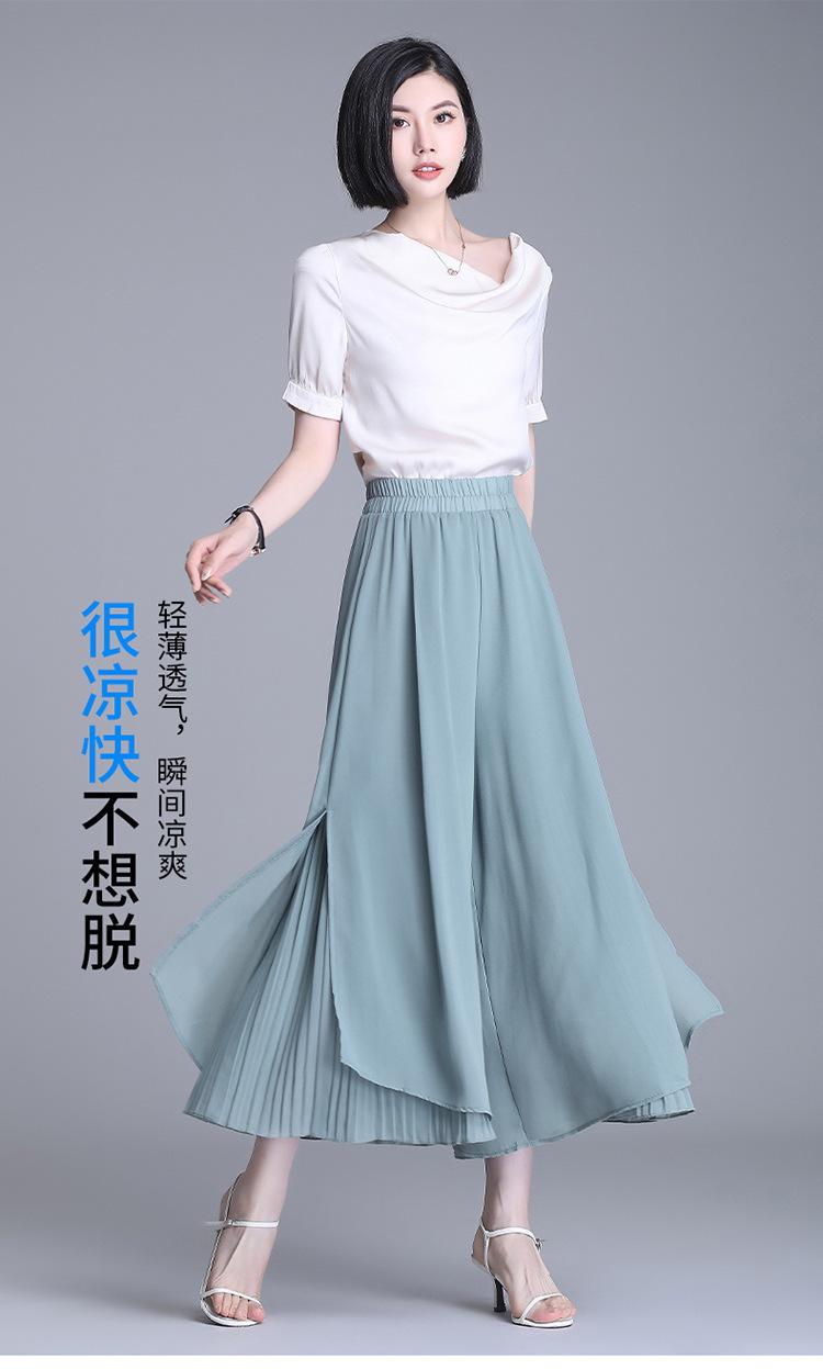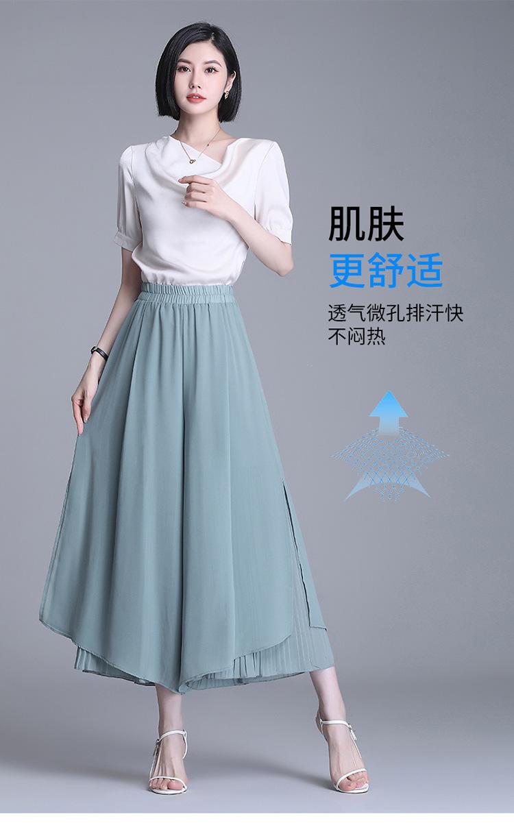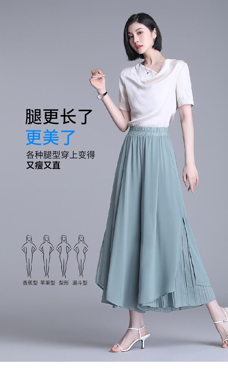 Pantalones de Falda de Chifón de Cintura Elástica y Pierna Ancha para Mujer 2025 Verano Nuevo Pantalones Cortos Casuales con Caída