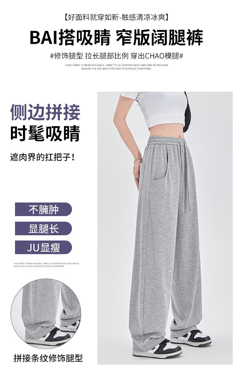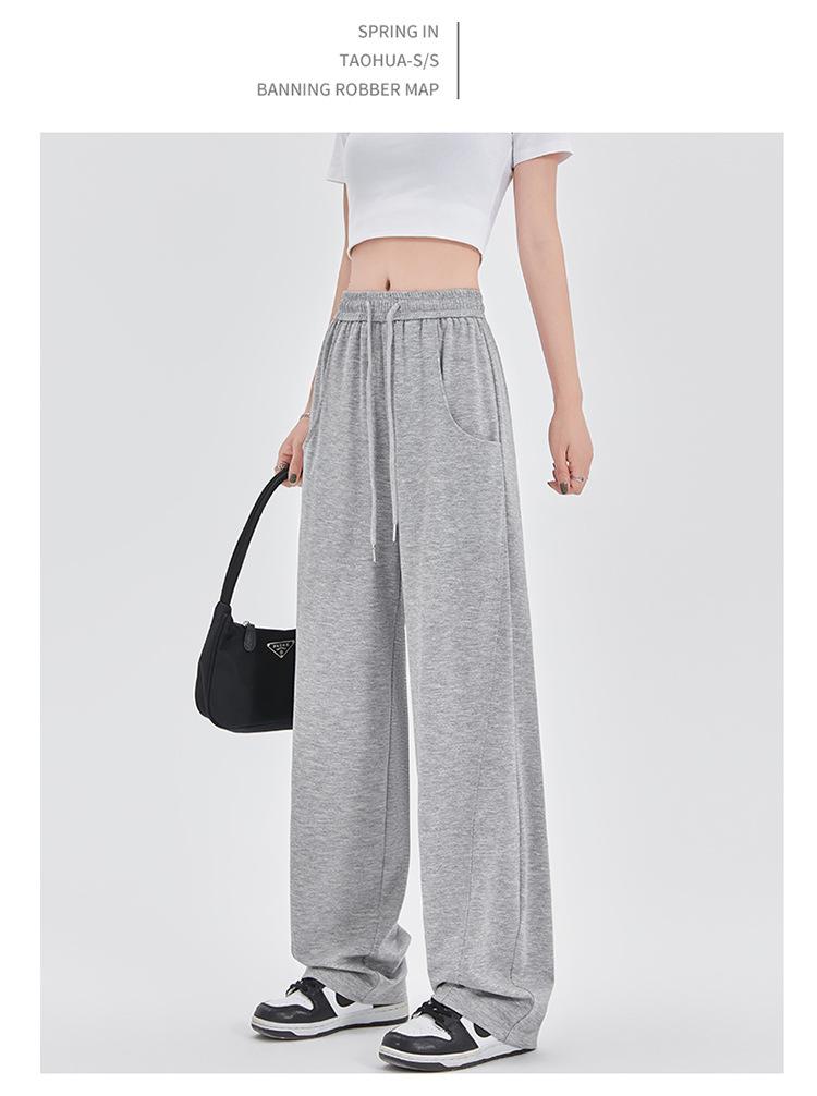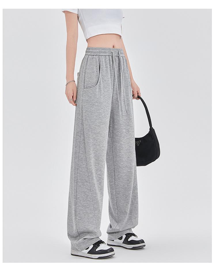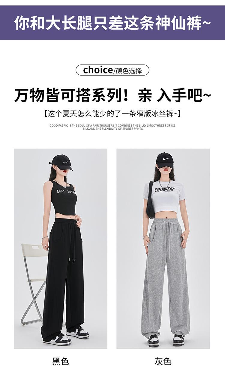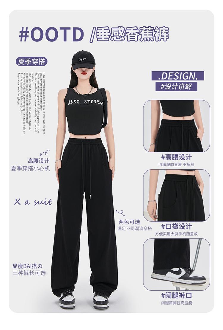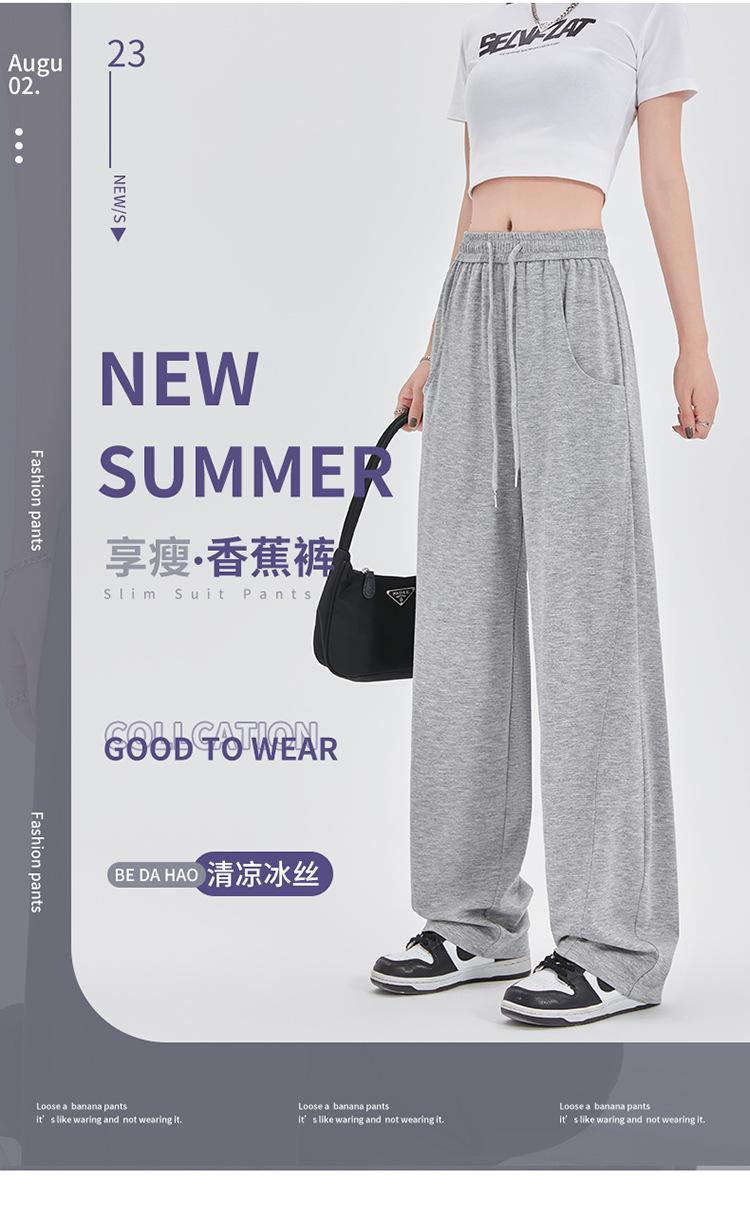 Pantalones Banana de Seda de Hielo para Mujer 2025 Verano Delgados Elásticos Cintura Alta Drapeados Grises Populares Versión Estrecha Pantalones Deportivos Banana de Pierna Ancha
