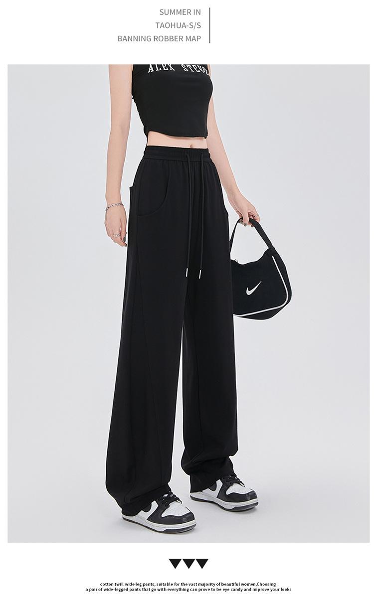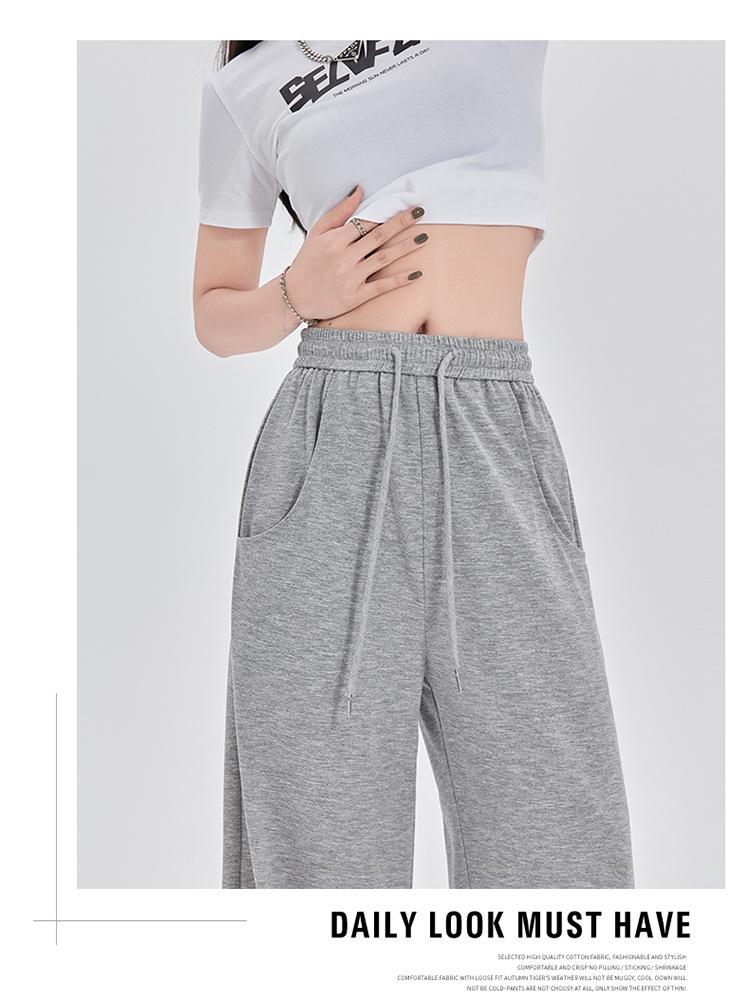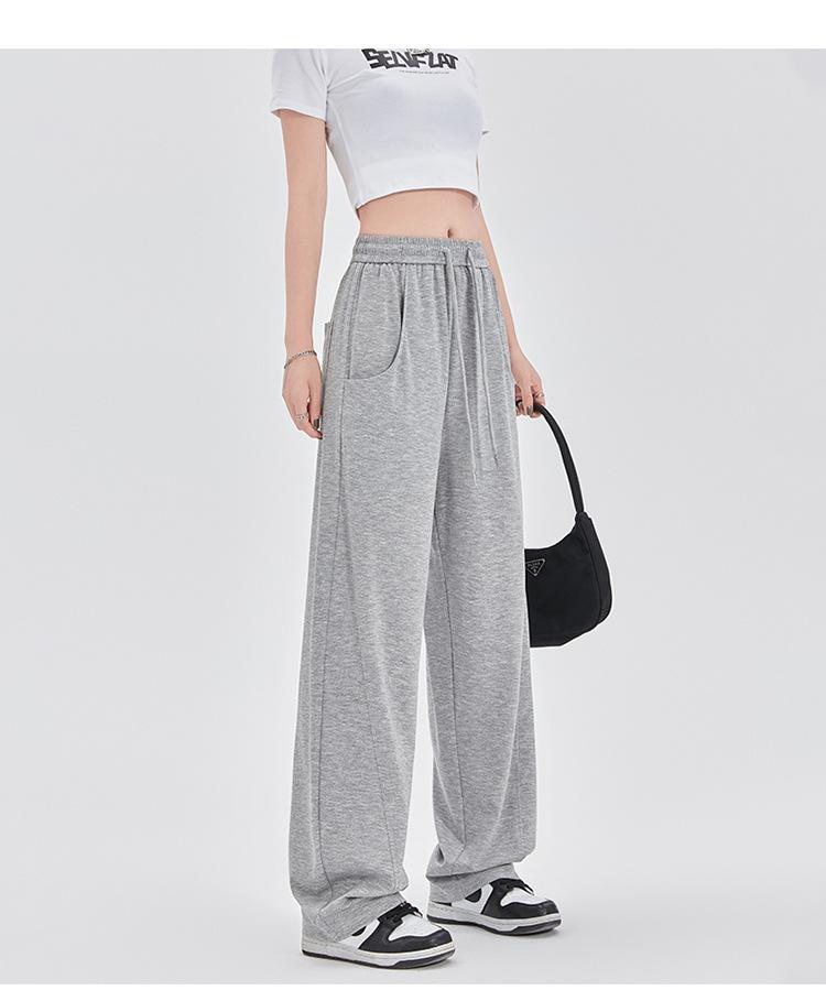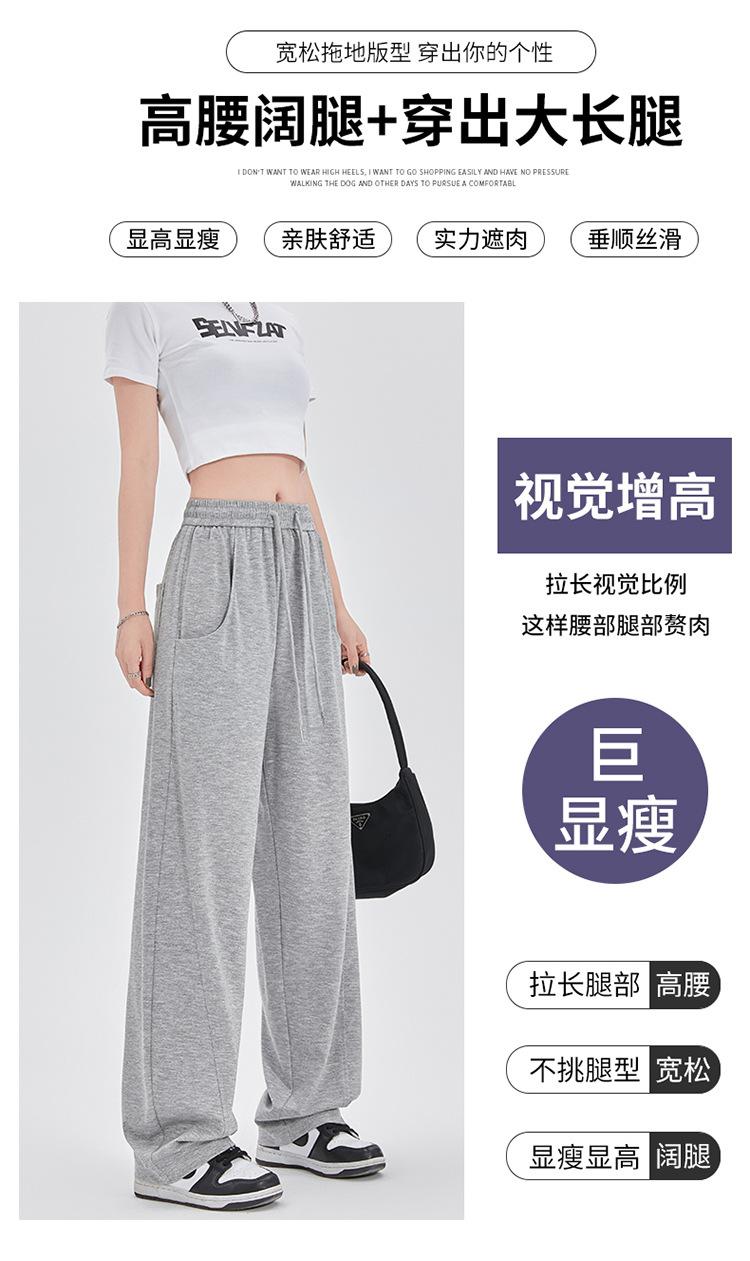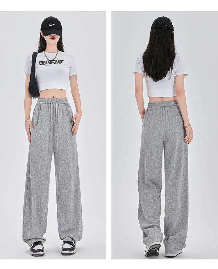 Pantalones Banana de Seda de Hielo para Mujer 2025 Verano Delgados Elásticos Cintura Alta Drapeados Grises Populares Versión Estrecha Pantalones Deportivos Banana de Pierna Ancha