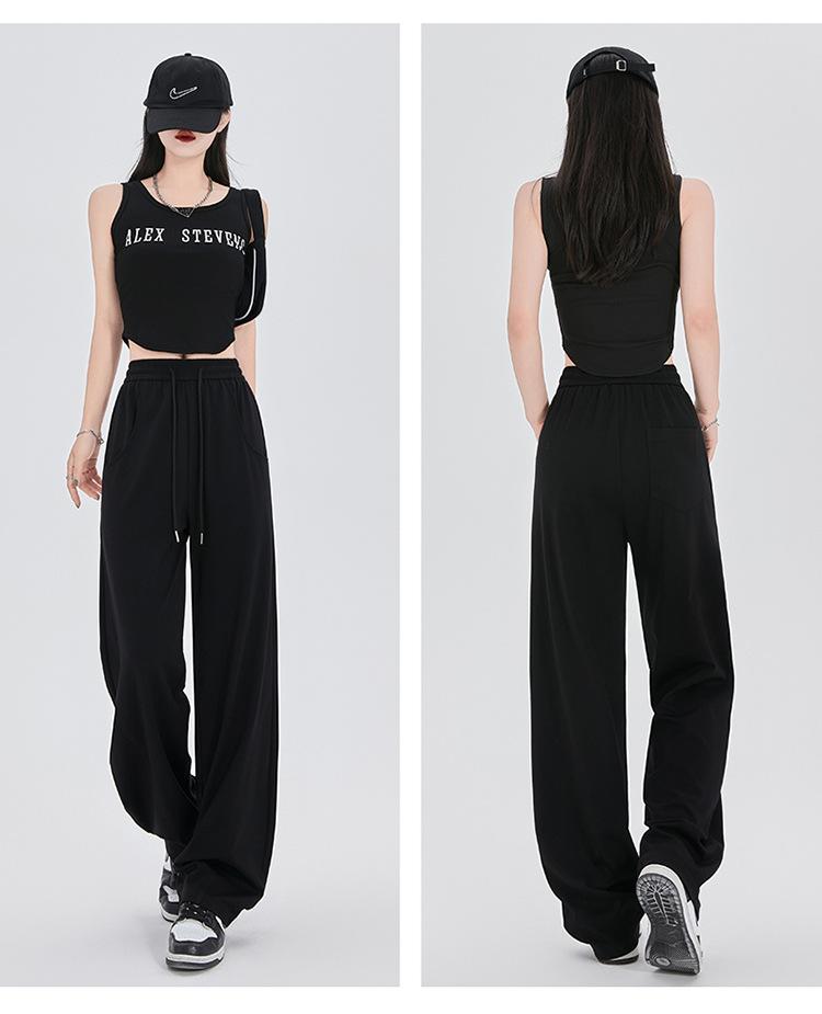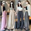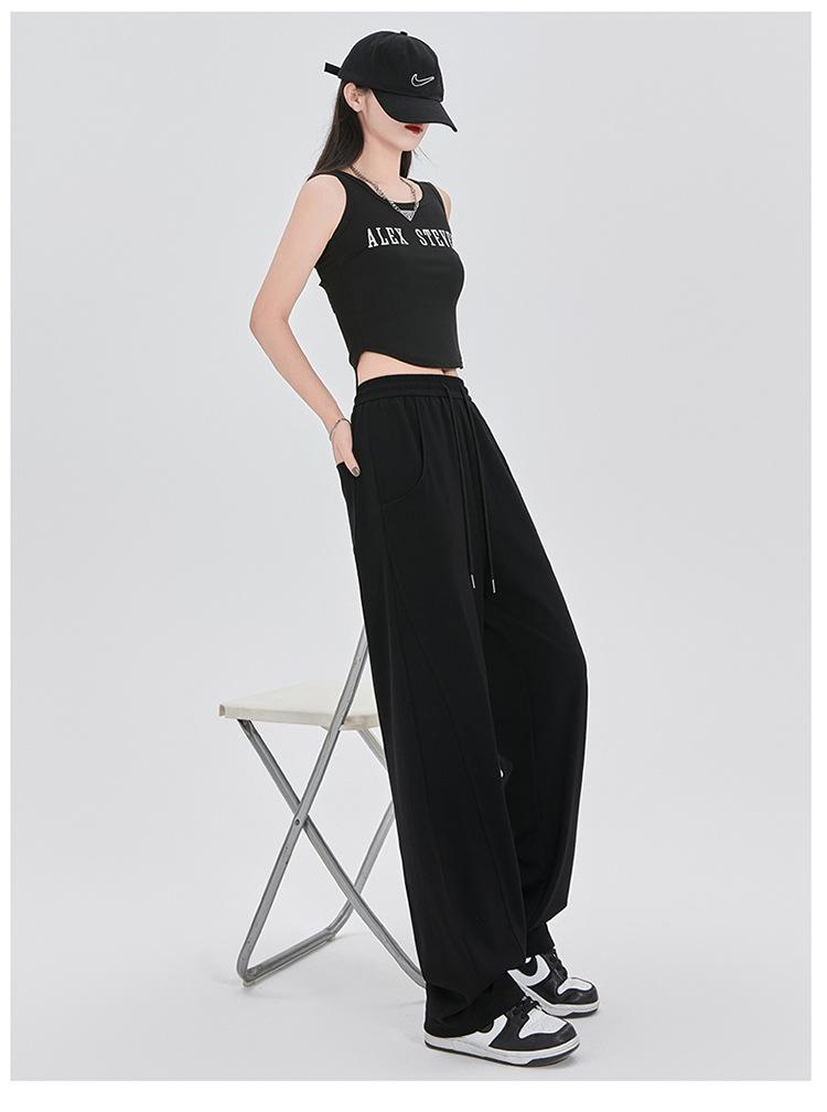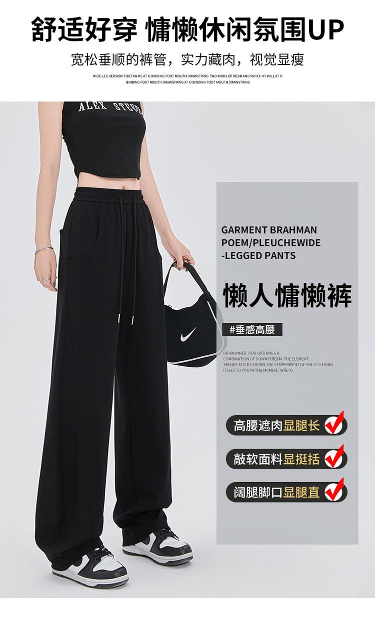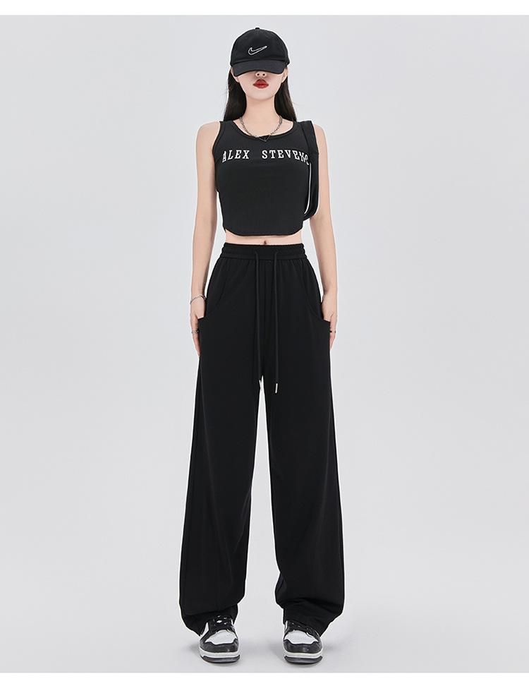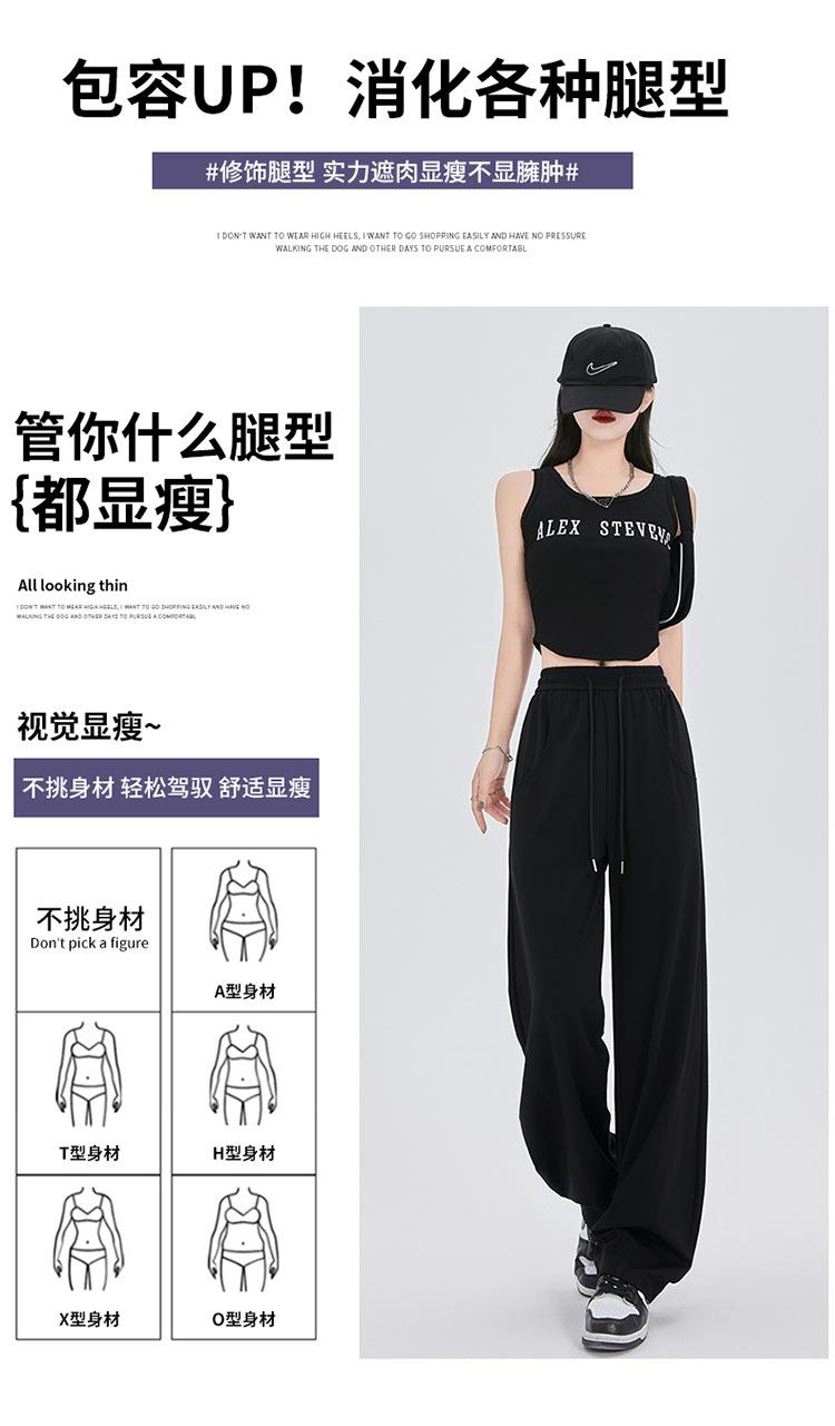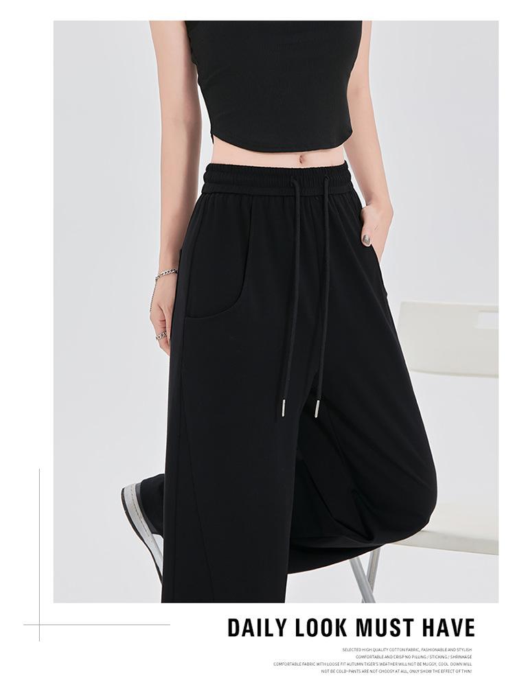 Pantalones Banana de Seda de Hielo para Mujer 2025 Verano Delgados Elásticos Cintura Alta Drapeados Grises Populares Versión Estrecha Pantalones Deportivos Banana de Pierna Ancha