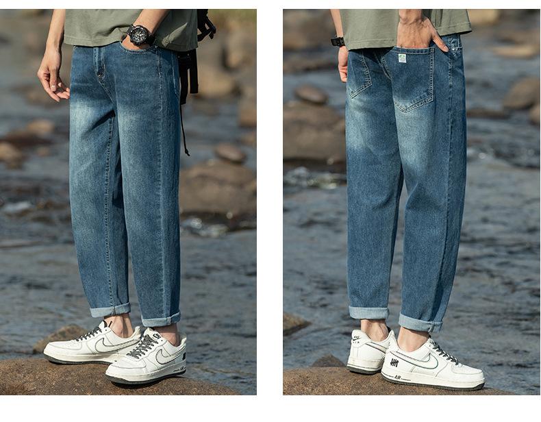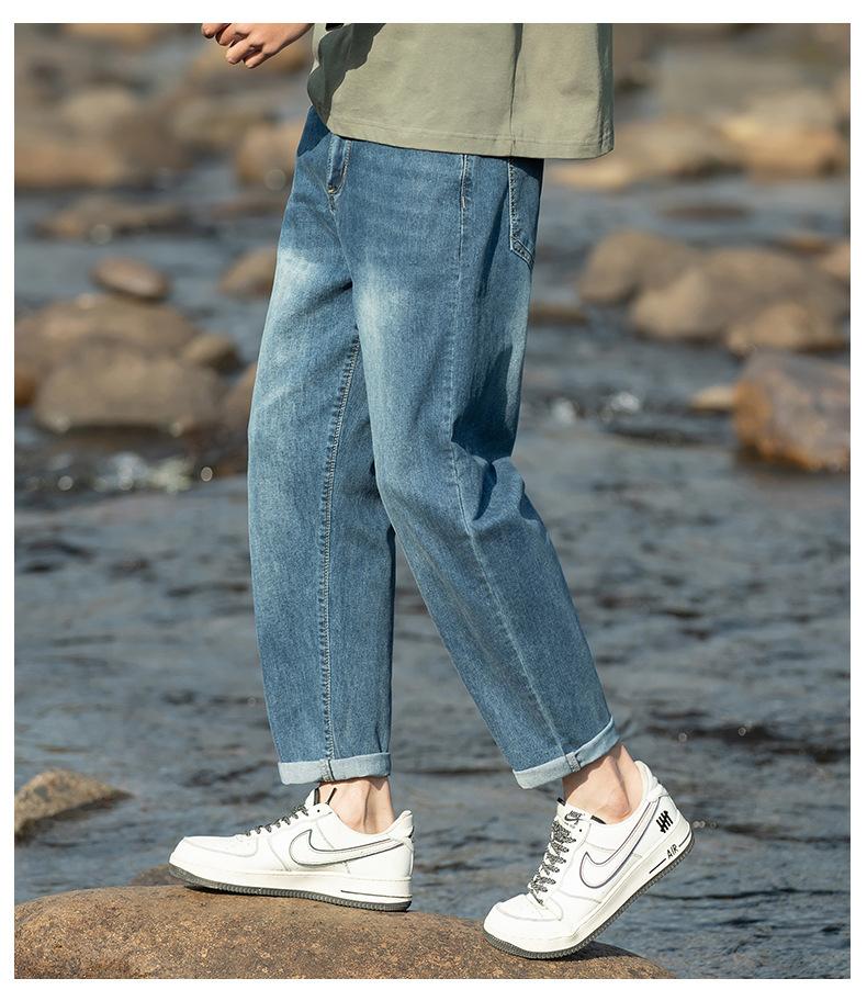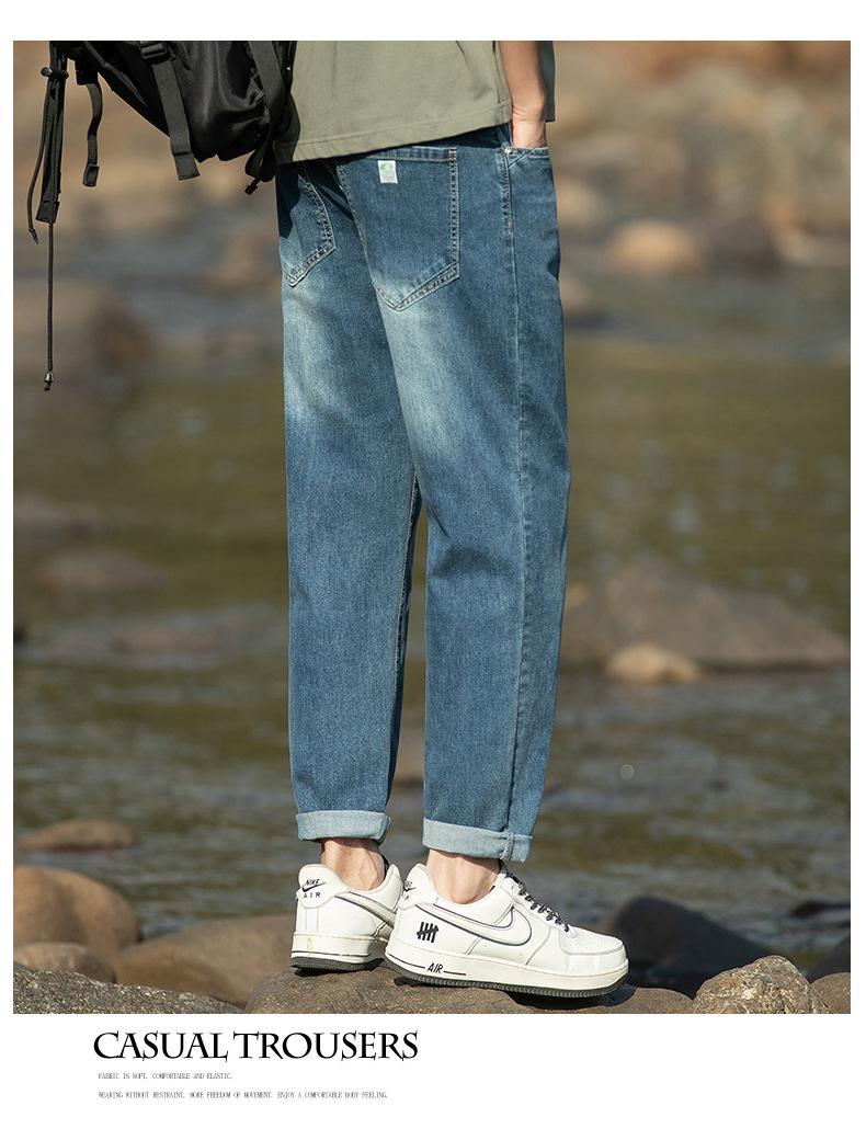Pantalones vaqueros cónicos recortados para hombre, de primavera y verano, con personalidad, elegantes, a la moda, combinables, holgados y de moda, para hombre.