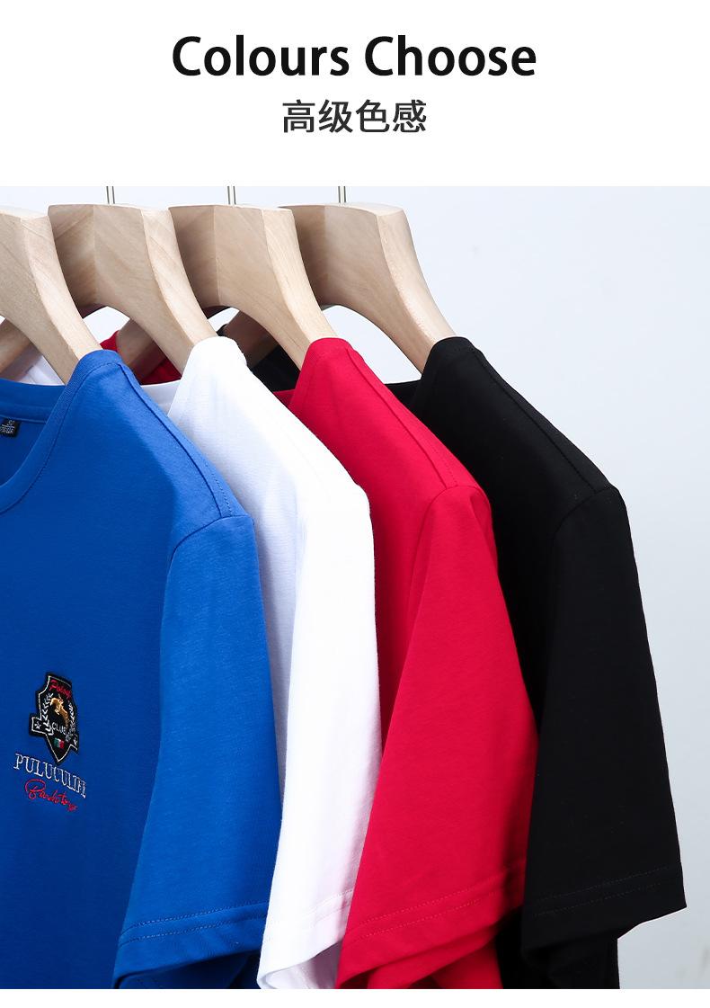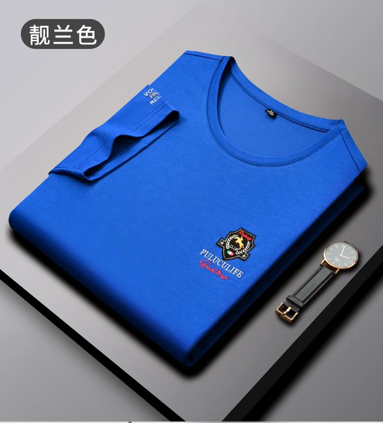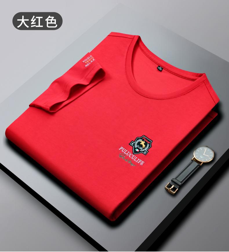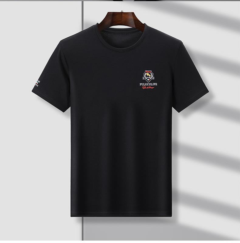 Camiseta de Hombre Manga Corta Color Puro Talla Grande Top Cuello Redondo Camiseta de Manga Corta Camiseta Bordada Verano Nuevo Camiseta al por Mayor