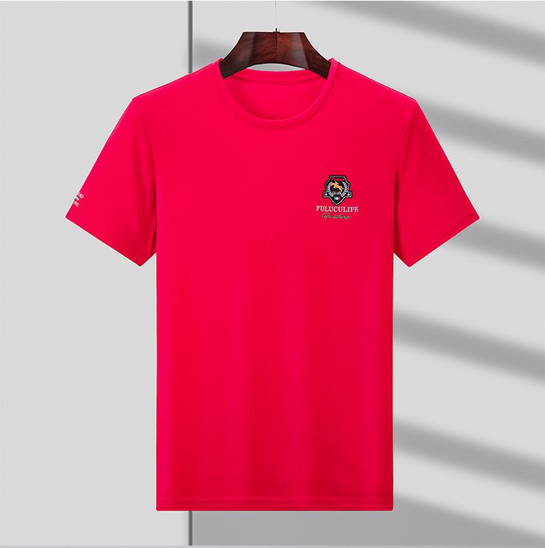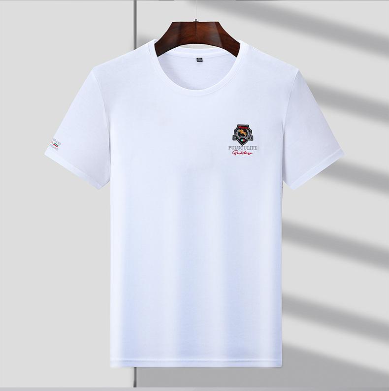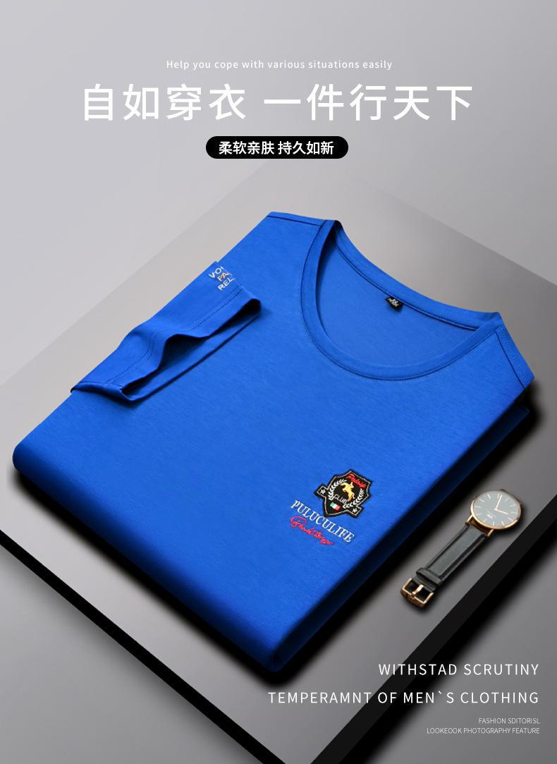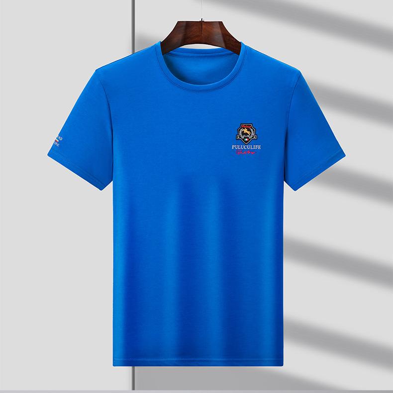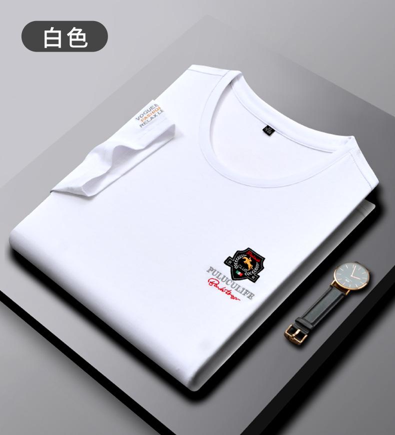 Camiseta de Hombre Manga Corta Color Puro Talla Grande Top Cuello Redondo Camiseta de Manga Corta Camiseta Bordada Verano Nuevo Camiseta al por Mayor