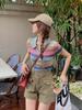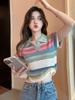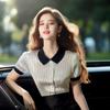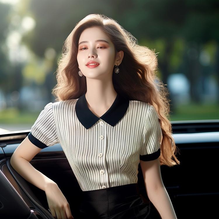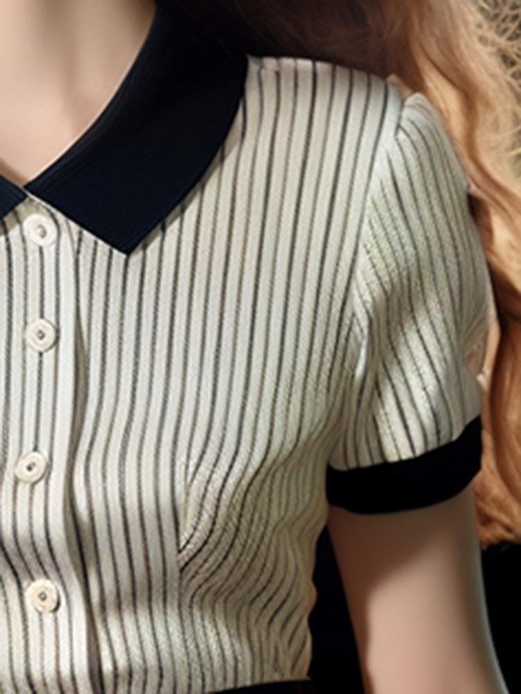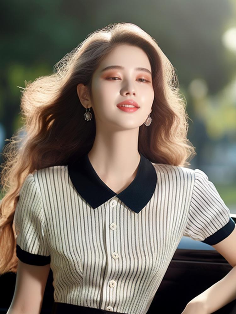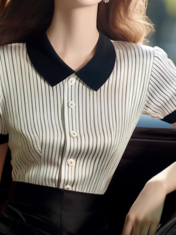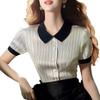 Nuevo Estilo de Verano 2024, Tops Contrastantes con Cuello Polo que Reducen la Edad y Lucen Bien para Mujer, Tops Delgados a Rayas