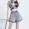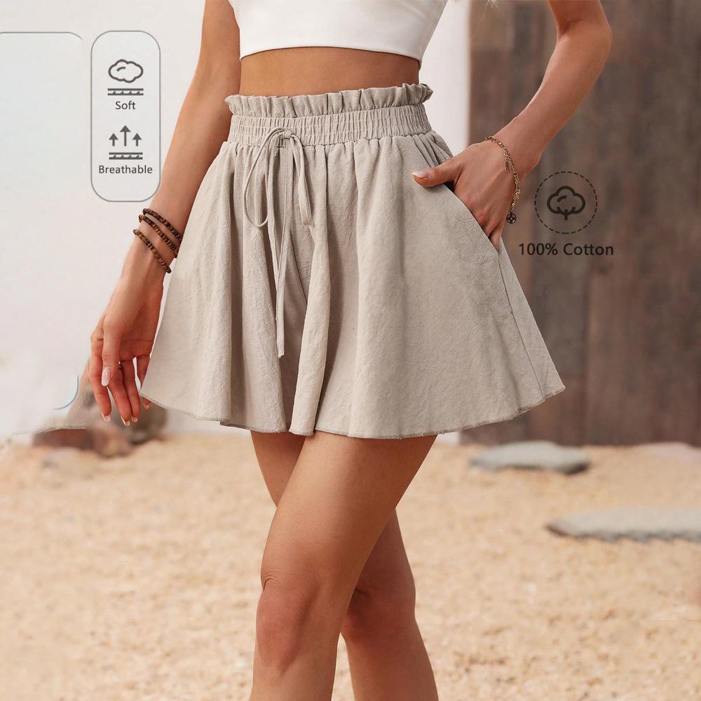 Pantalones cortos de algodón lavado para mujer, estilo europeo y americano, cómodos, informales, con cintura elástica y pierna ancha, 2024