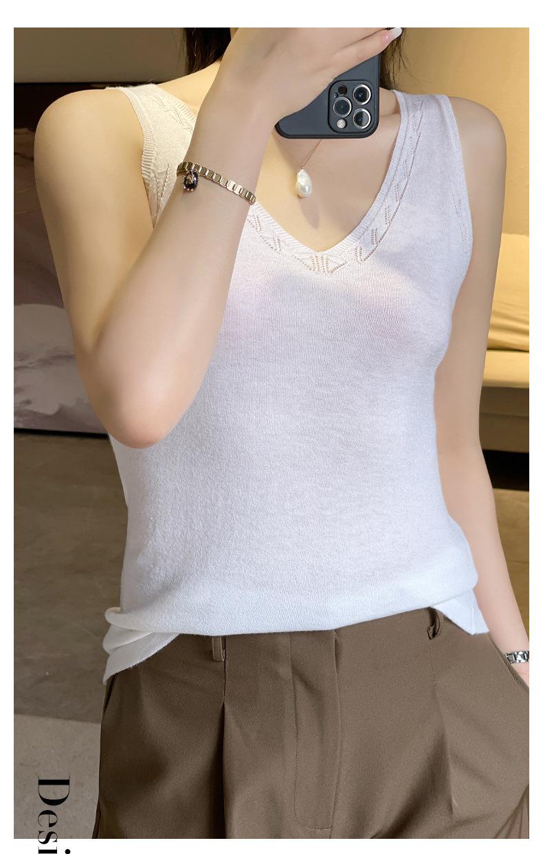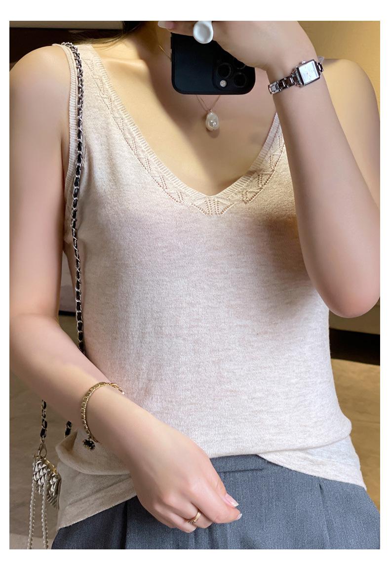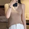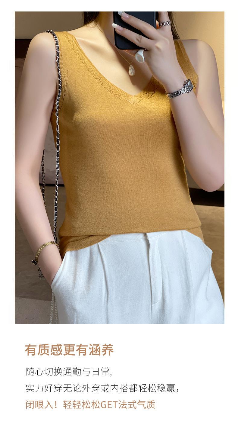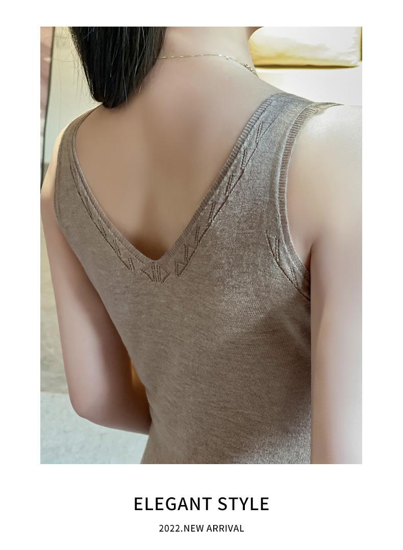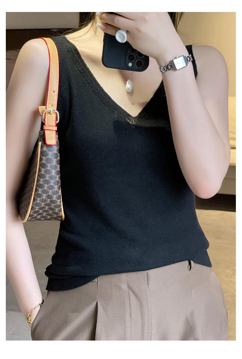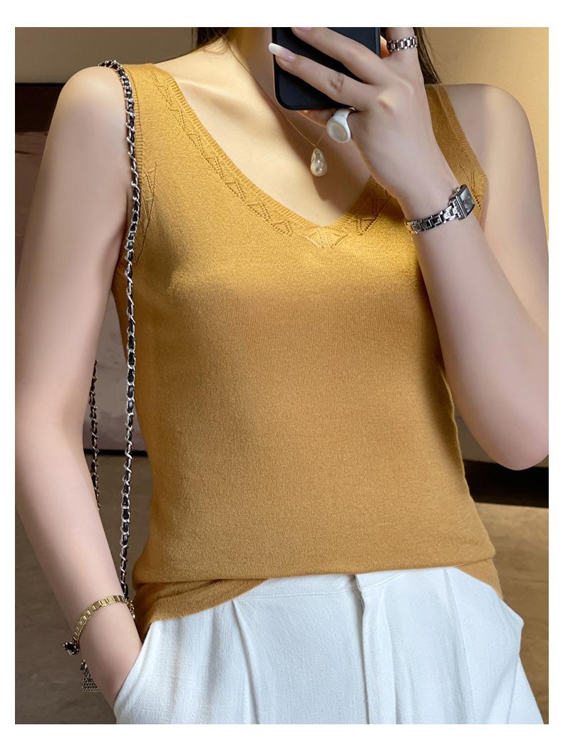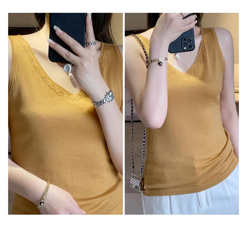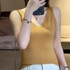 Camisola de punto con cuello en V de color liso para mujer, suéter básico corto ajustado sin mangas y fino