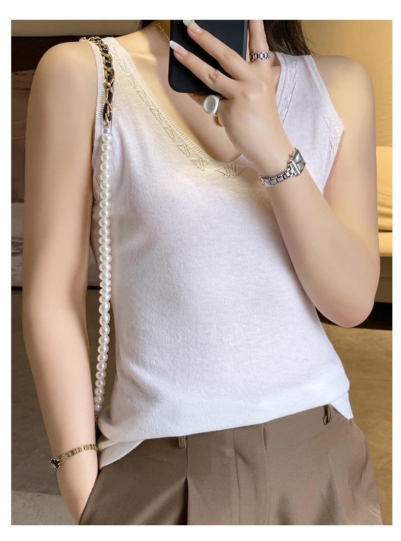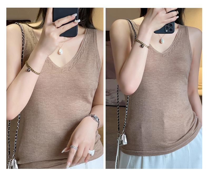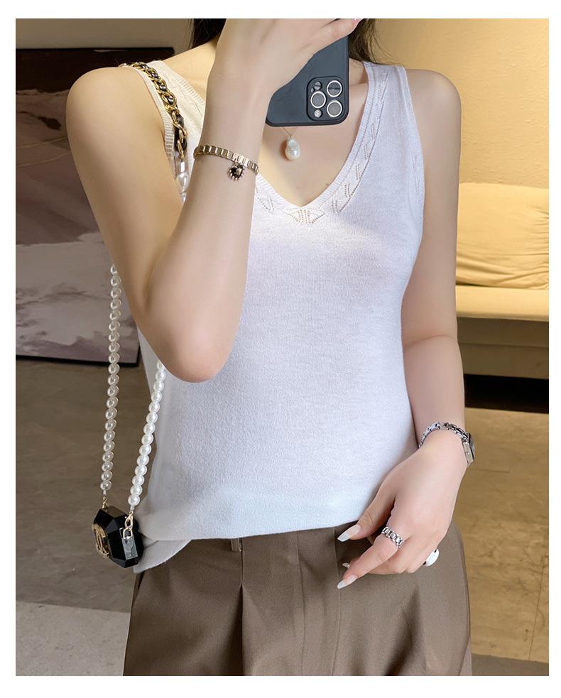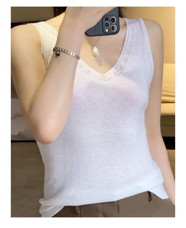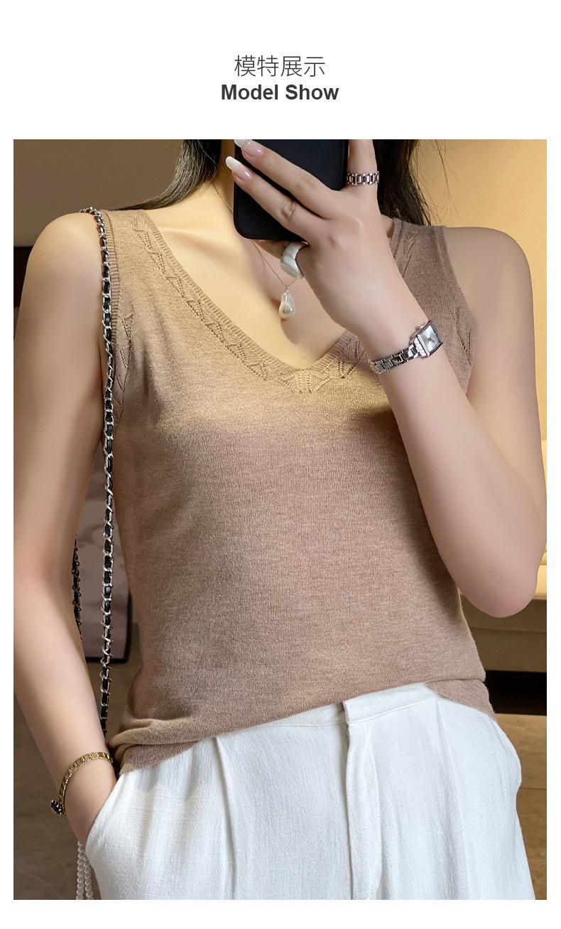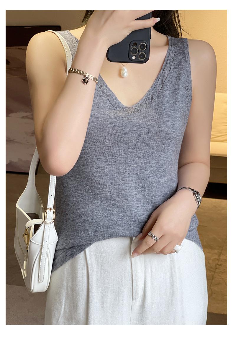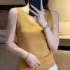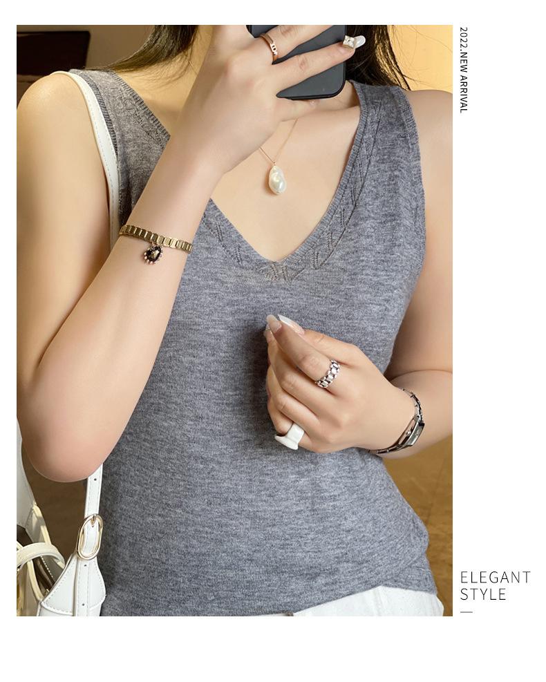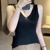 Camisola de punto con cuello en V de color liso para mujer, suéter básico corto ajustado sin mangas y fino