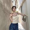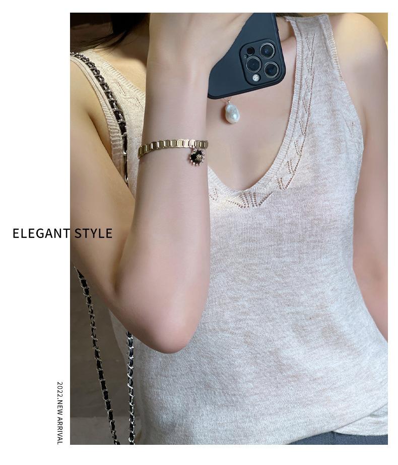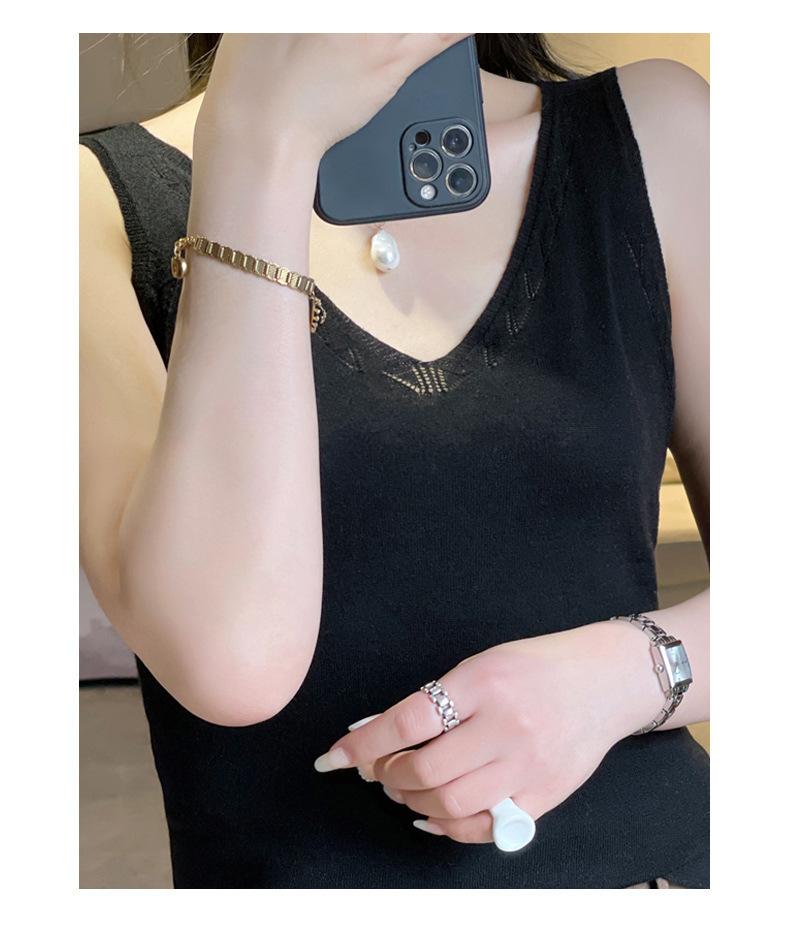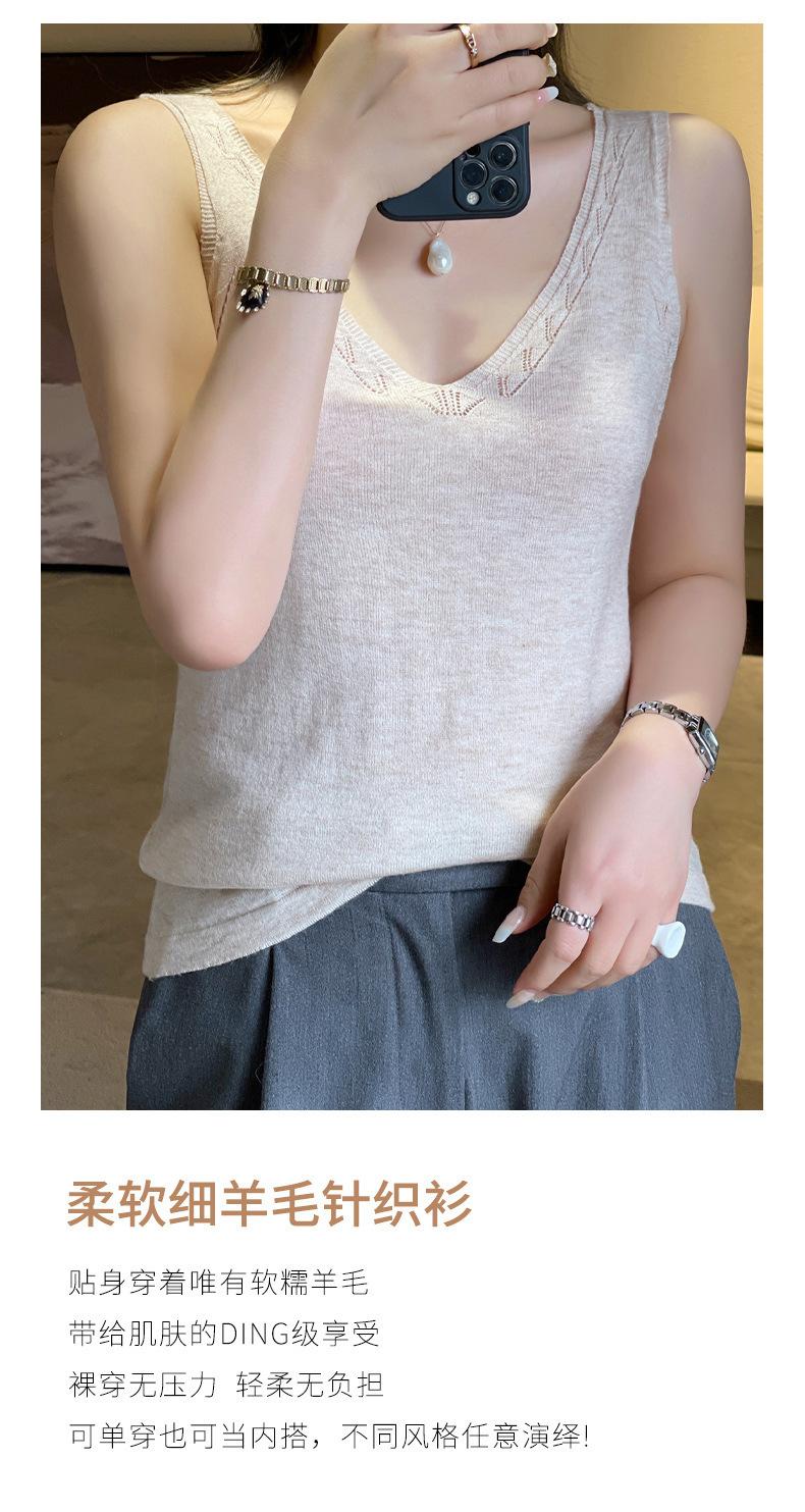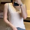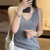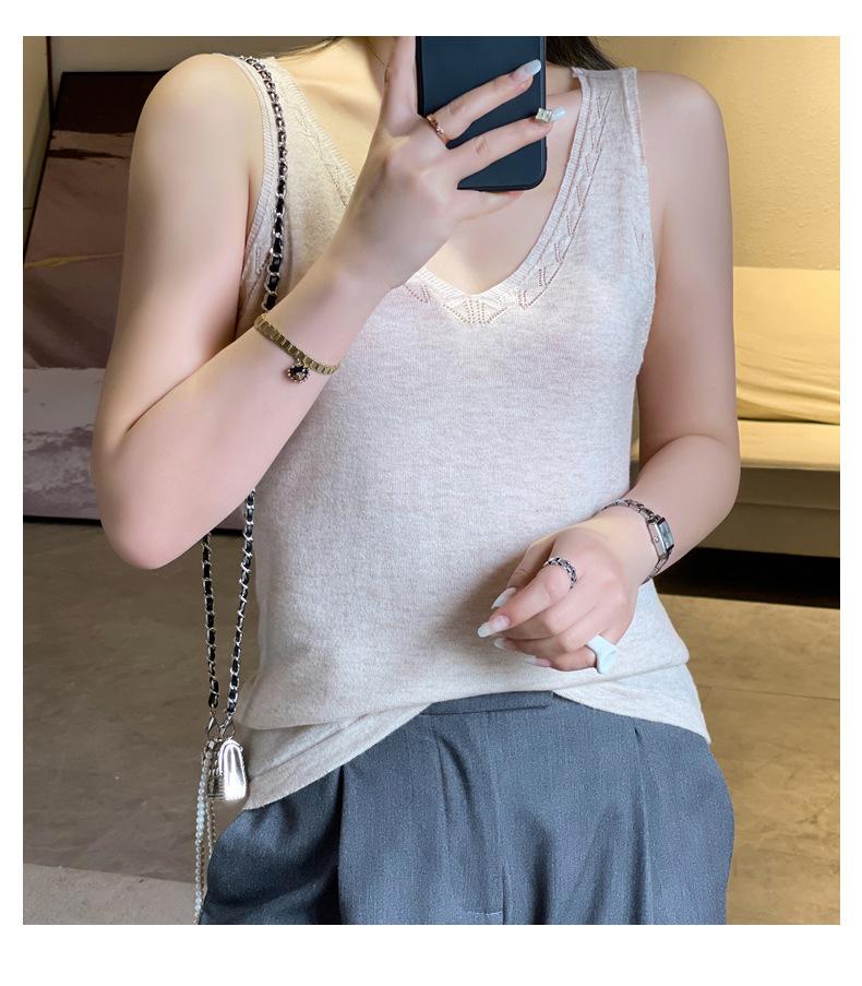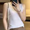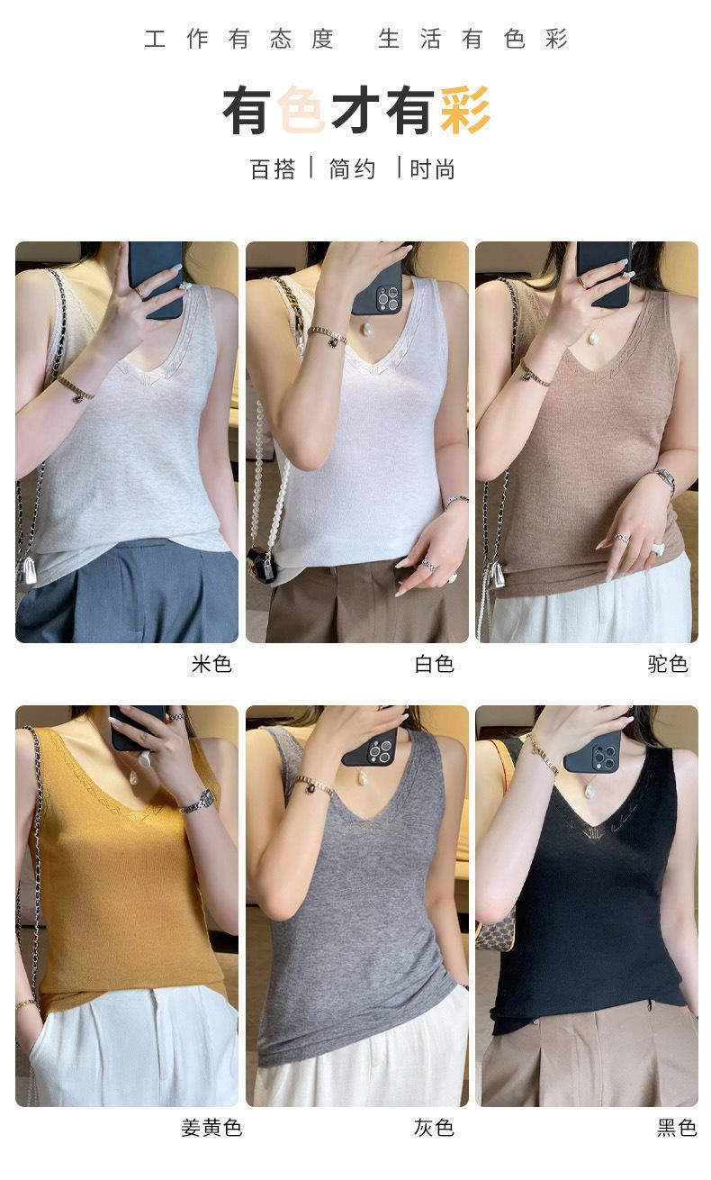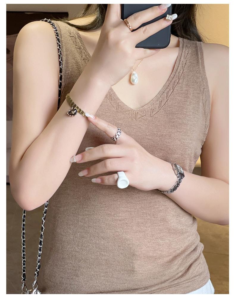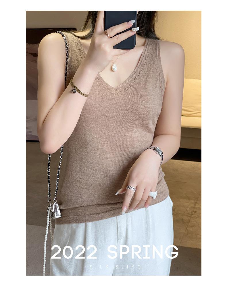 Camisola de punto con cuello en V de color liso para mujer, suéter básico corto ajustado sin mangas y fino