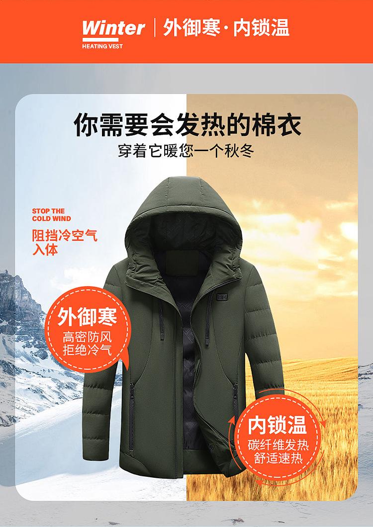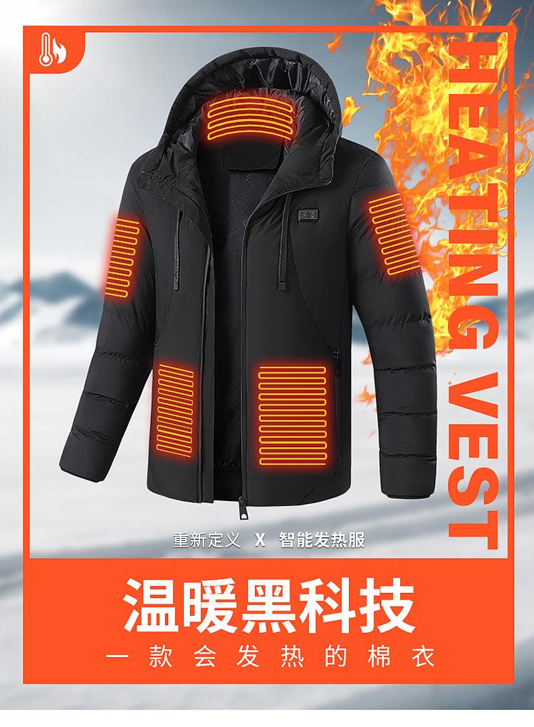 Chaqueta acolchada de algodón con calefacción inteligente de invierno con explosiones transfronterizas, chaqueta acolchada de algodón con calefacción a temperatura constante y carga, abrigo con capucha para hombres y mujeres, venta directa de fábrica