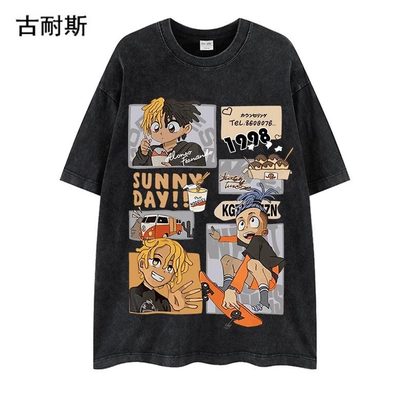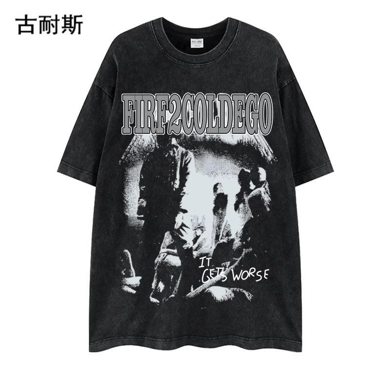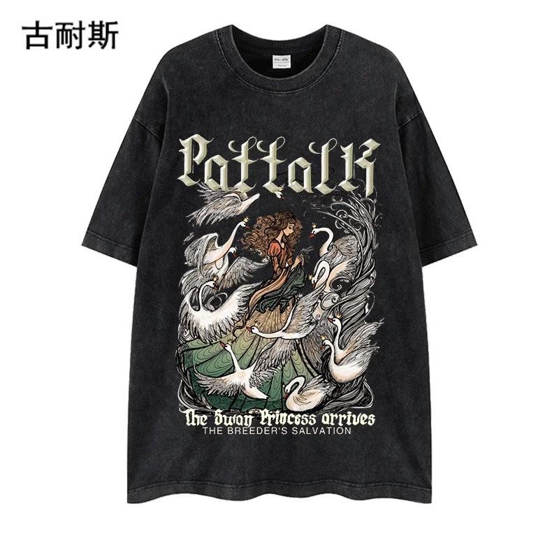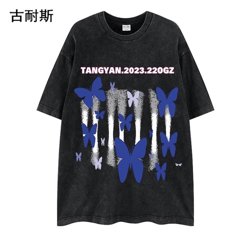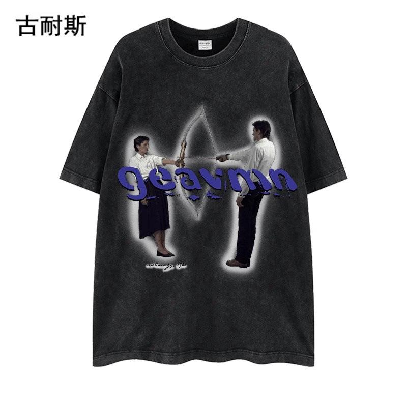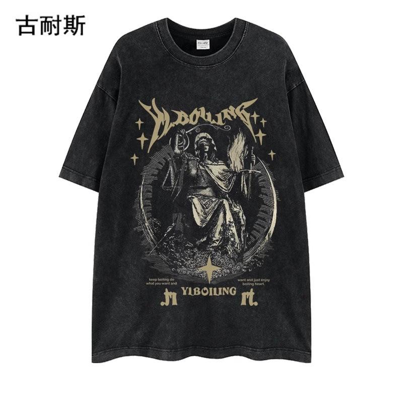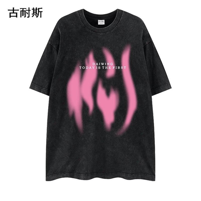 Camiseta de manga corta lavada de comercio exterior LAZADA, estilo Harajuku holgado de verano de gran tamaño, top informal que combina con todo