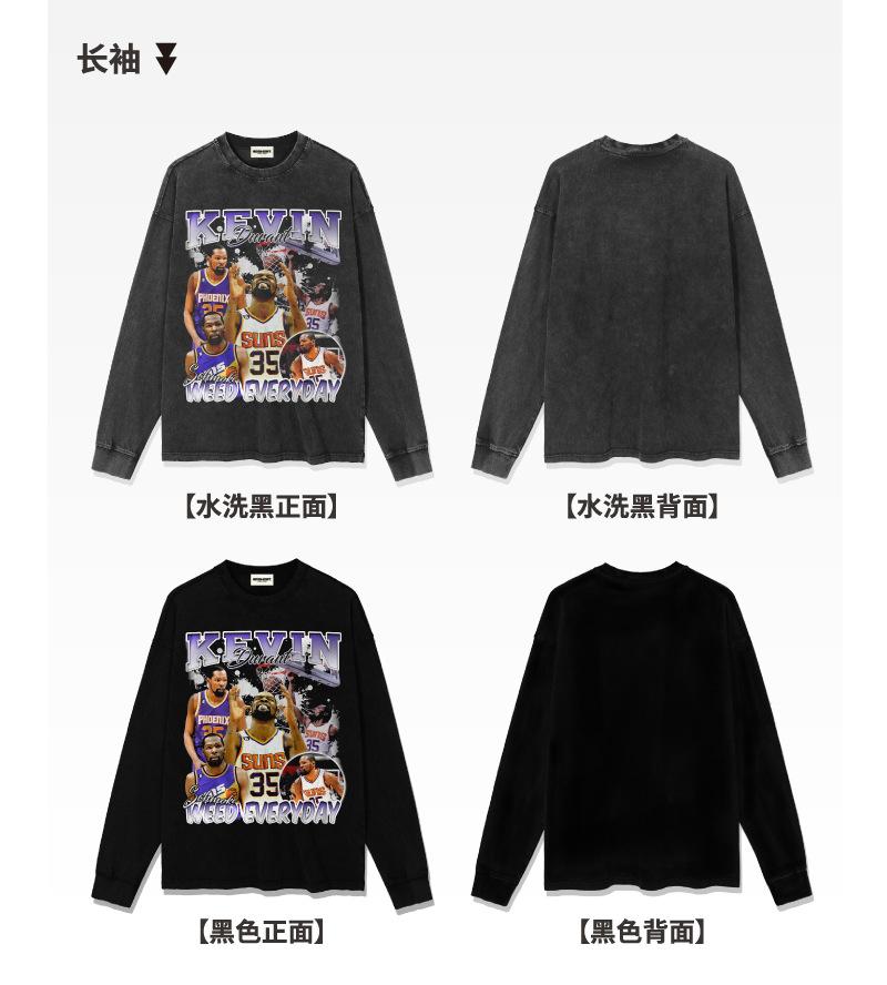 Camiseta de manga larga y manga corta estampada retro transfronteriza Durant Durant lavada pesada cuello redondo pesada holgada pequeño escote