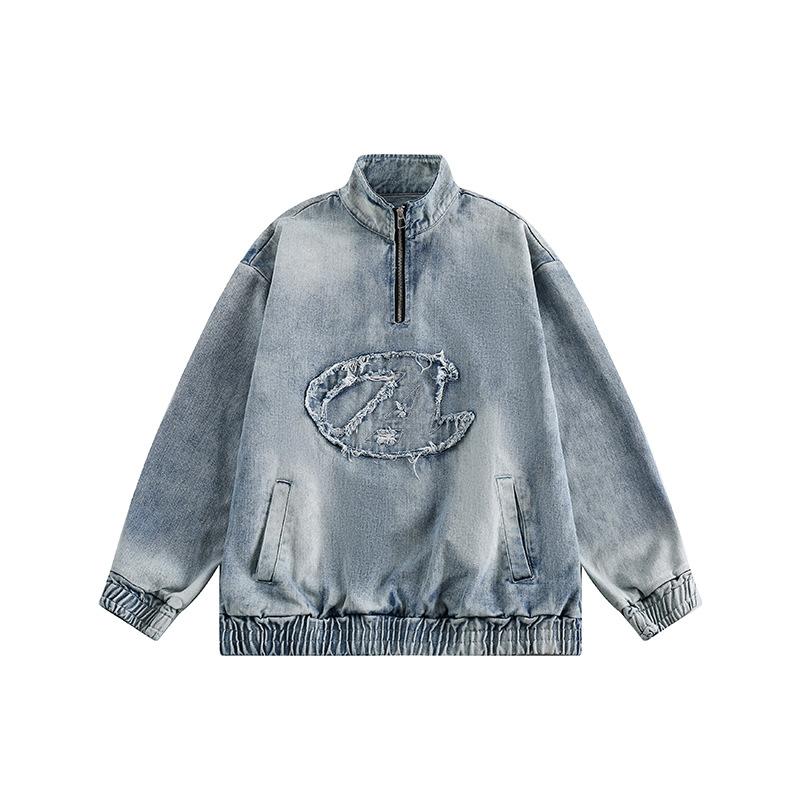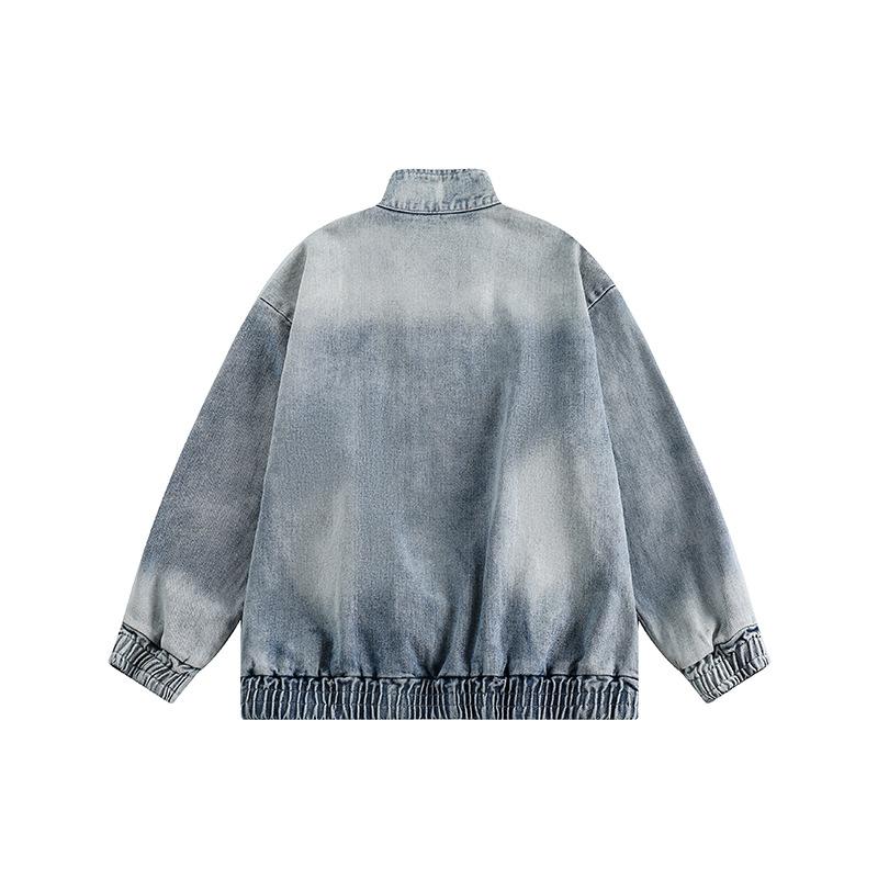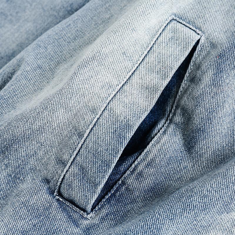 Ropa de verano del sur 2024 primavera color sólido parche en el pecho decorativo chaqueta cuello mao retro japonés abrigo de mezclilla lavado