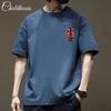 Camiseta de manga corta estilo japonés retro para niño, de verano, moderna, de algodón puro, holgada, combinable, informal, con cuello redondo y media manga.