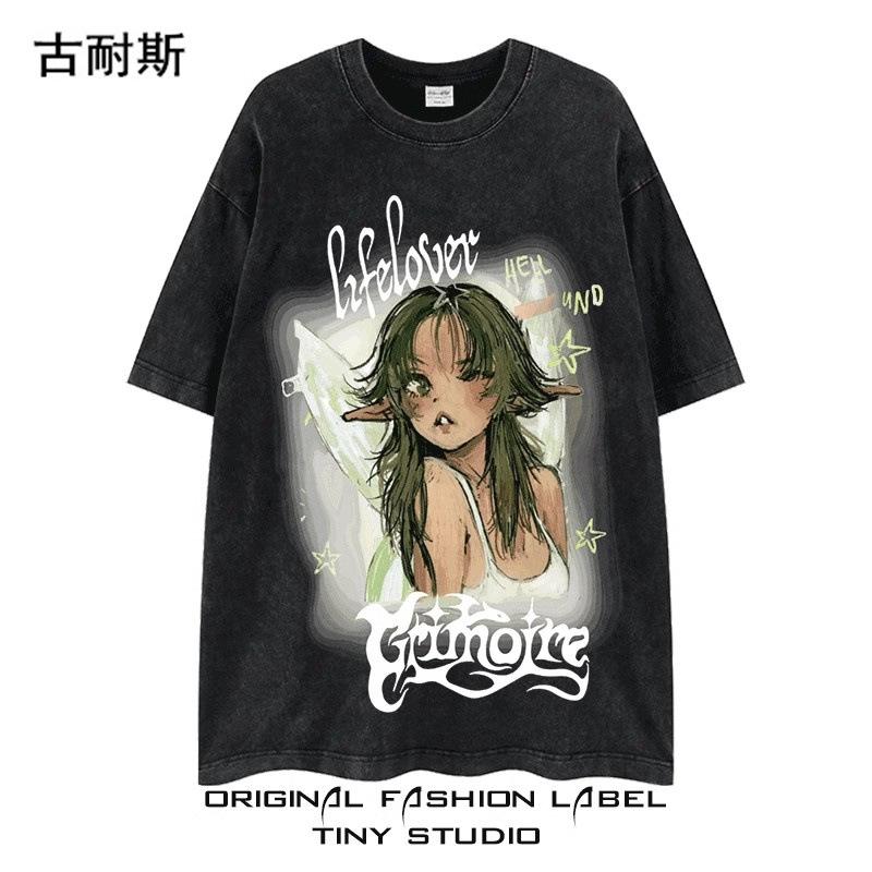 Camiseta LAZADA de verano para hombre, estilo desgastado, holgada, estilo americano, con estampado desgastado, de manga corta, para combinar con todo. eBay