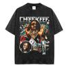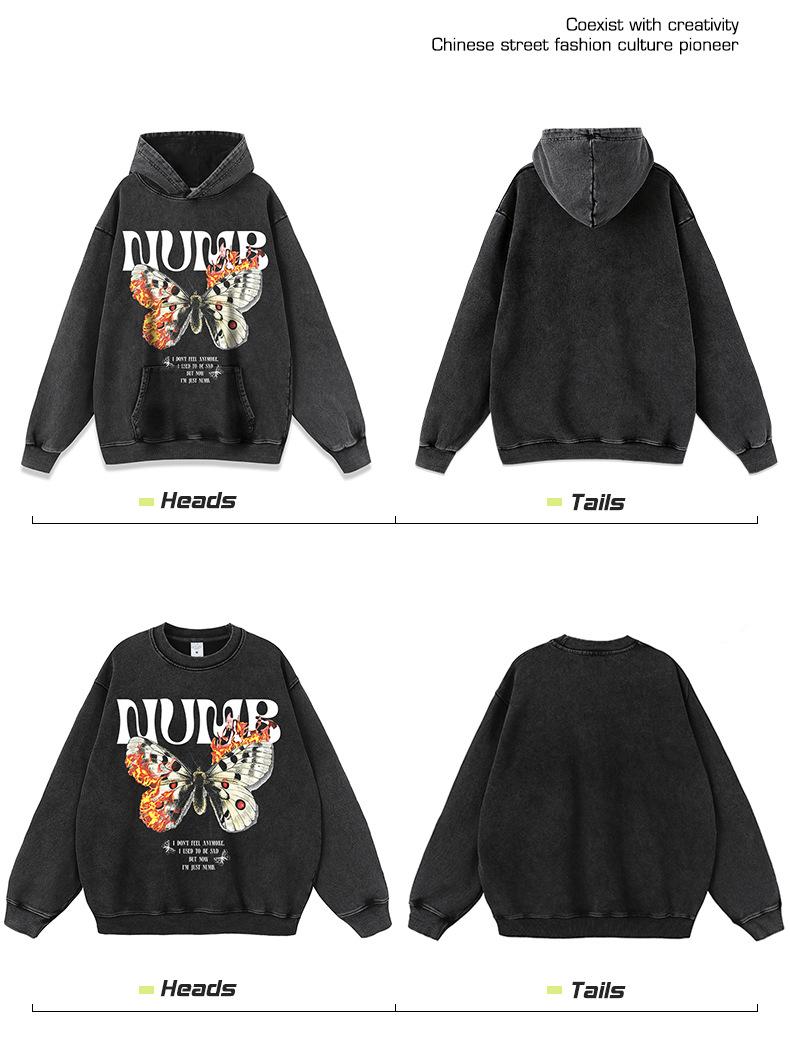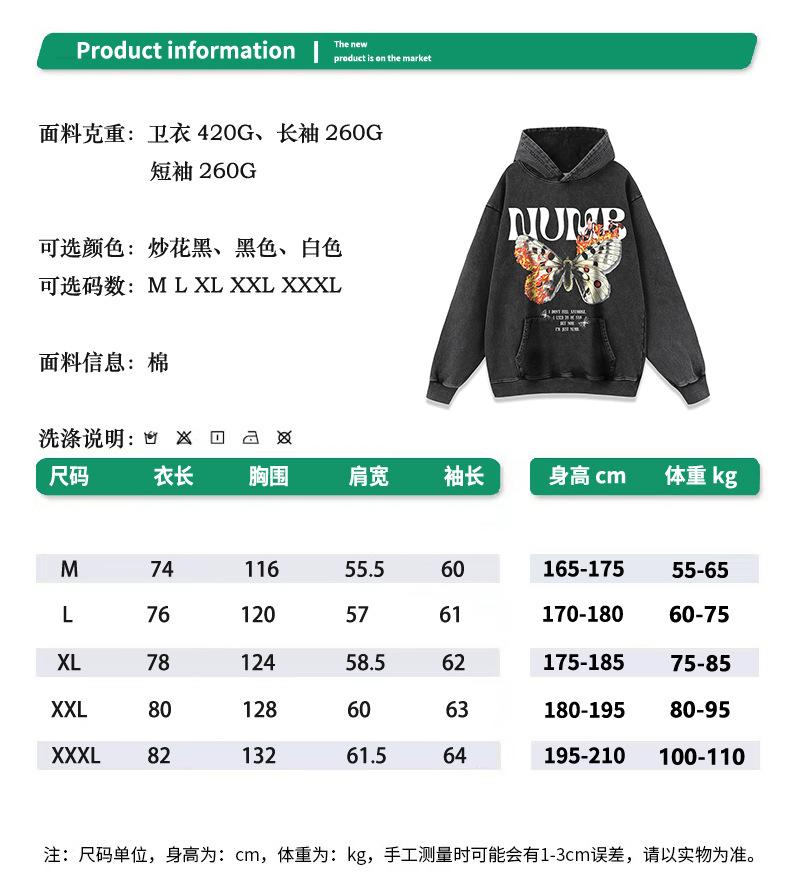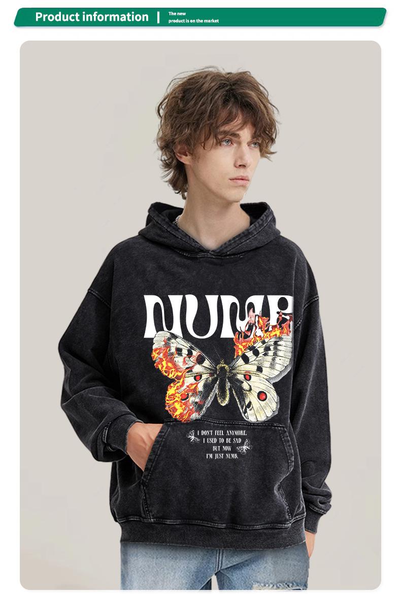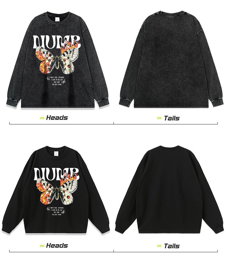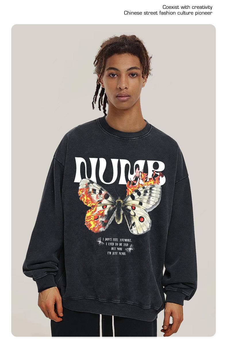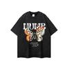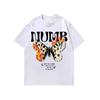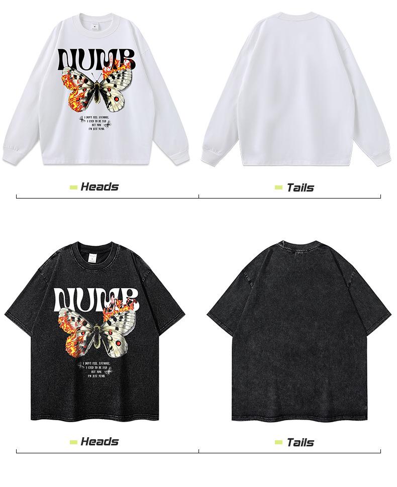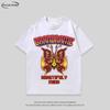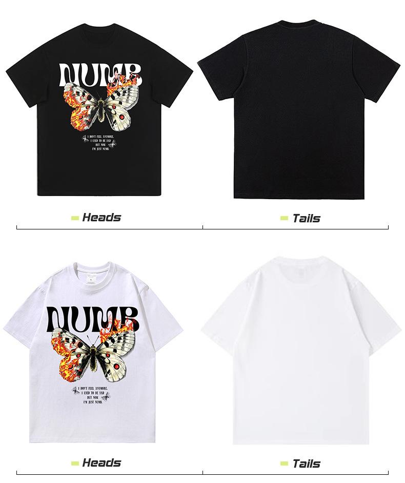 Camiseta de manga corta con estampado de mariposas y llamas de gran tamaño de hip hop de moda nacional para hombres y mujeres, camiseta de cuello redondo de marca de moda informal