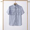 Camisa de lino informal de manga corta a cuadros para hombre, con solapa sencilla y bolsillo de parche, F014, novedad de verano de 2024