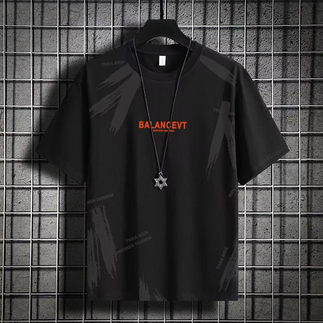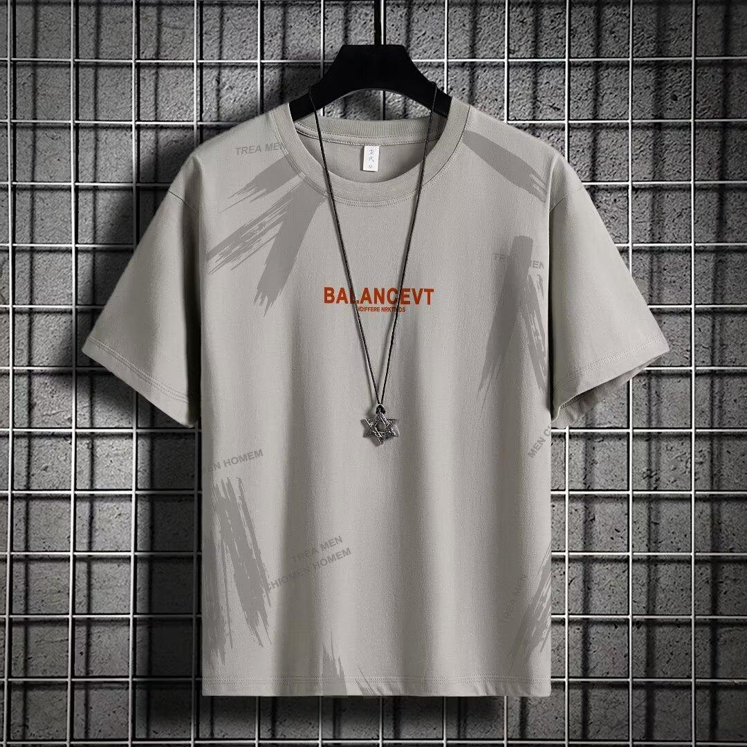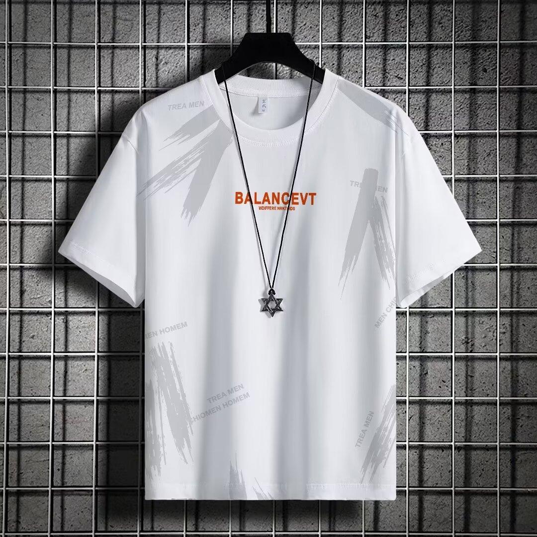 Camiseta transpirable de verano 2024 para hombre, nueva camiseta de manga corta con estampado inglés para hombre, informal, holgada, a la moda, combinable con todo.