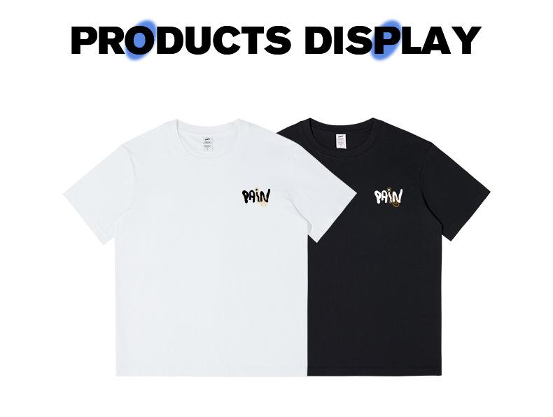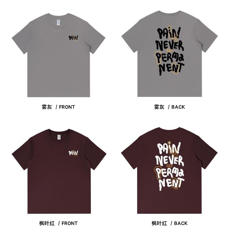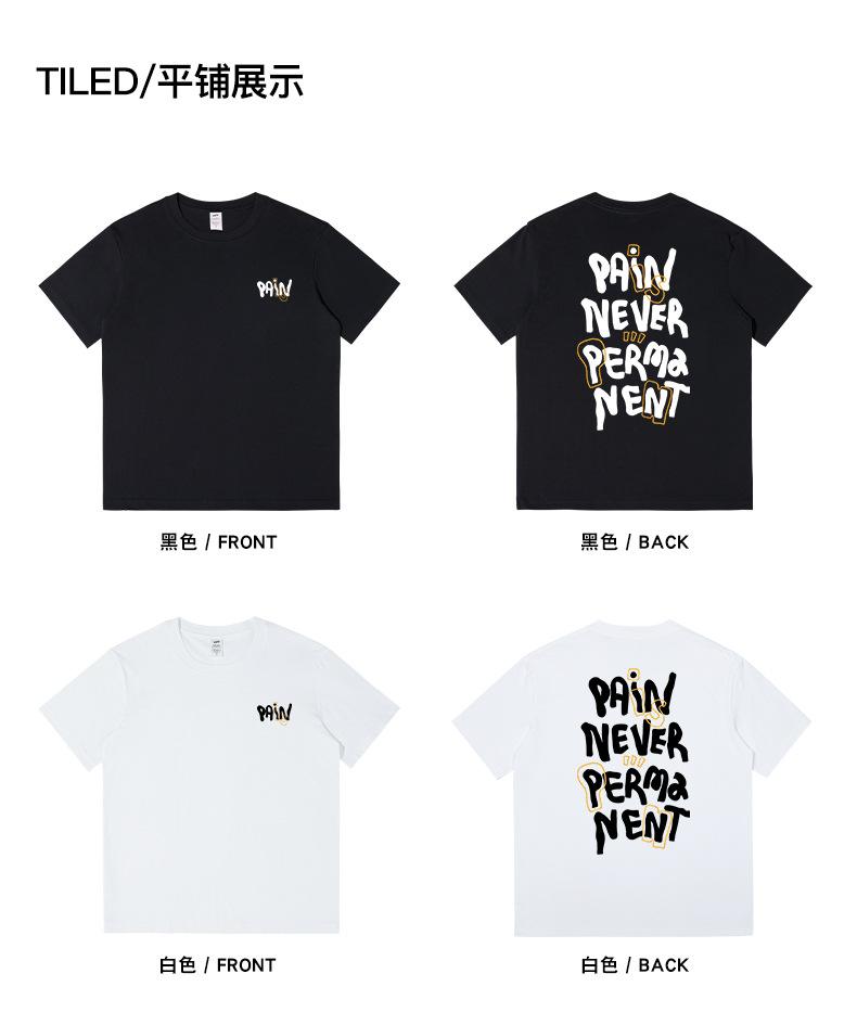 Camiseta de Algodón Suelta de Calle Americana 230g con Estampado de Letras en la Espalda de Manga Corta para Hombre Cuello Redondo Japonés Manga Media para Hombre