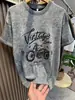 Camiseta de manga corta estilo americano sencillo para hombre, de marca moderna de verano, holgada, de media manga, de algodón 230 g, informal, con cuello redondo