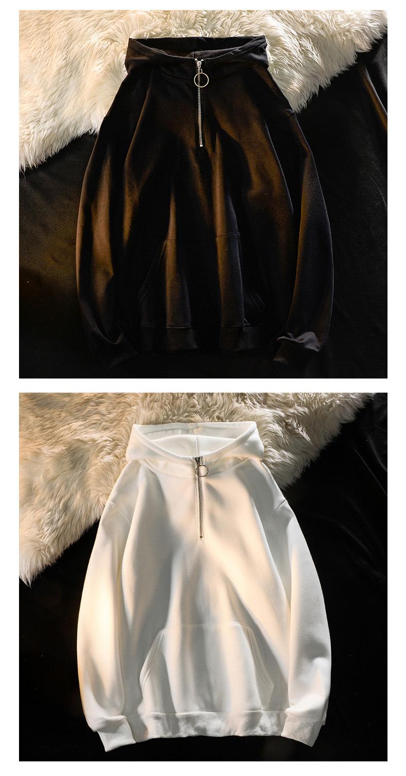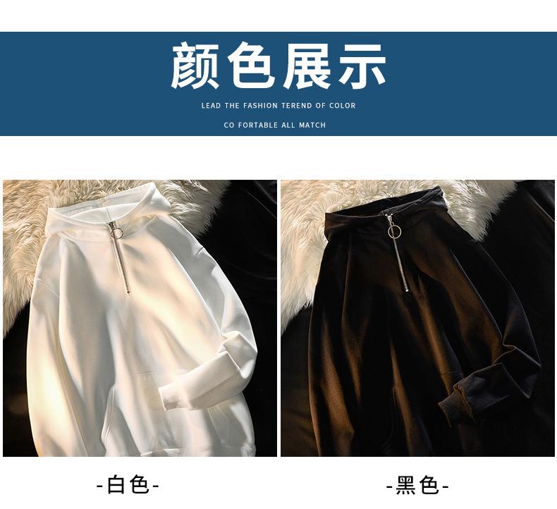 Suéter con capucha, grueso y cálido, con forro polar y media cremallera, estilo europeo y americano, para hombres y mujeres, chaqueta holgada de otoño e invierno, estilo perezoso.