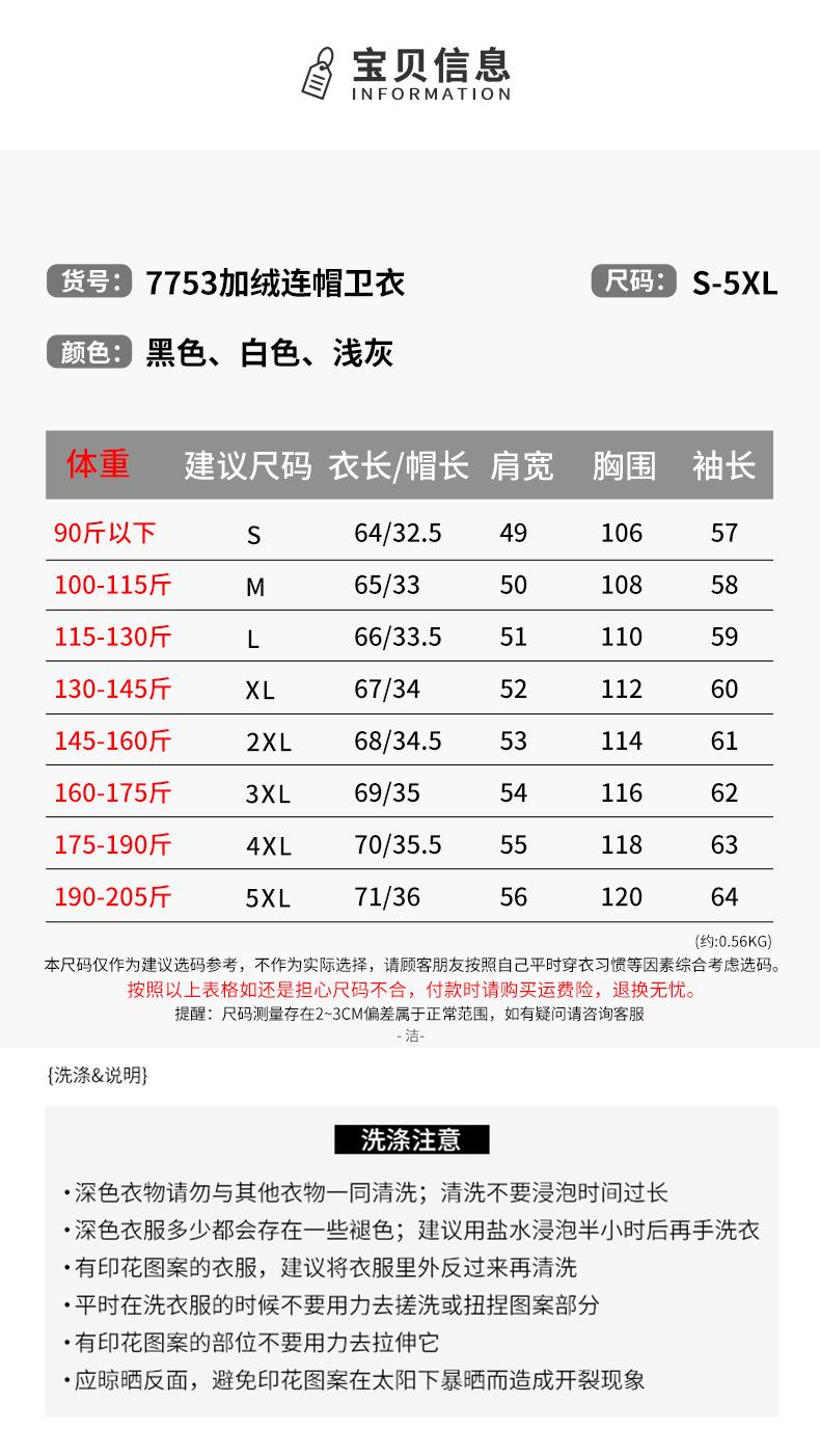 Size Chart, 7753 plus velvet sweater White, 7753 Velvet Sweatshirt Black