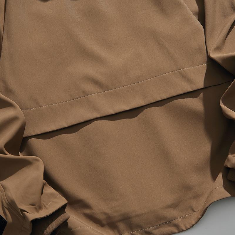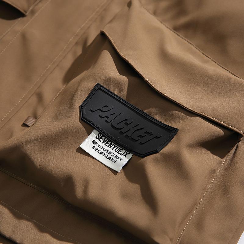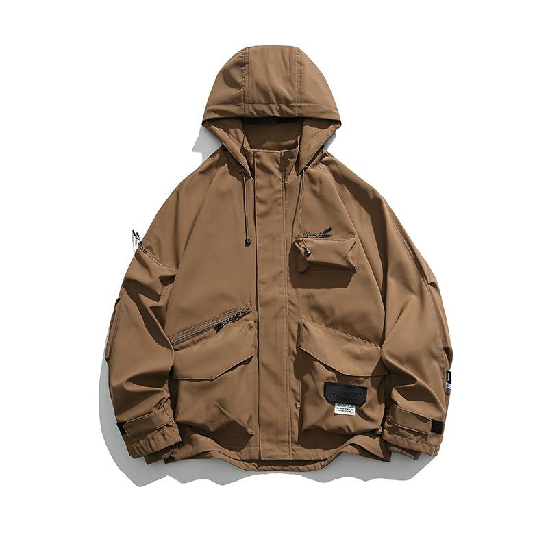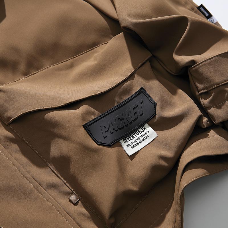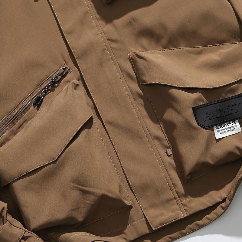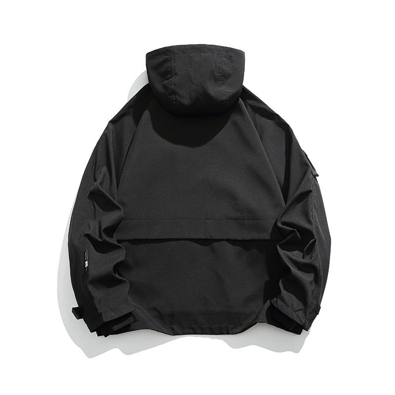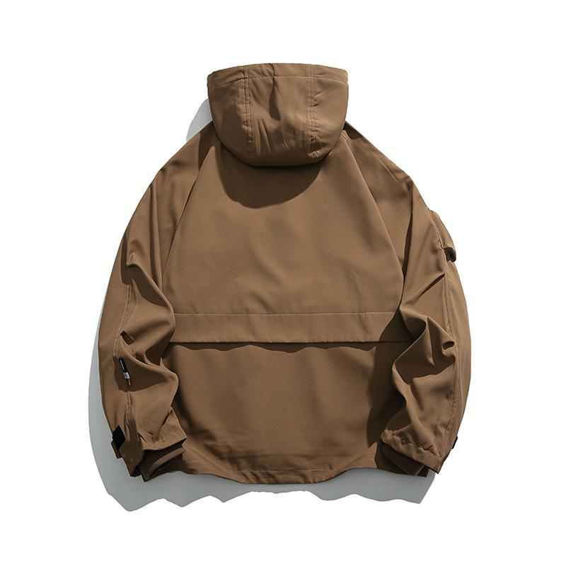 Chaqueta con capucha decorativa con bolsillo de color sólido, estilo retro japonés, para exteriores, ropa de trabajo funcional, estilo verano 2023