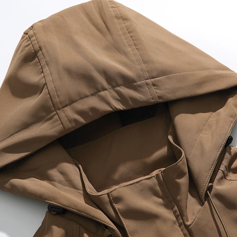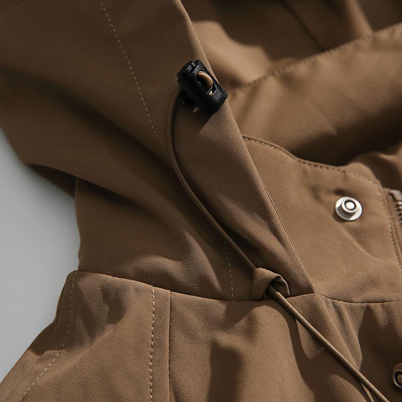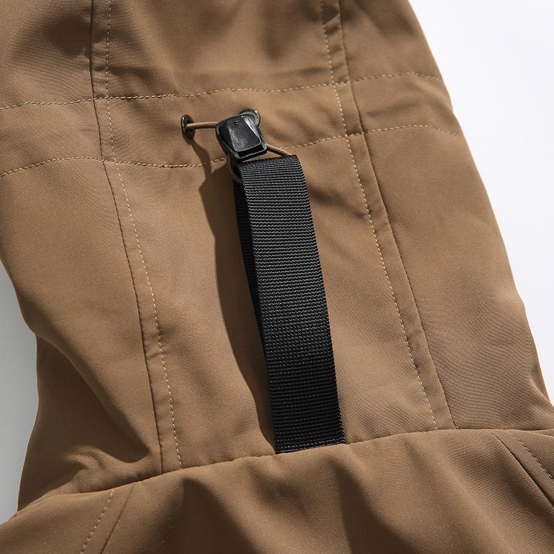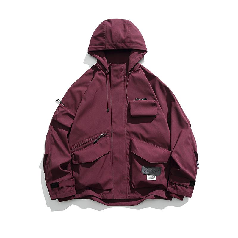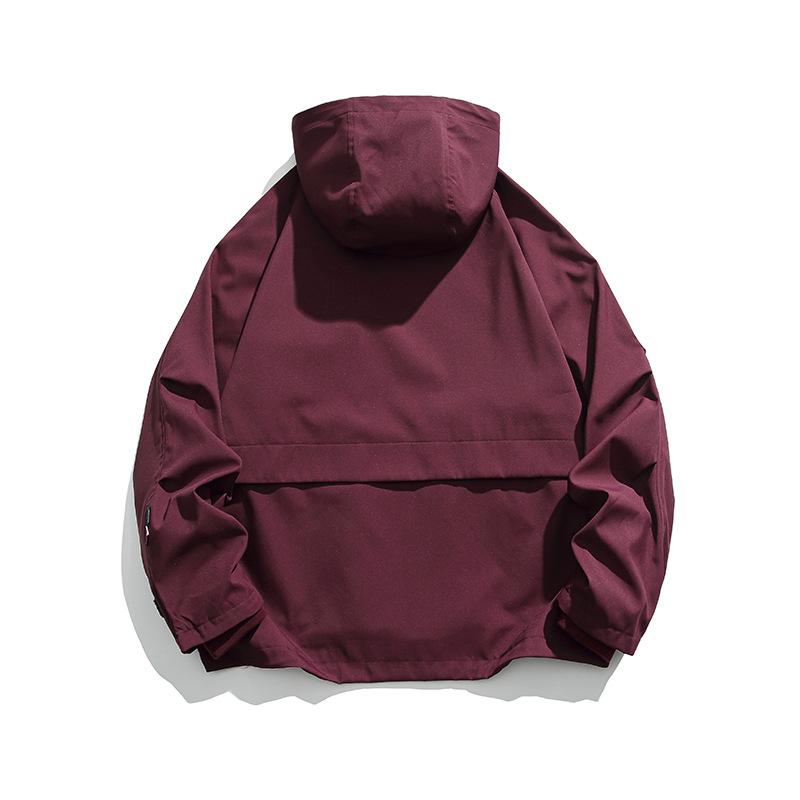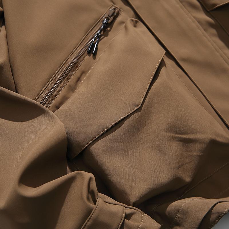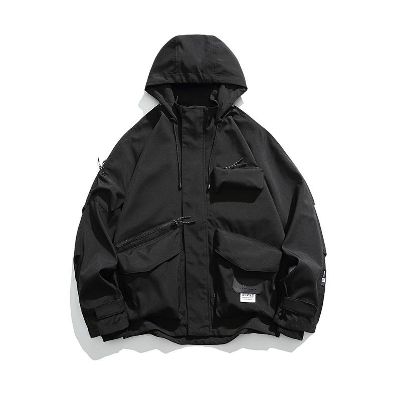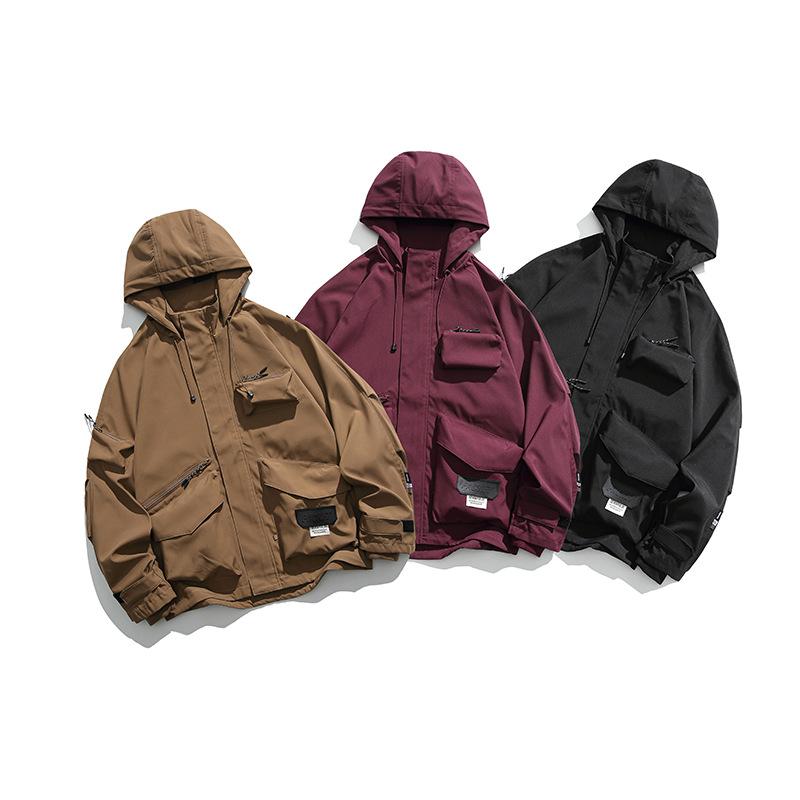 Chaqueta con capucha decorativa con bolsillo de color sólido, estilo retro japonés, para exteriores, ropa de trabajo funcional, estilo verano 2023
