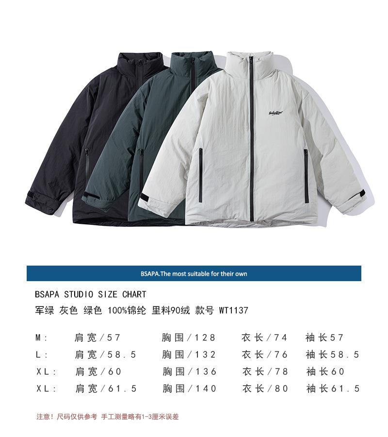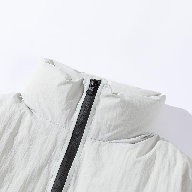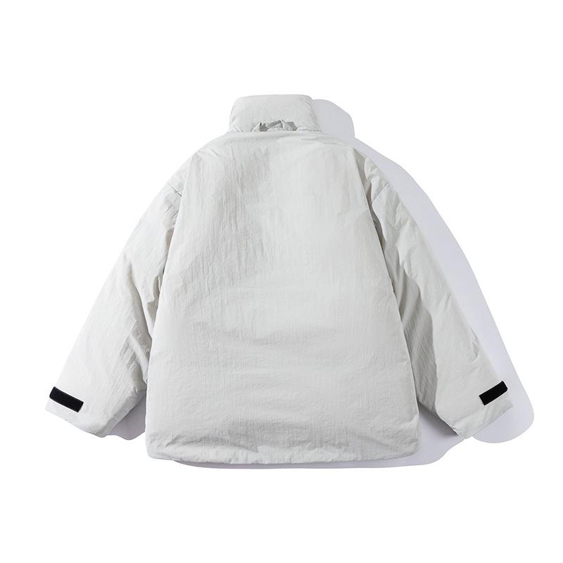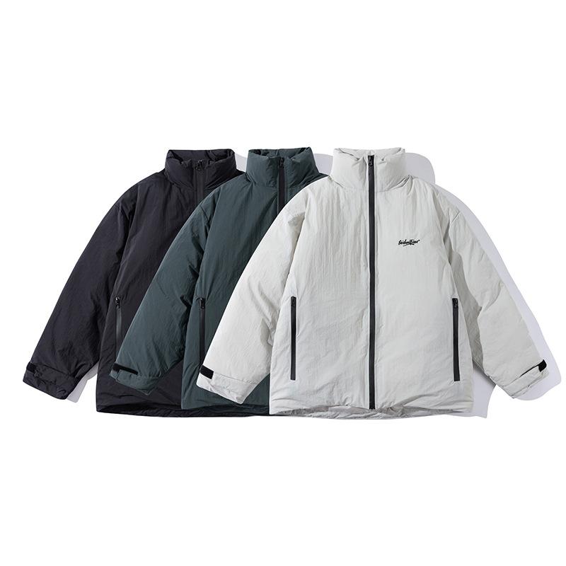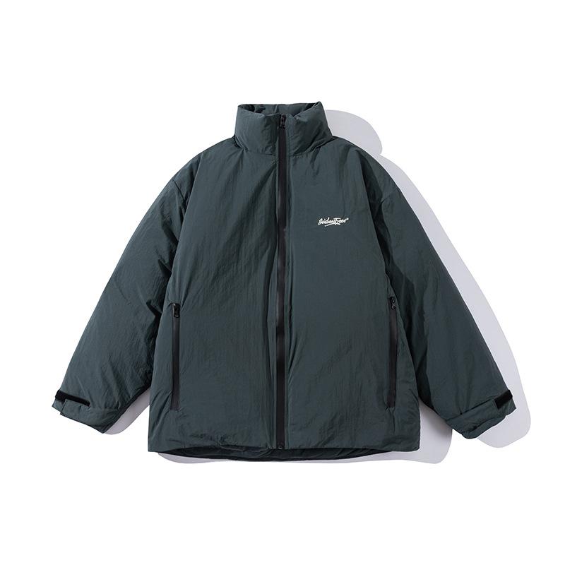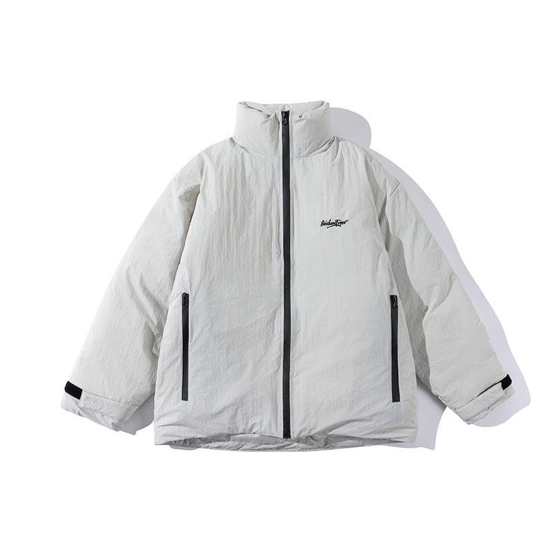 Ropa de verano del sur 2023 Invierno letra bordada cuello alto chamarra de plumón retro japonés holgada impermeable con cremallera chamarra de plumón