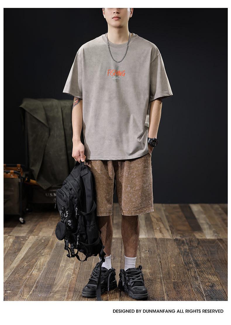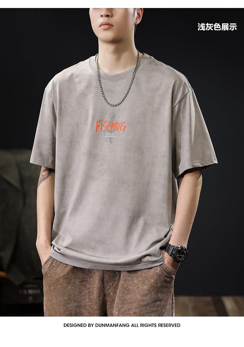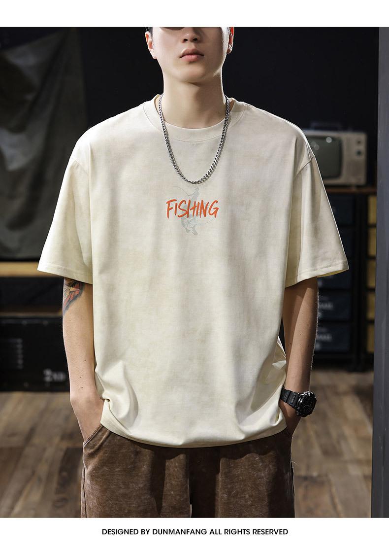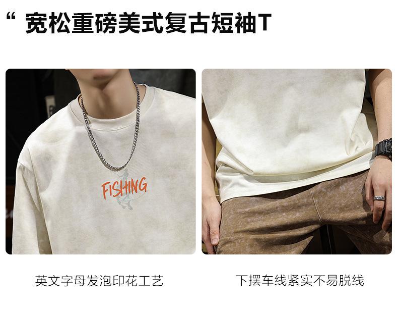 Camiseta de manga corta retro descolorida con lavado antiguo pesado de 230 g, nueva marca de moda de verano para hombre, camiseta de media manga holgada de tendencia americana