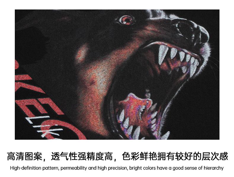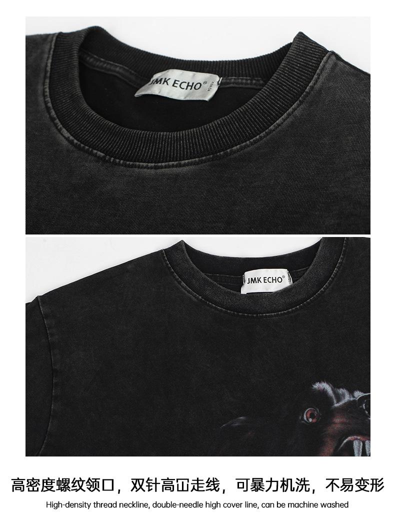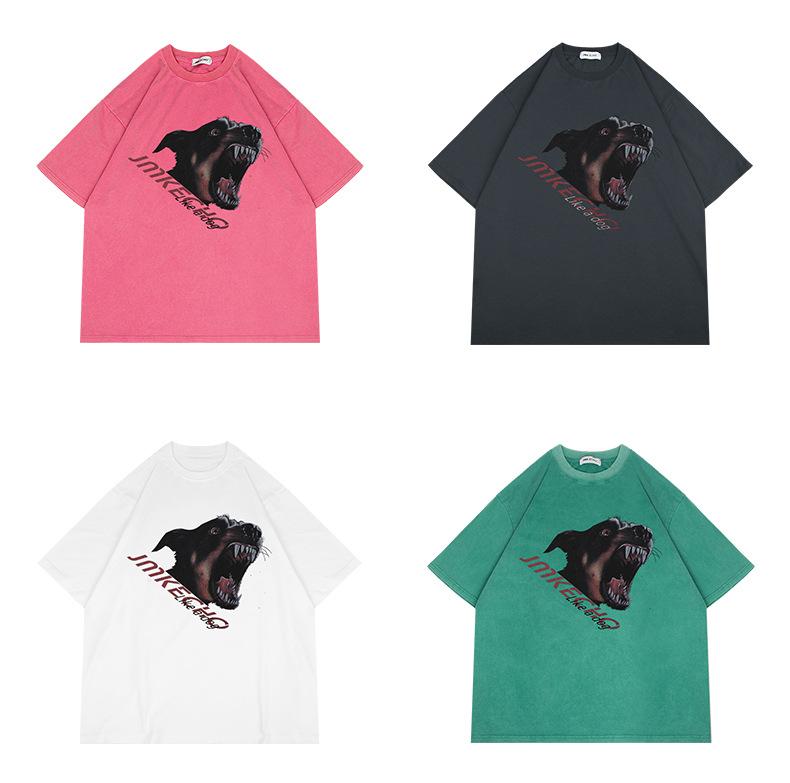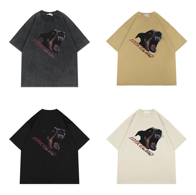 JMK EXDVATIE comercio electrónico transfronterizo Americano retro Doberman estampado Calle holgada lavada camiseta de manga corta para hombre