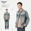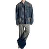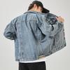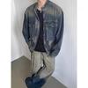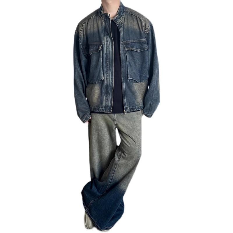 Otoño 2023 nostálgico azul retro suelto bolsillo grande cuello alto abrigo de mezclilla chaqueta casual con cremallera para hombre top de moda
