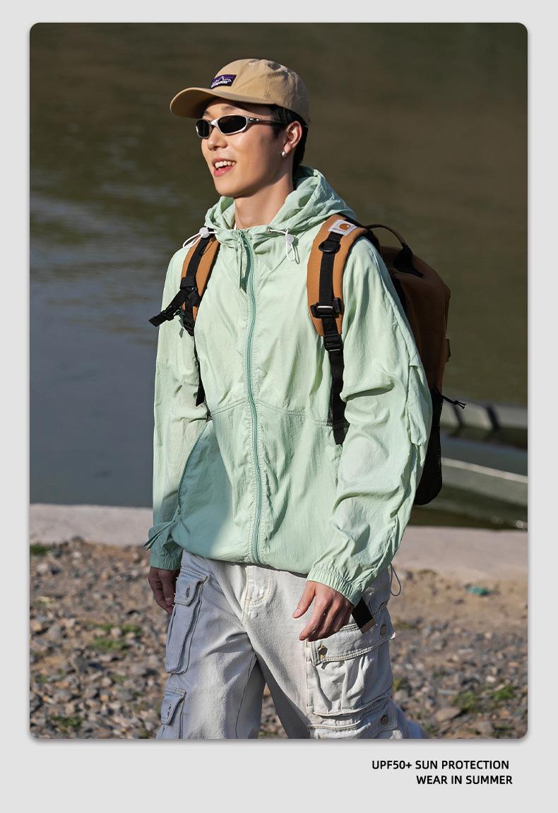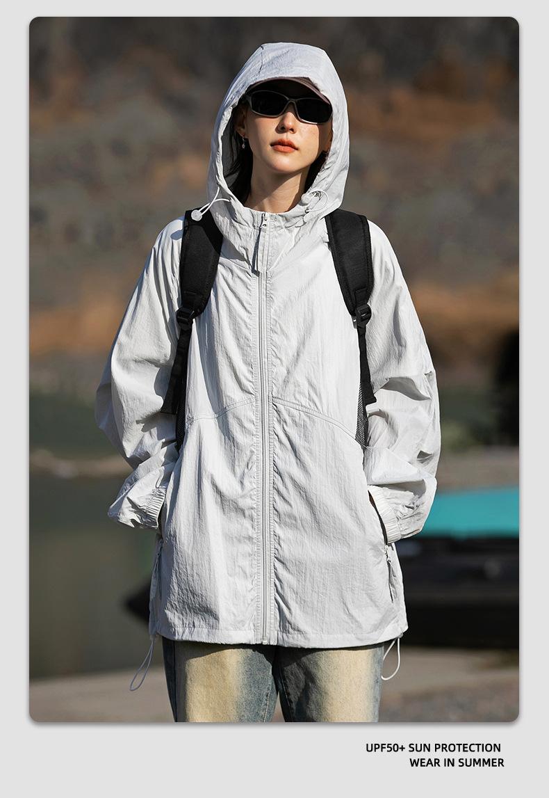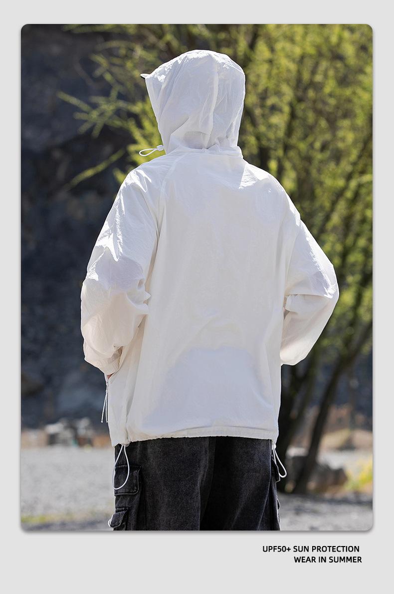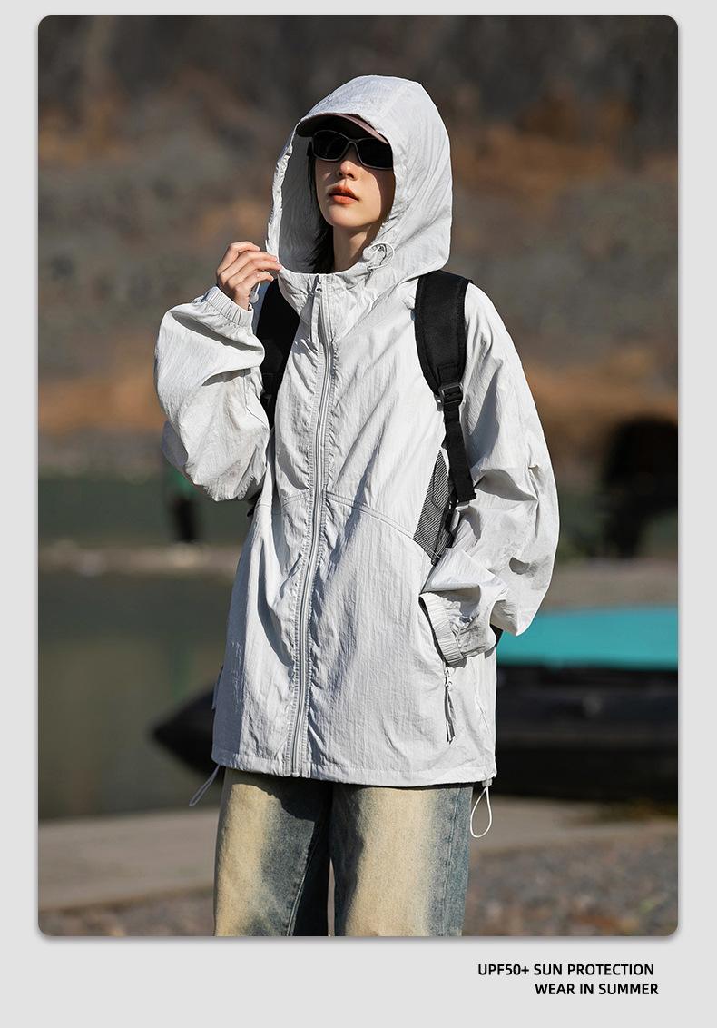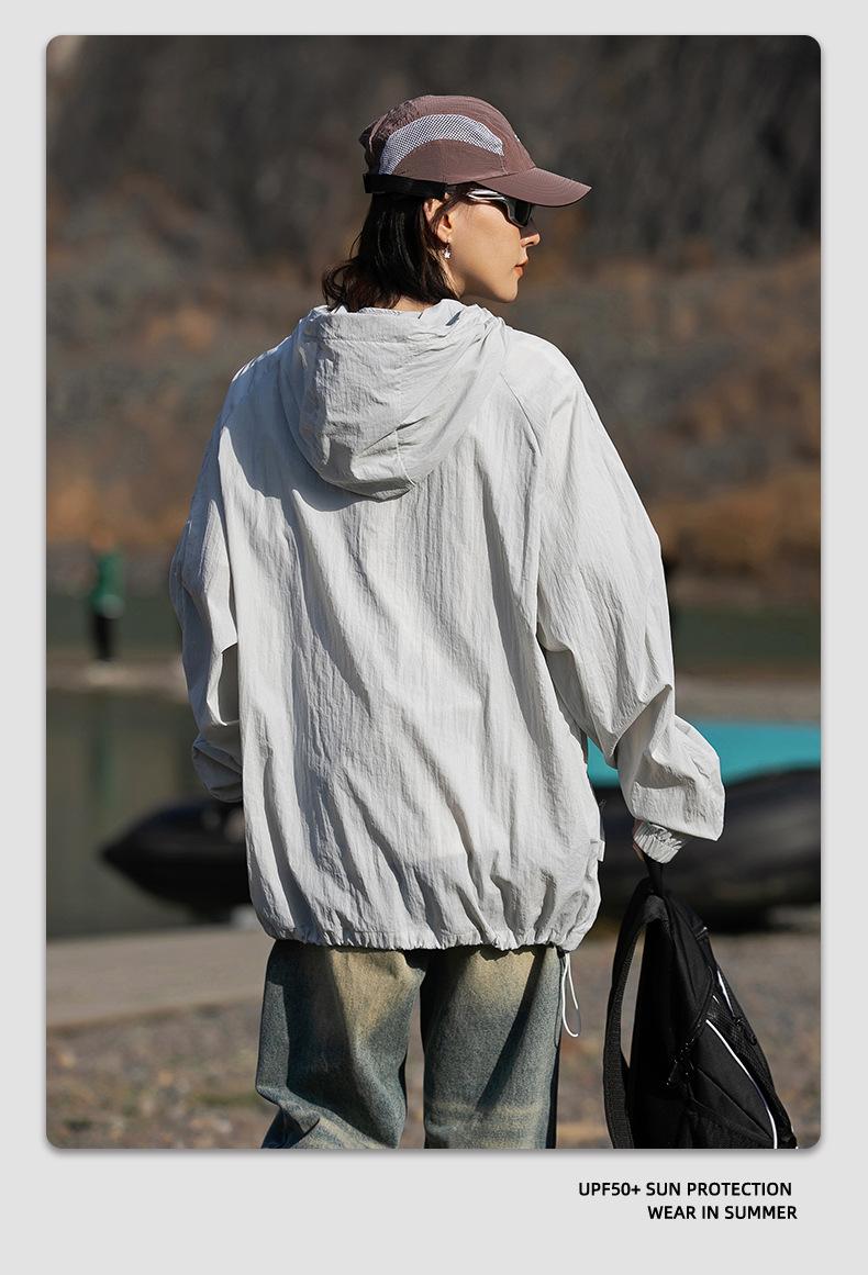 Ropa de protección solar UPF50 para hombres y mujeres, abrigo ligero de verano, holgado, con capucha, protección UV, protector solar, transpirable, de seda helada.