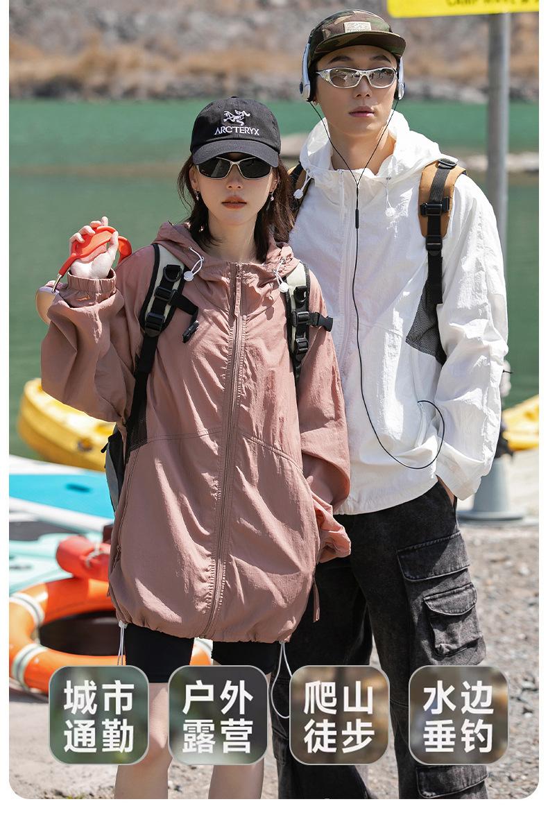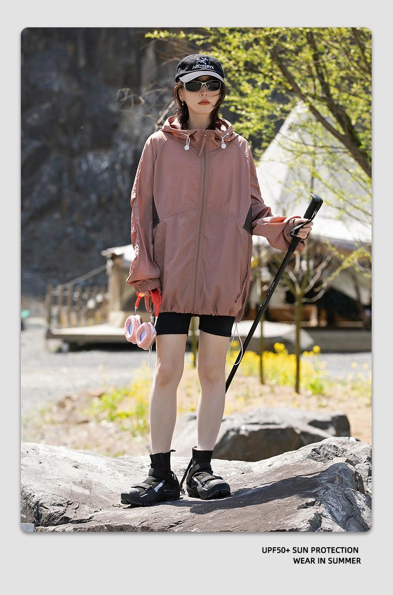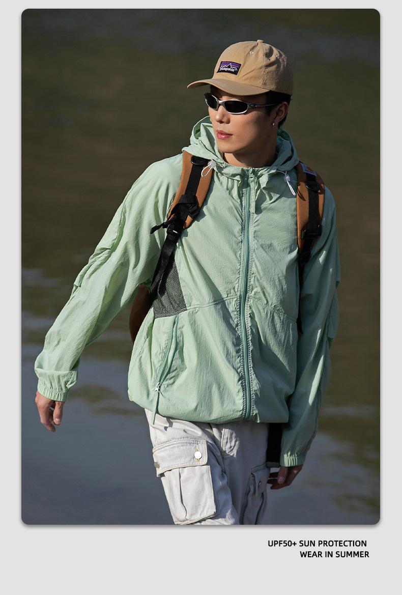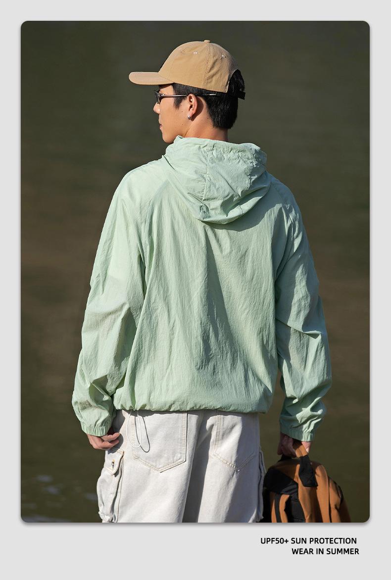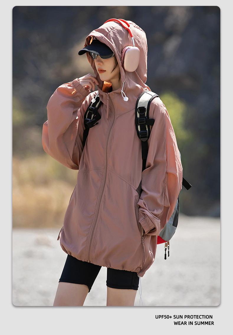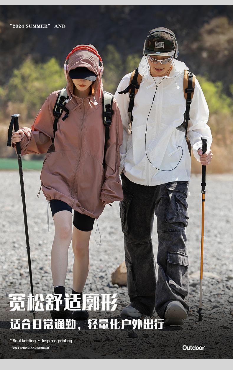 Ropa de protección solar UPF50 para hombres y mujeres, abrigo ligero de verano, holgado, con capucha, protección UV, protector solar, transpirable, de seda helada.