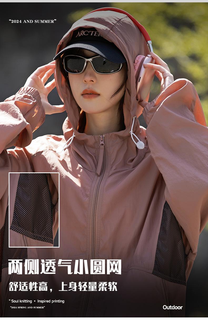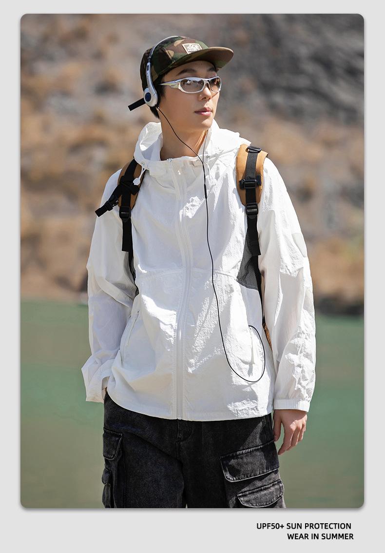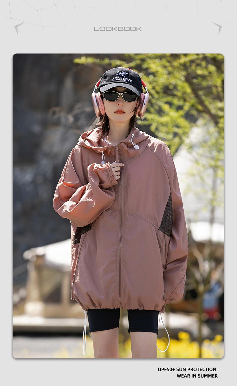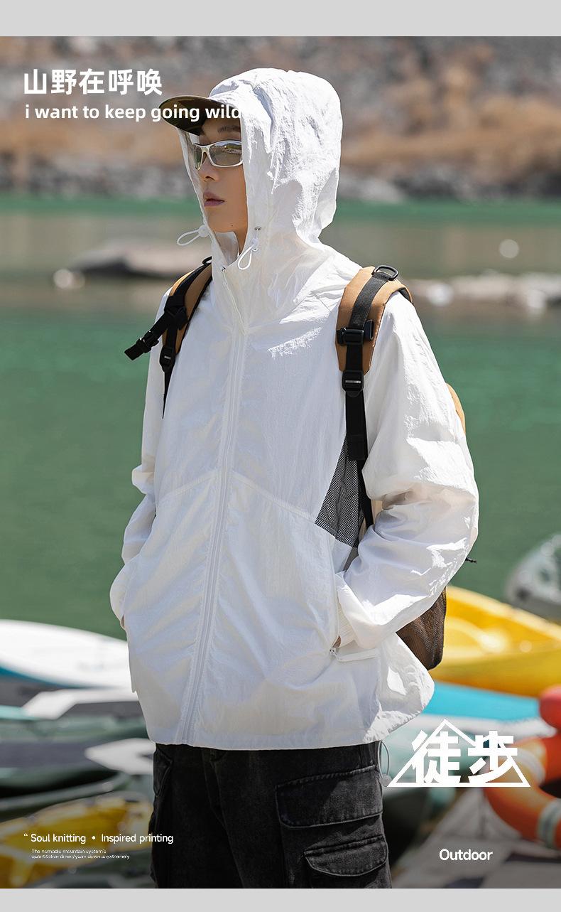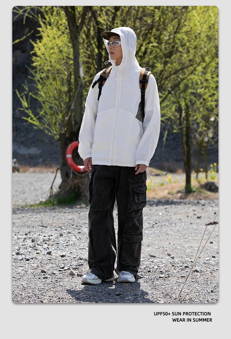 Ropa de protección solar UPF50 para hombres y mujeres, abrigo ligero de verano, holgado, con capucha, protección UV, protector solar, transpirable, de seda helada.