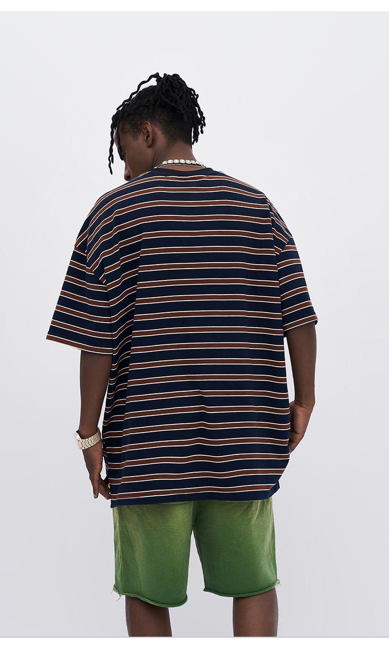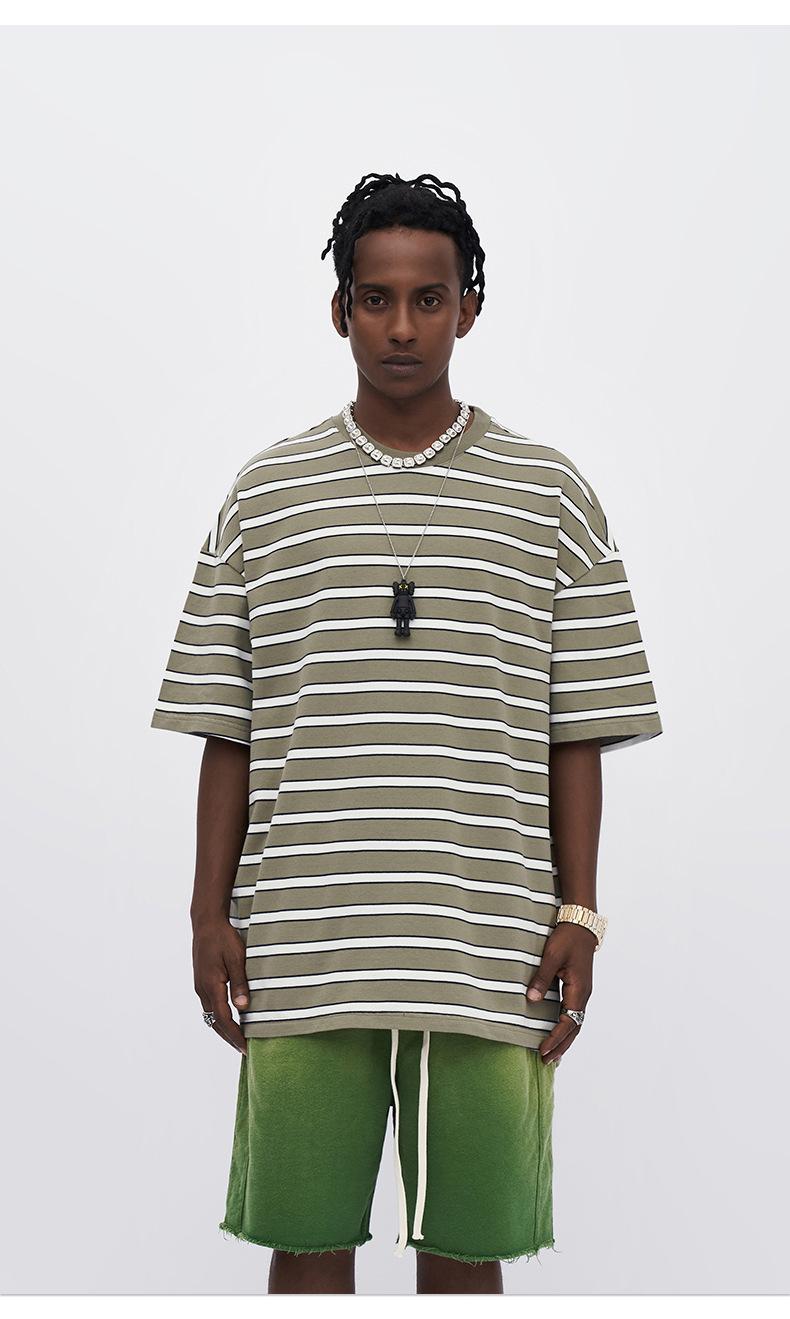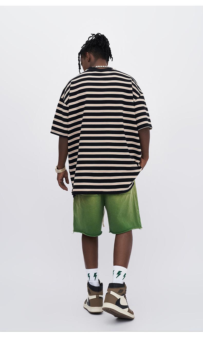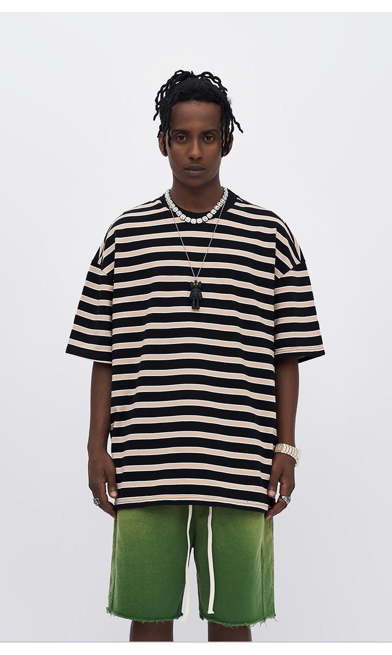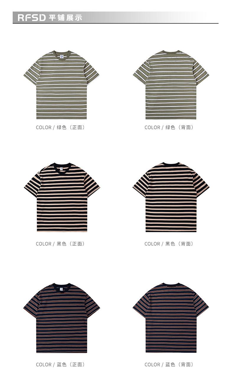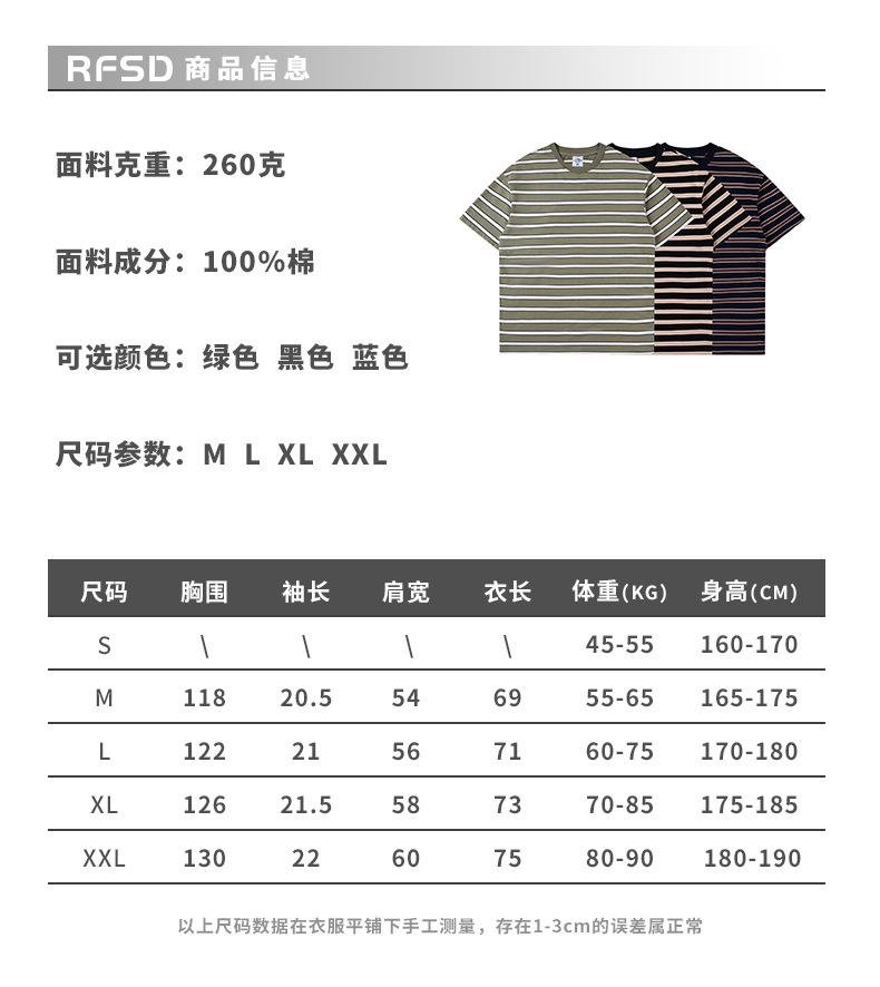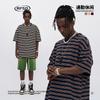 RFSD Ropa para Hombre | Camiseta de manga corta con cuello redondo, rayas, lavado retro, 260 g, marca American Street Loose Tide