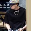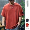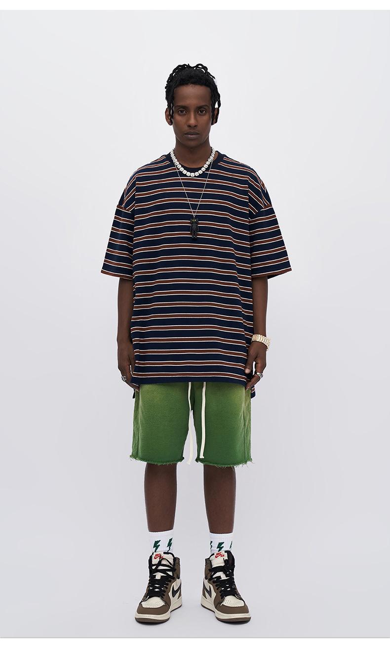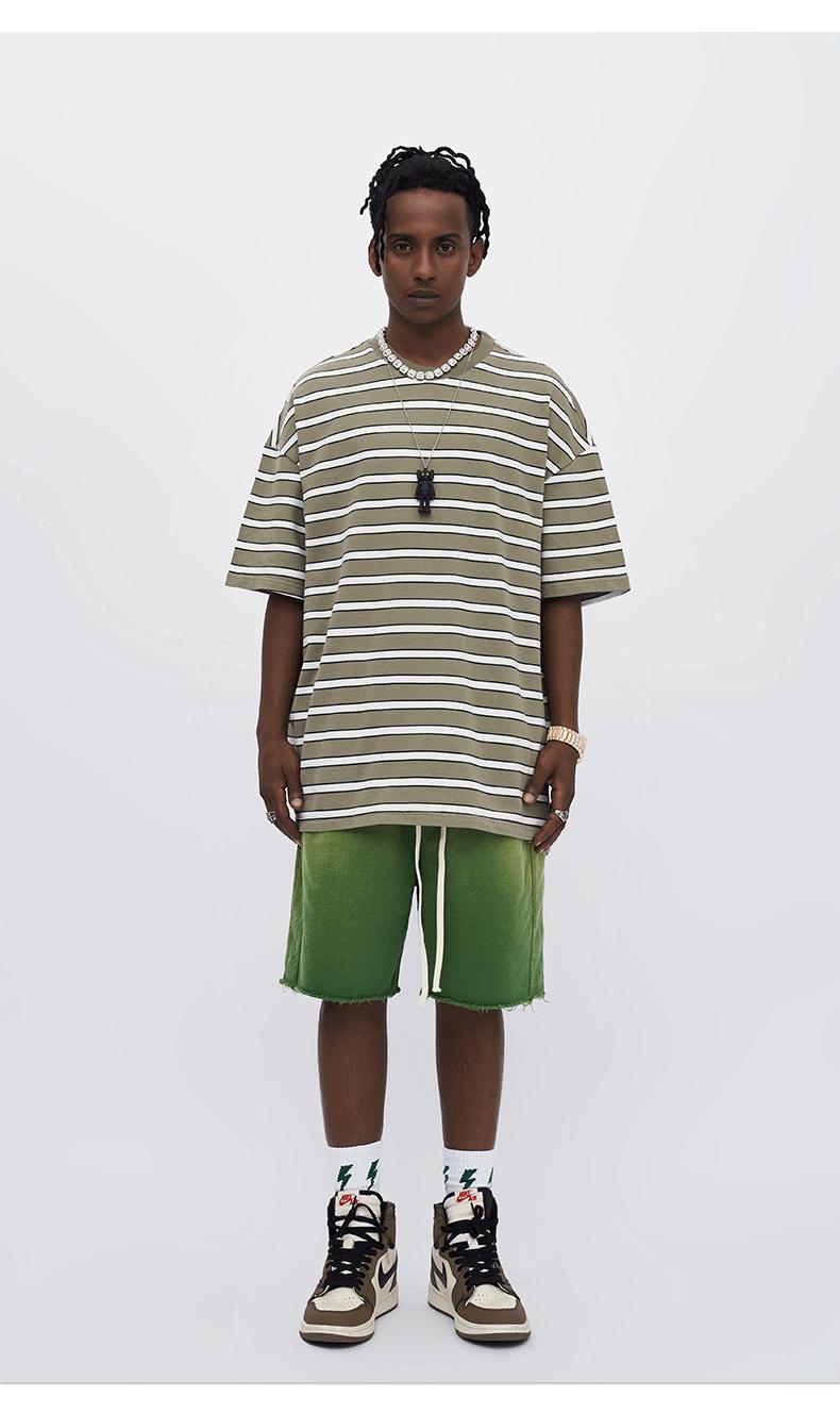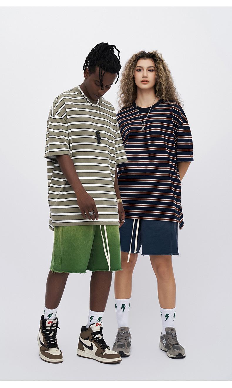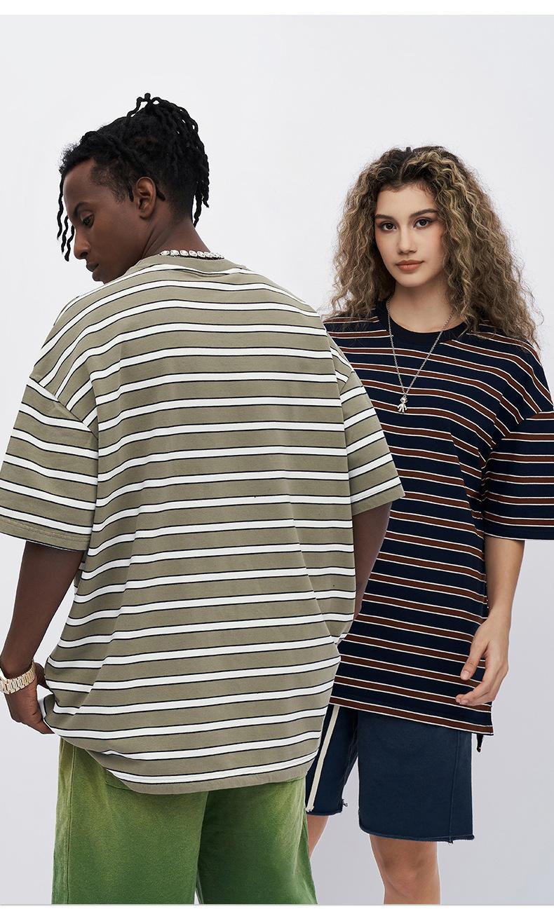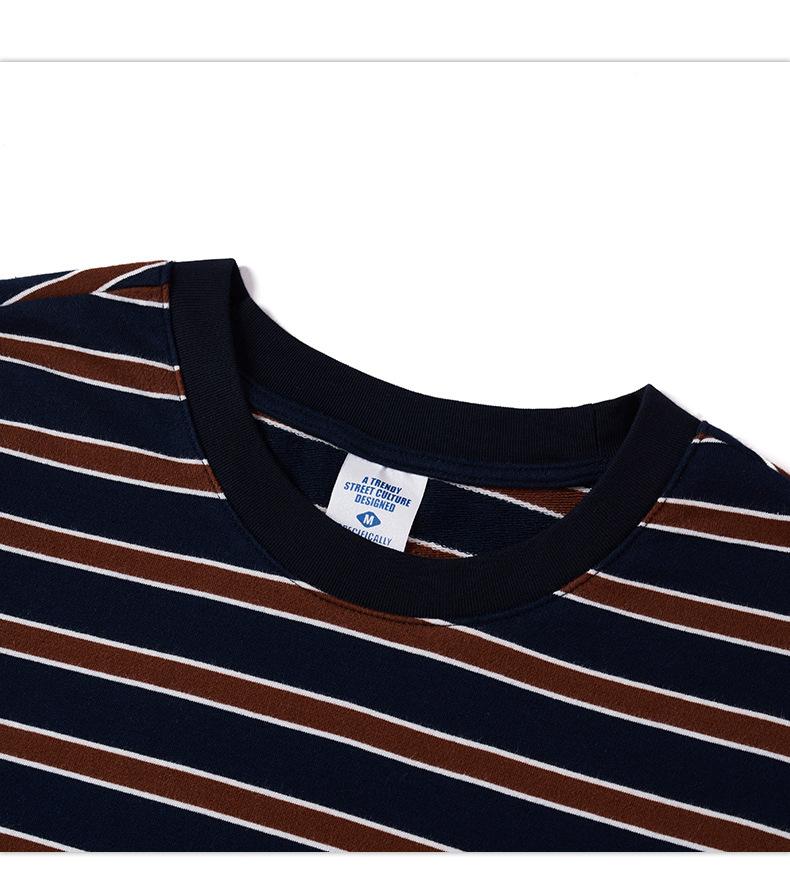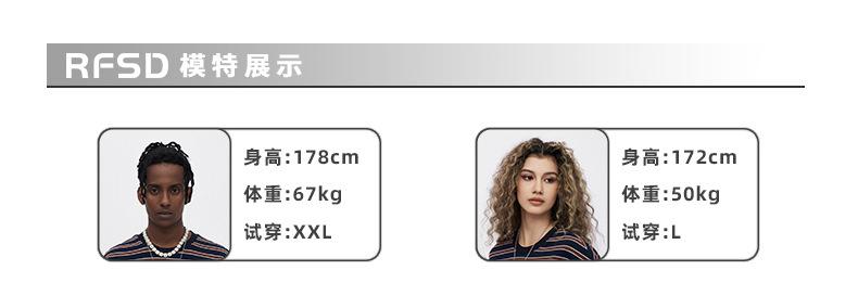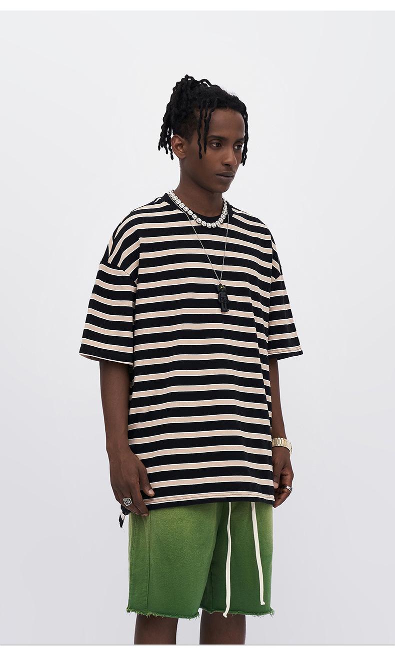 RFSD Ropa para Hombre | Camiseta de manga corta con cuello redondo, rayas, lavado retro, 260 g, marca American Street Loose Tide