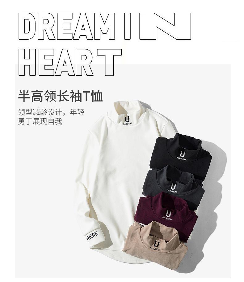 Otoño e Invierno Nueva Camiseta de Manga Larga Moda Coreana Cálida Forro Polar de Conejo Cuello Medio Alto Camiseta Base Todo Combinable Estudiante Marca de Moda Top