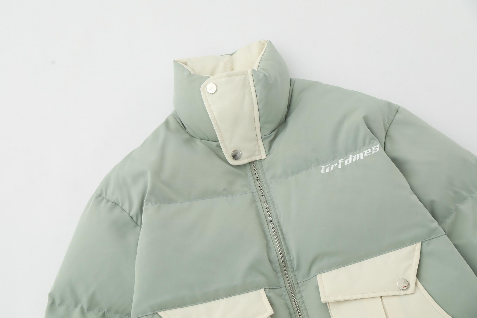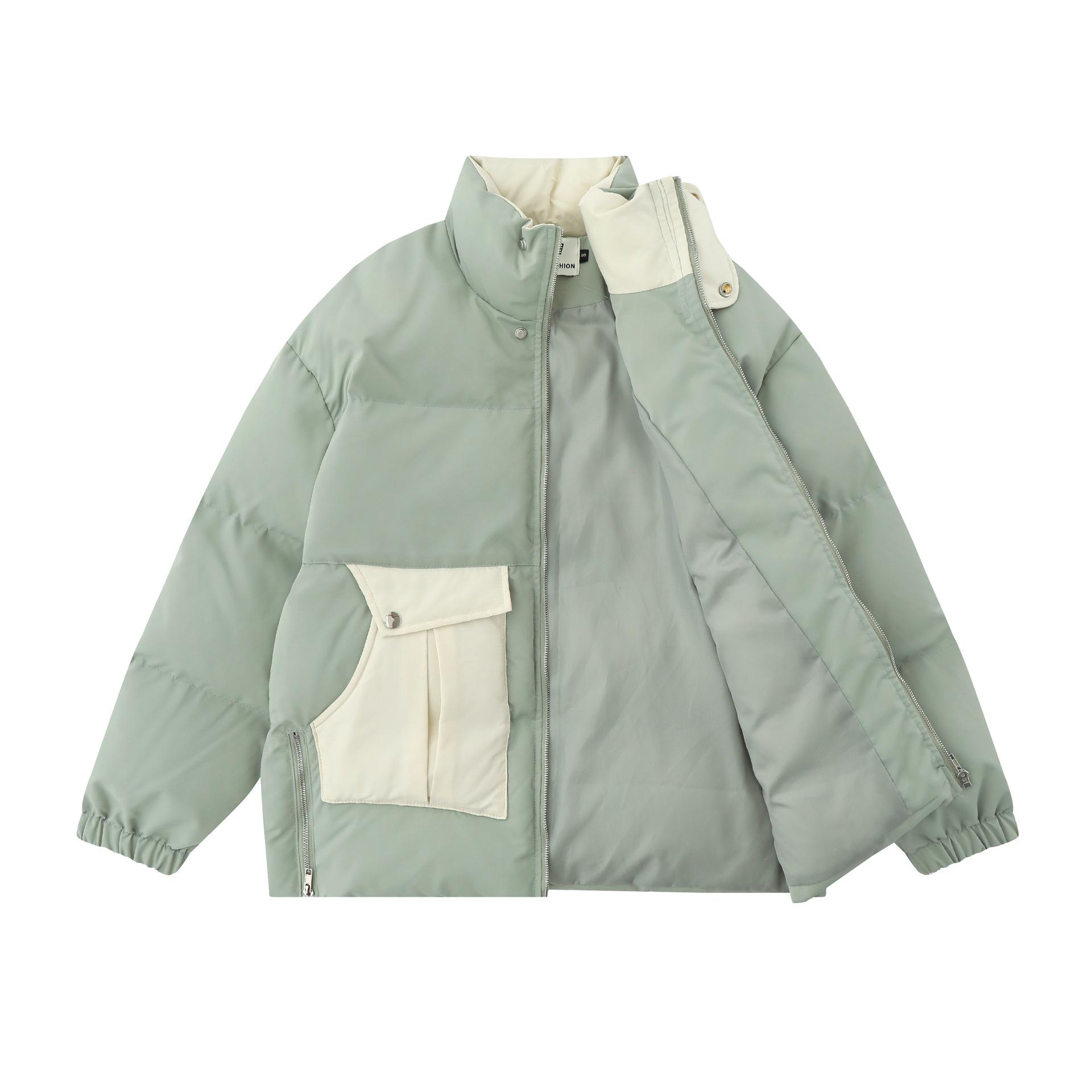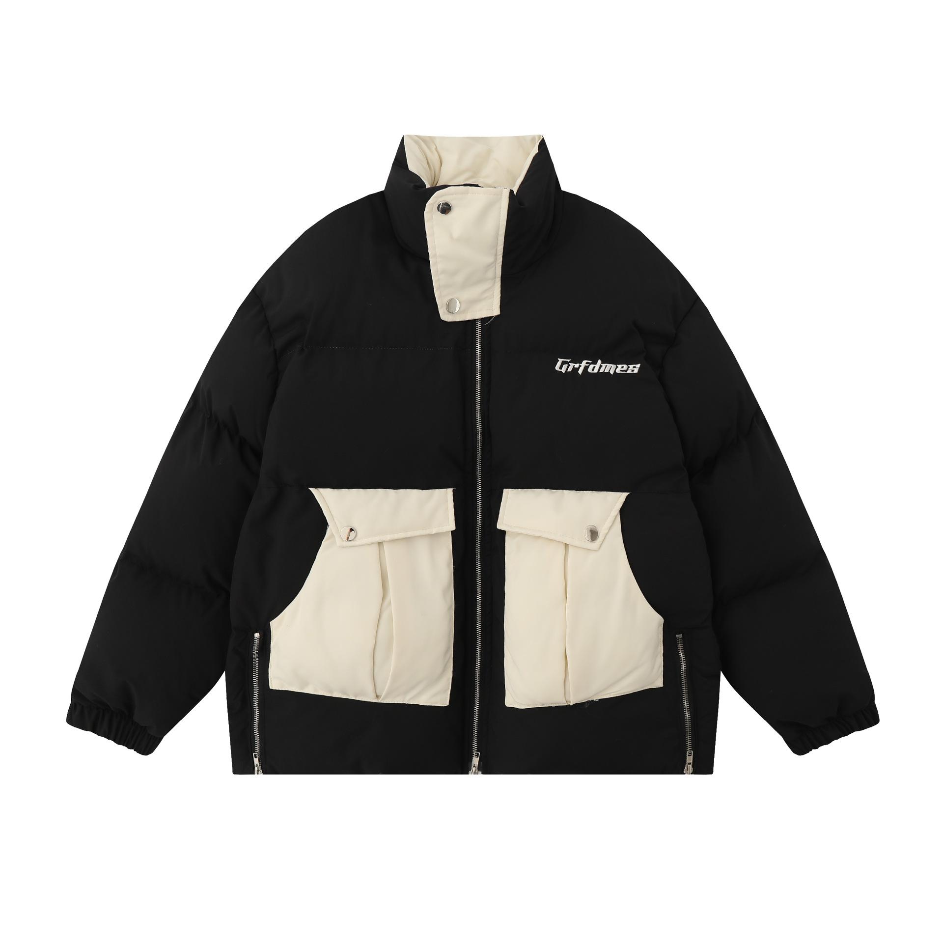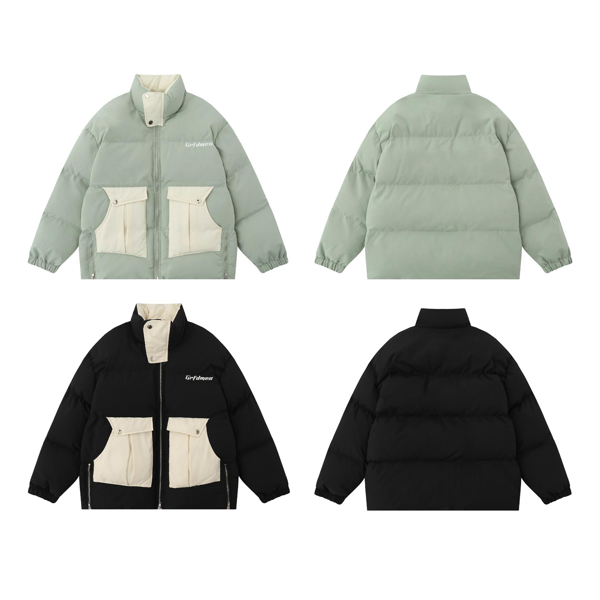 Abrigo acolchado de algodón grueso con bordado a juego de colores retro americano, abrigo acolchado de algodón cálido de invierno para hombres y mujeres, abrigo holgado para parejas, abrigo de pan
