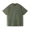 Camiseta de algodón puro desgastado batik de 230 g con logo impreso, cuello redondo, lavada, gruesa, manga corta, desgastada, con copo de nieve frito.
