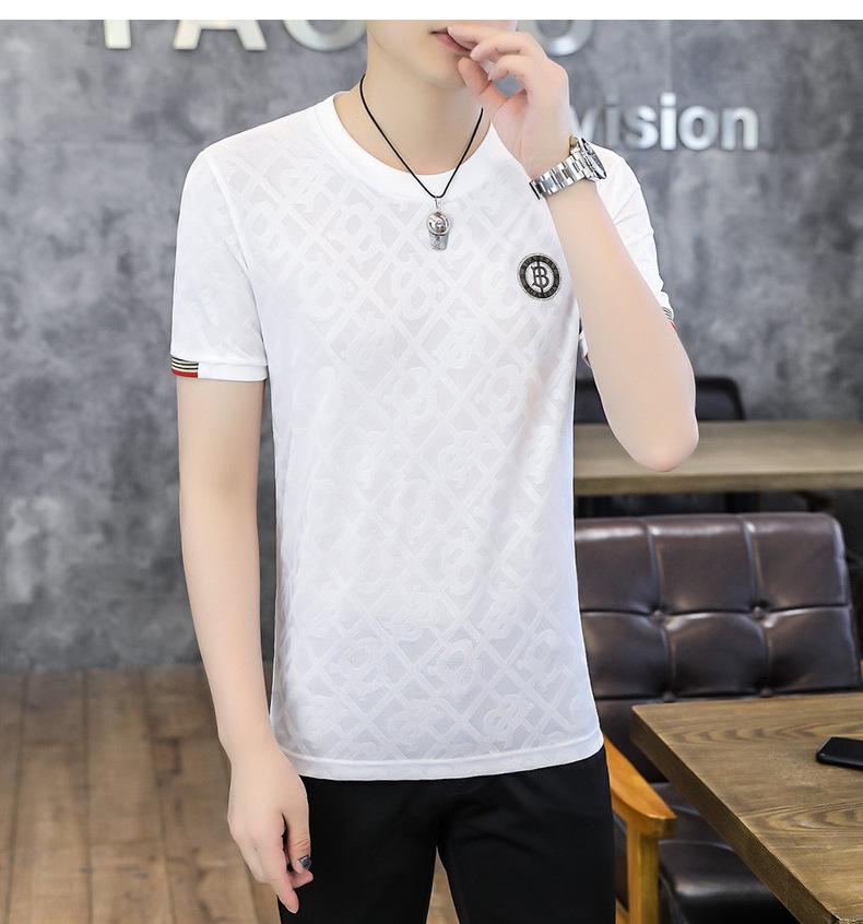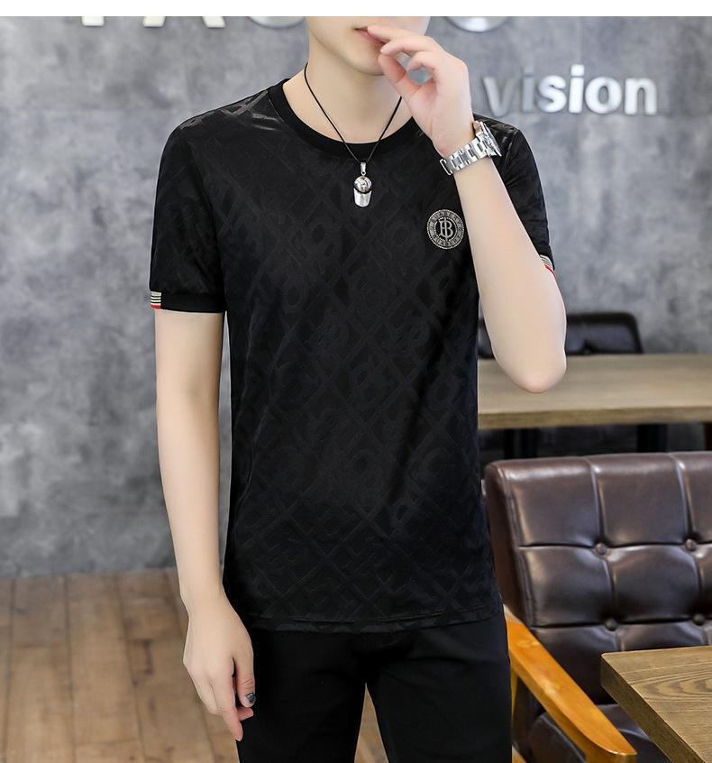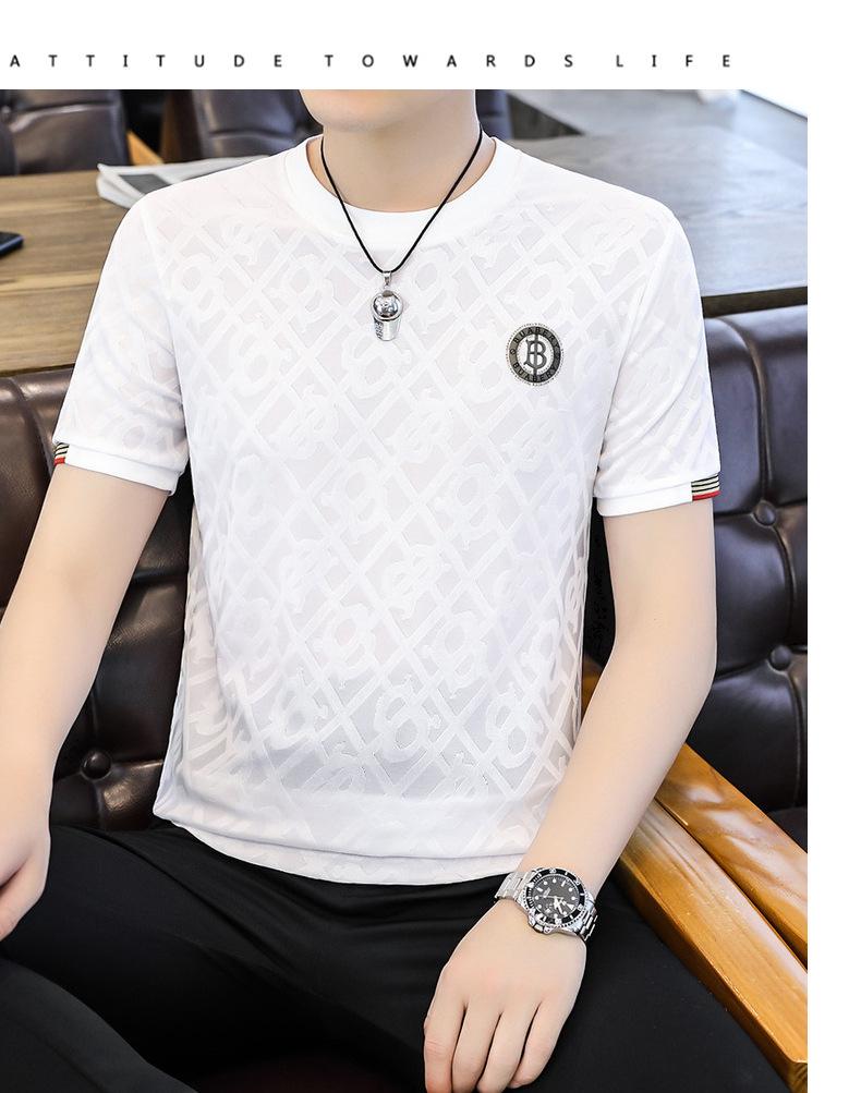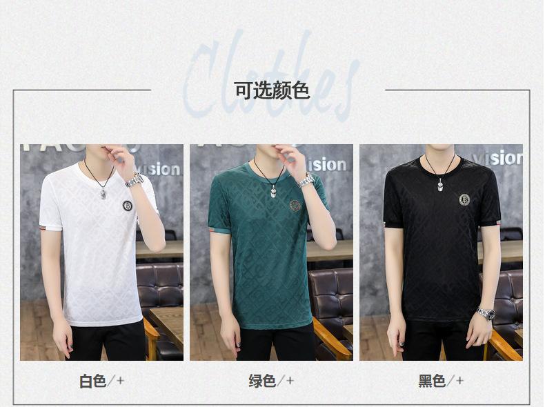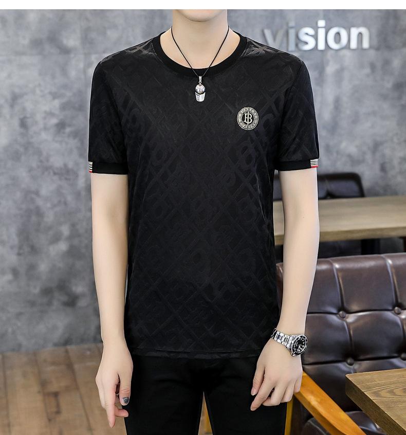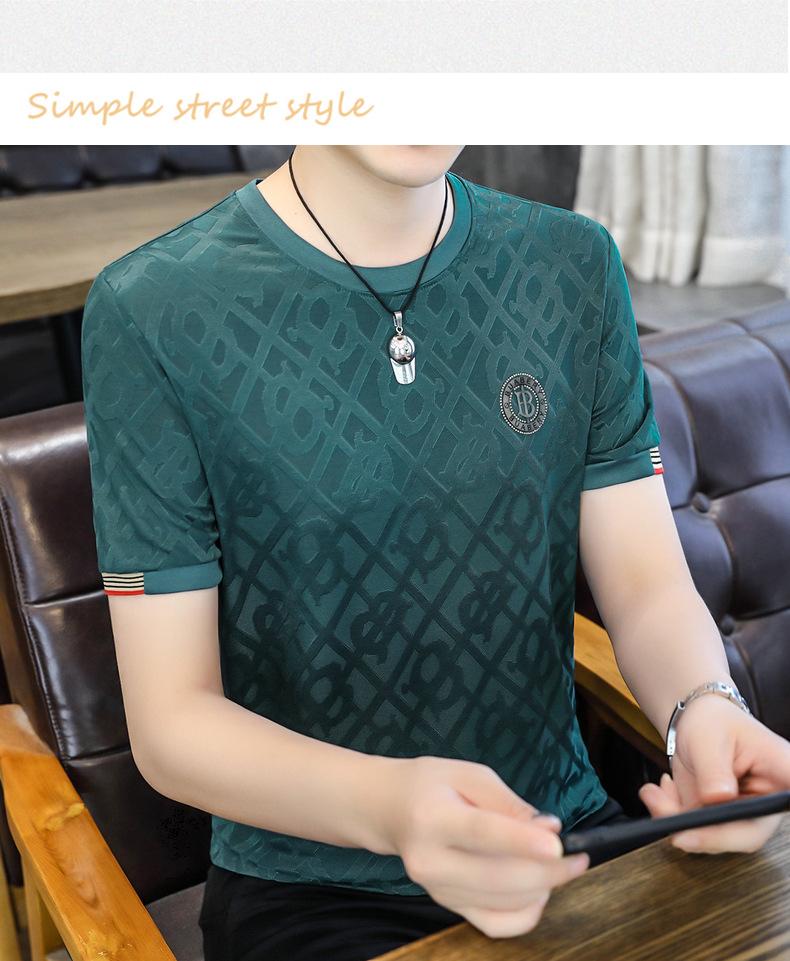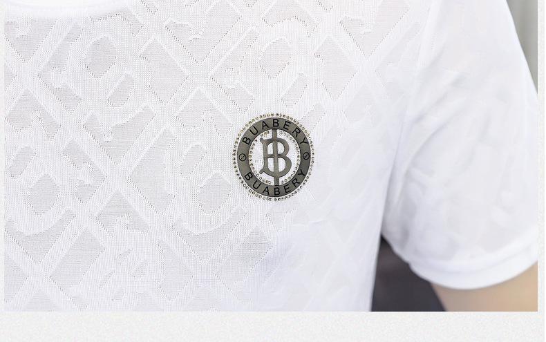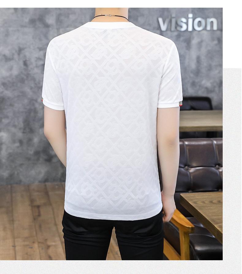 Polo ligero de lujo de verano de seda fina y fresca para hombre, camiseta de manga corta ajustada, de alta elasticidad, informal, de cuello redondo, de moda