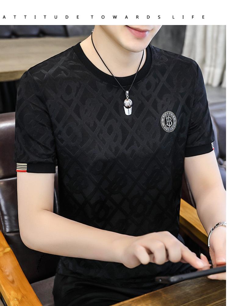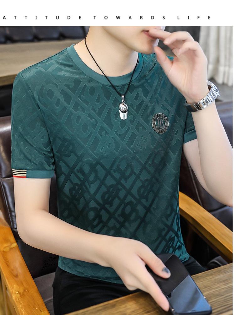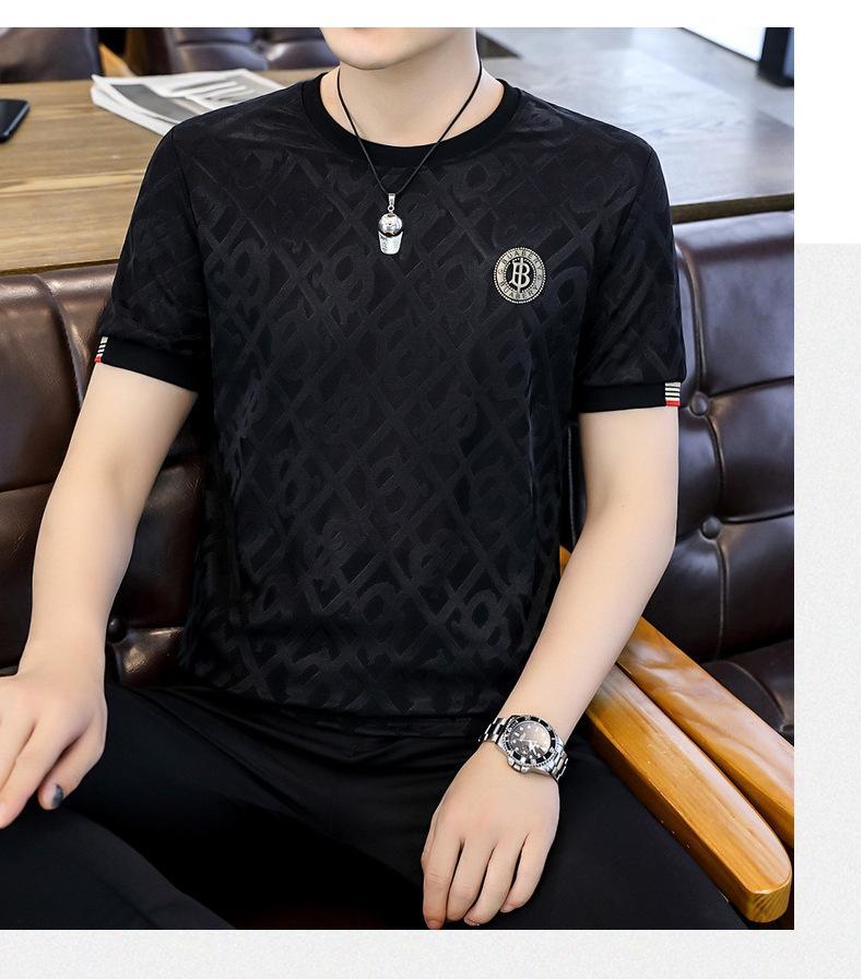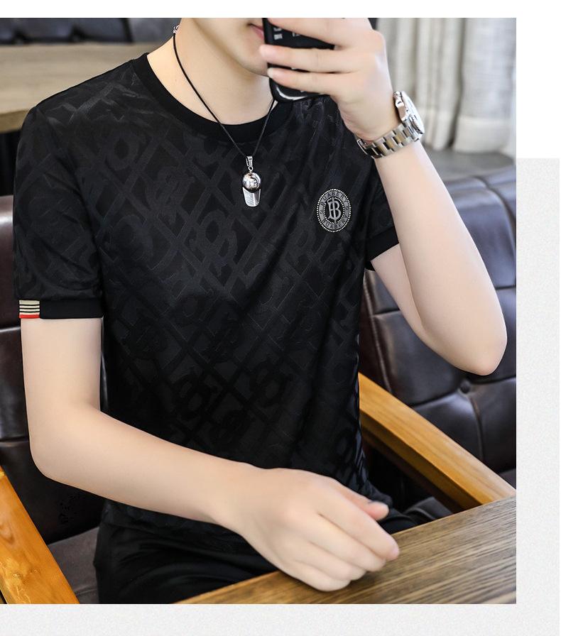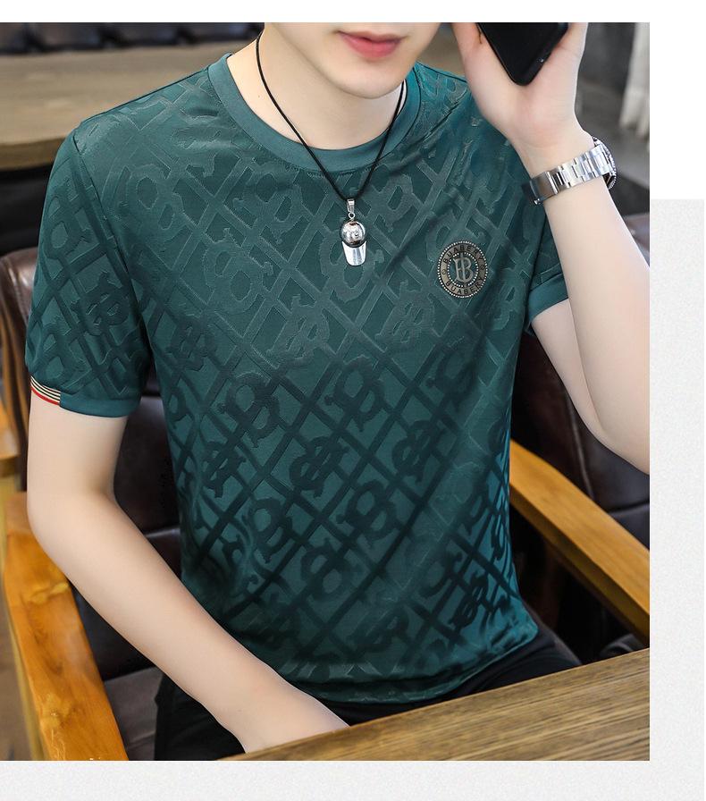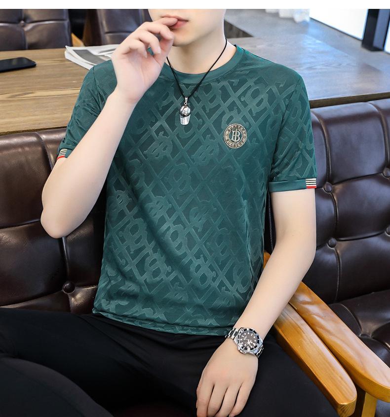 Polo ligero de lujo de verano de seda fina y fresca para hombre, camiseta de manga corta ajustada, de alta elasticidad, informal, de cuello redondo, de moda