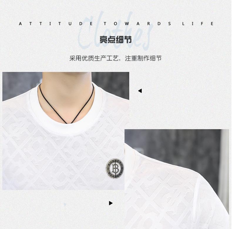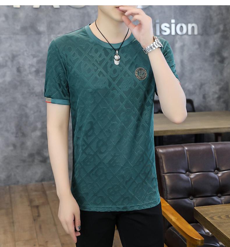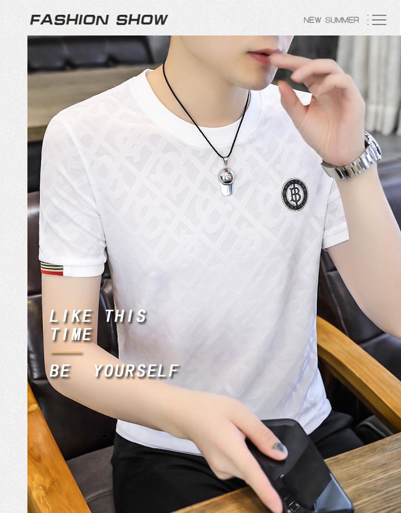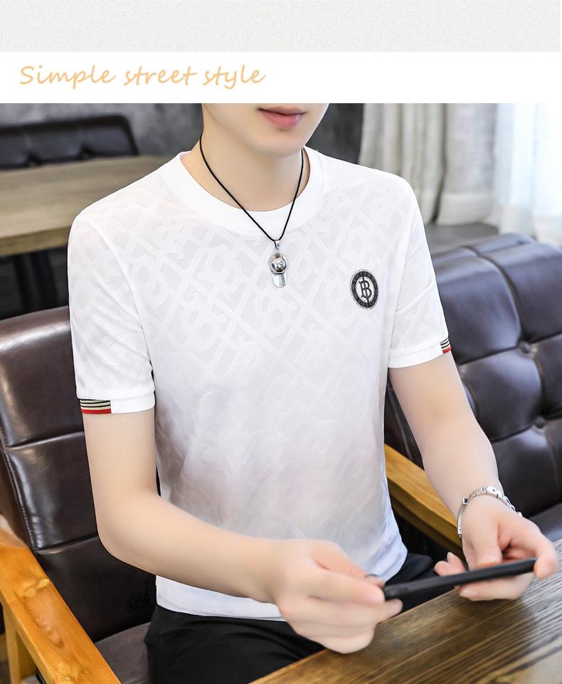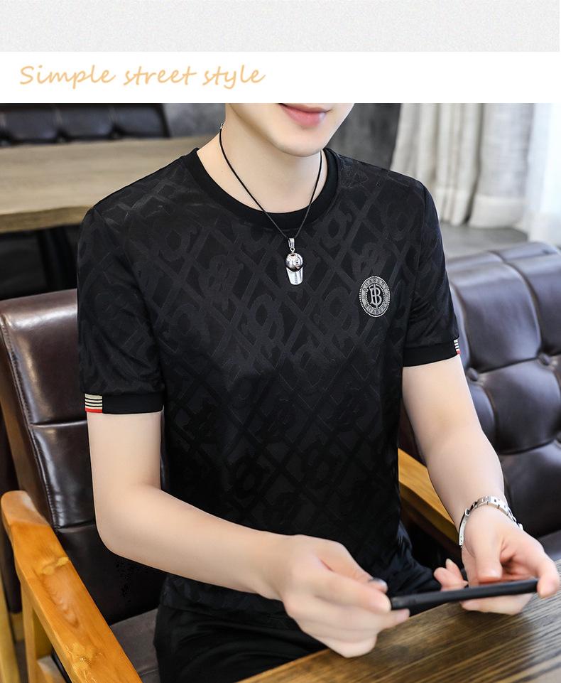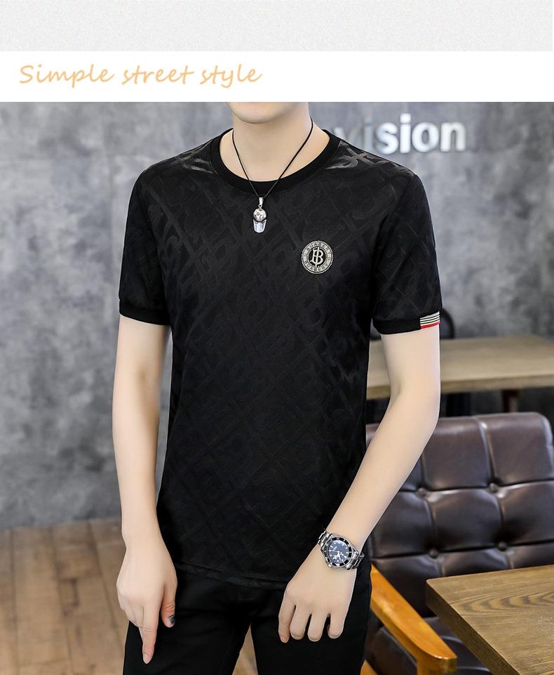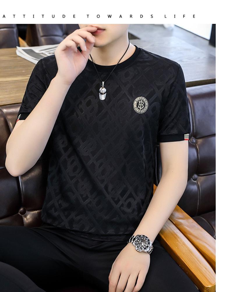 Polo ligero de lujo de verano de seda fina y fresca para hombre, camiseta de manga corta ajustada, de alta elasticidad, informal, de cuello redondo, de moda