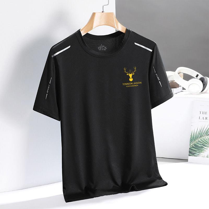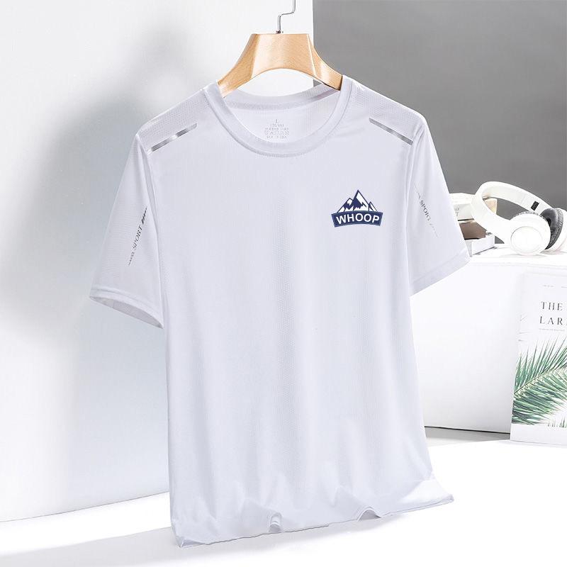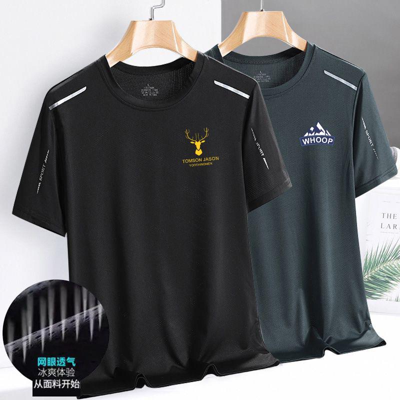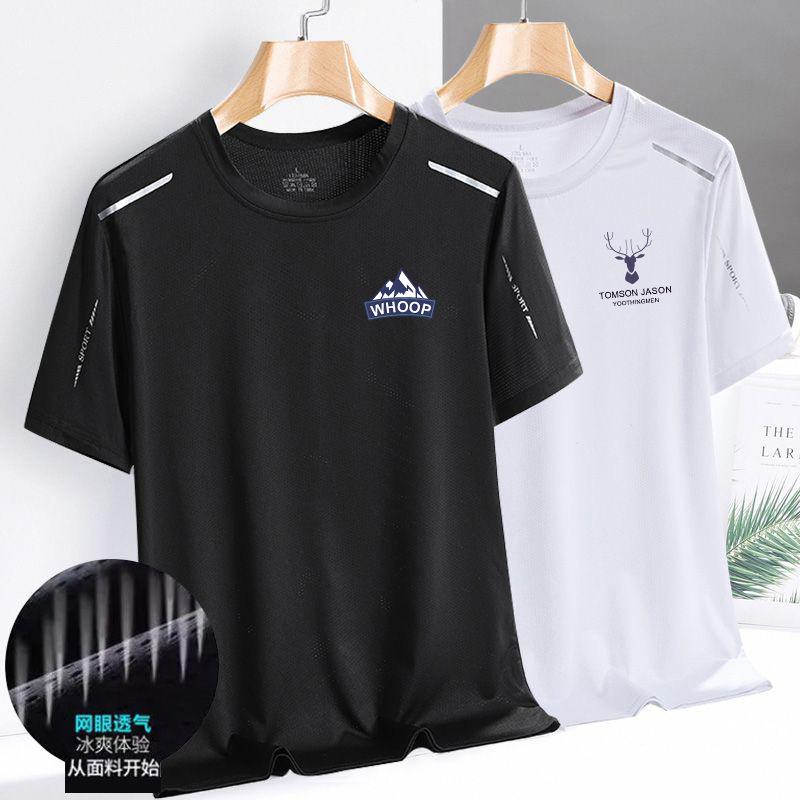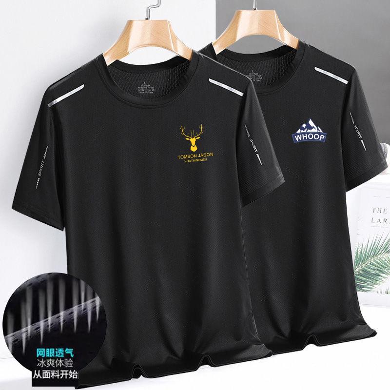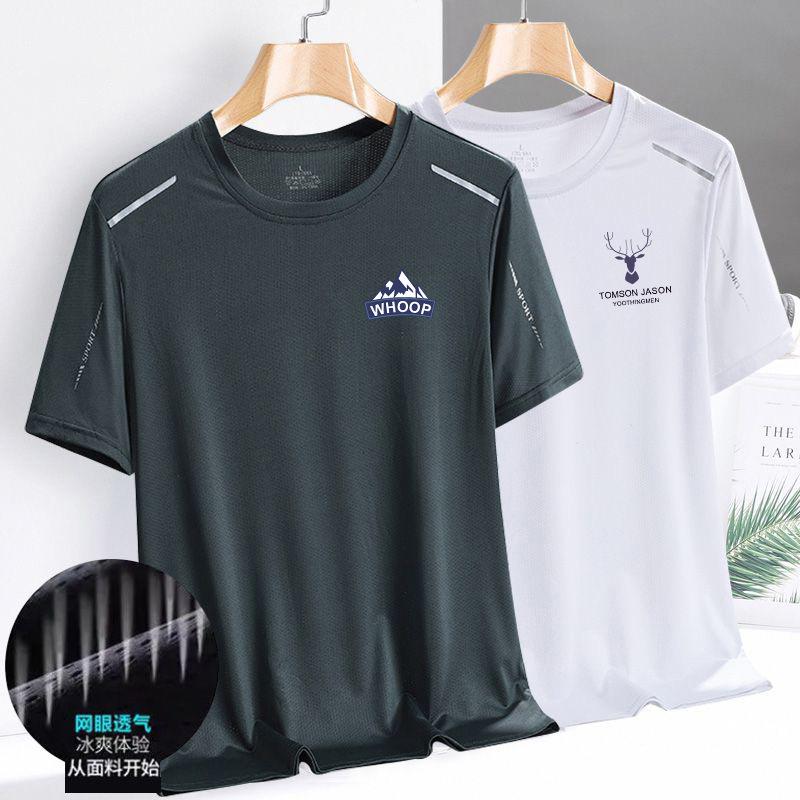 Nueva camiseta de verano de malla de seda helada para hombre, cuello redondo, ropa de secado rápido, informal, de manga corta, con estampado de moda, transpirable, talla grande, deportiva