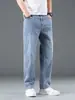 Pantalones vaqueros rectos y holgados con microelásticos para hombre, cómodos, holgados, nuevos, casuales, modernos, versátiles, sencillos y de moda.