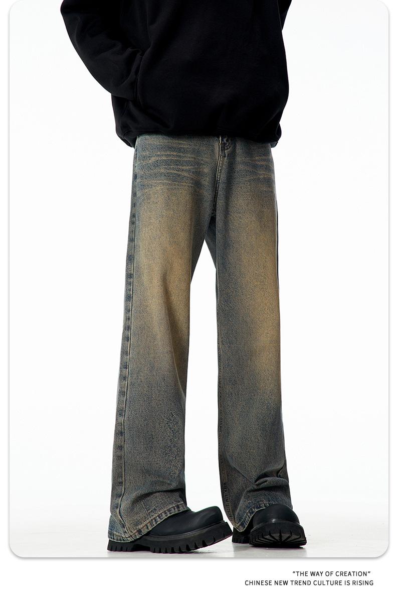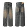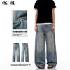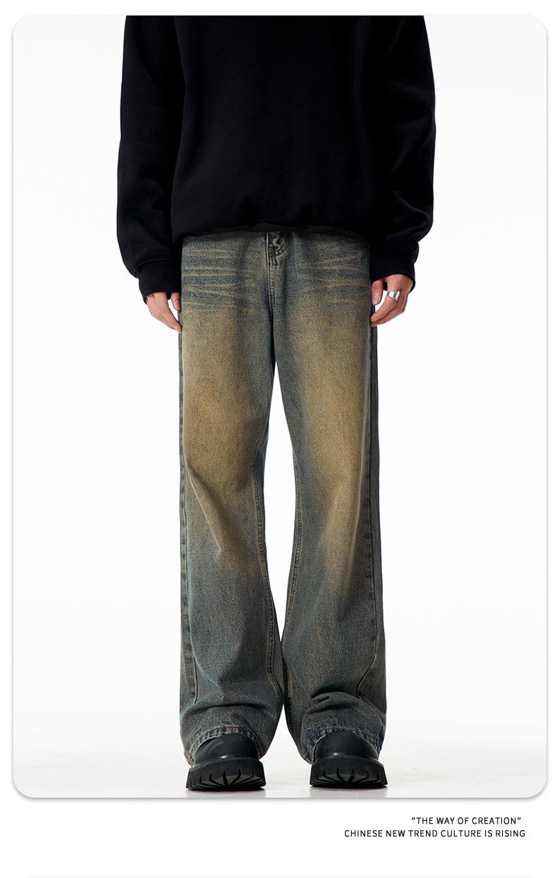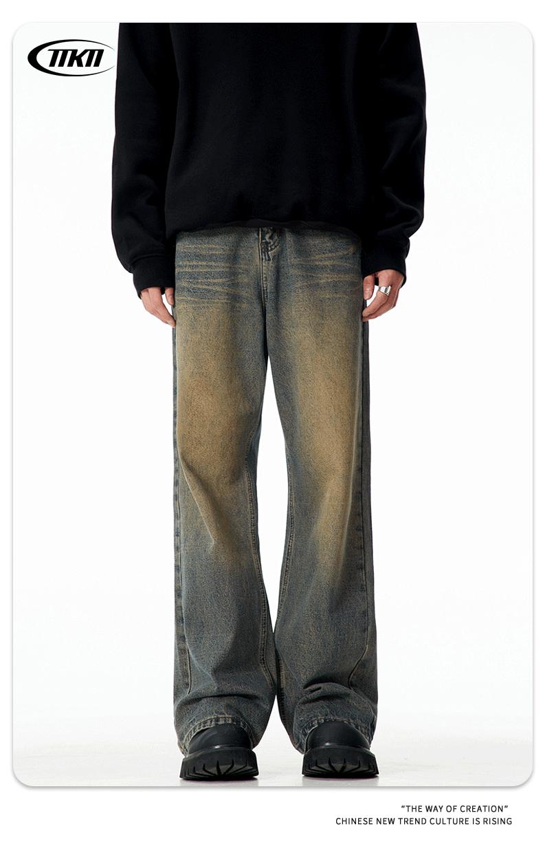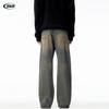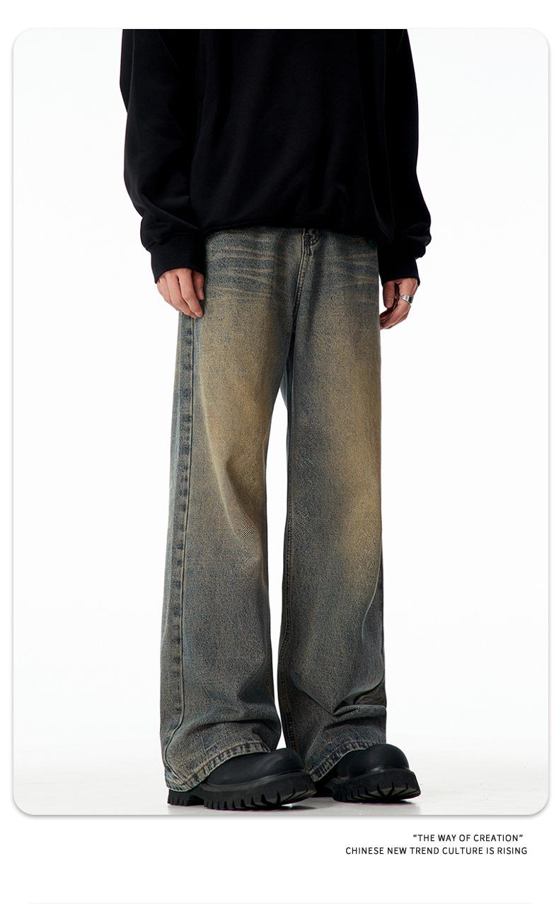 11KN 미국식 고가 vibe 낡은 마모 블랙 청바지 남성 와이드 스트레이트 빈티지 워싱 바지 ins